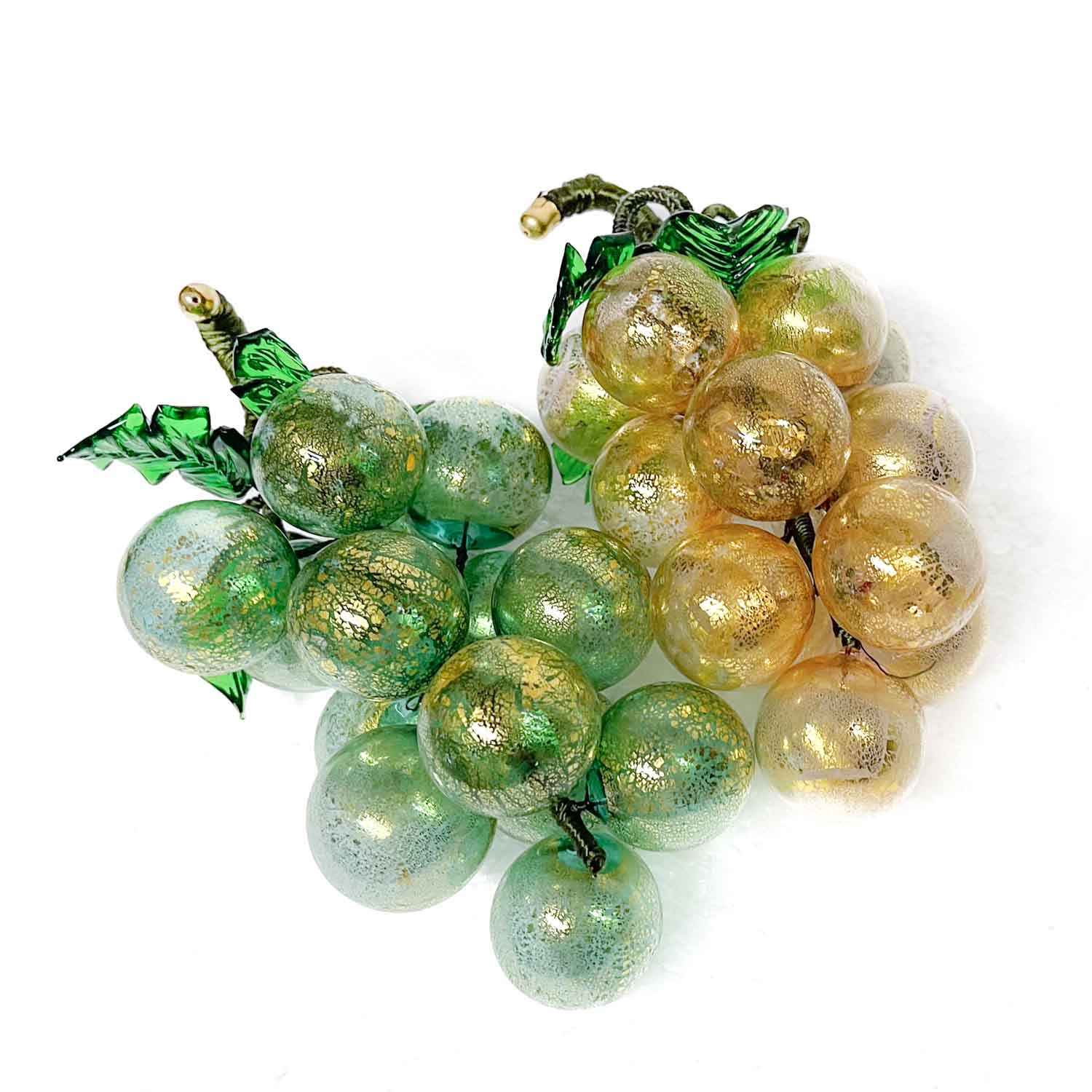Bunches of grape, in a XL SIZE! available in three different vibrant colours: red, green,yellow. The skilled hands of the glass master have created perfect shapes: that's why these grapes look real although made in precious Murano glass. The transparencies and the bright colours, recall the freshness and the aroma ot this fruit, typical of the Veneto Region. Perfect for decorating the kitchen or the living room, the grapes are available even in a set of 5. Each bunch is different because it is made by hand.