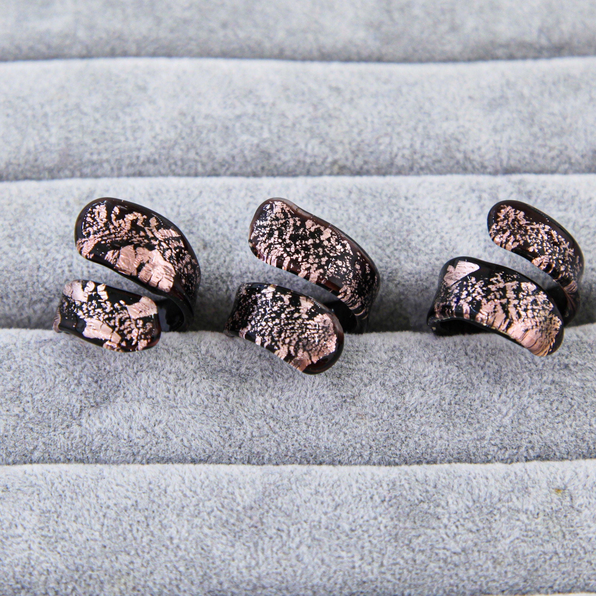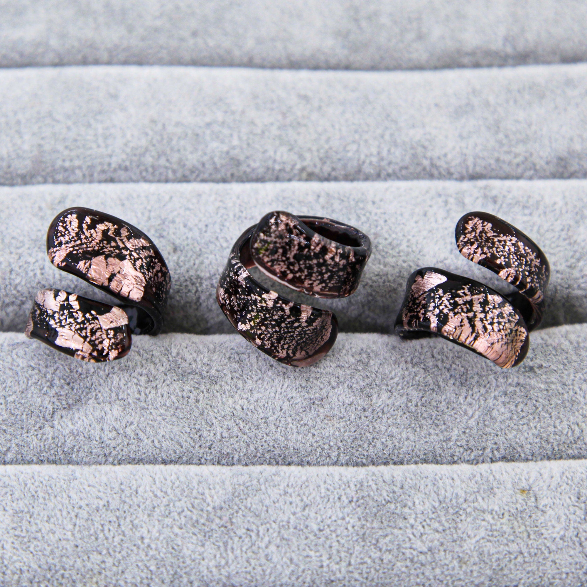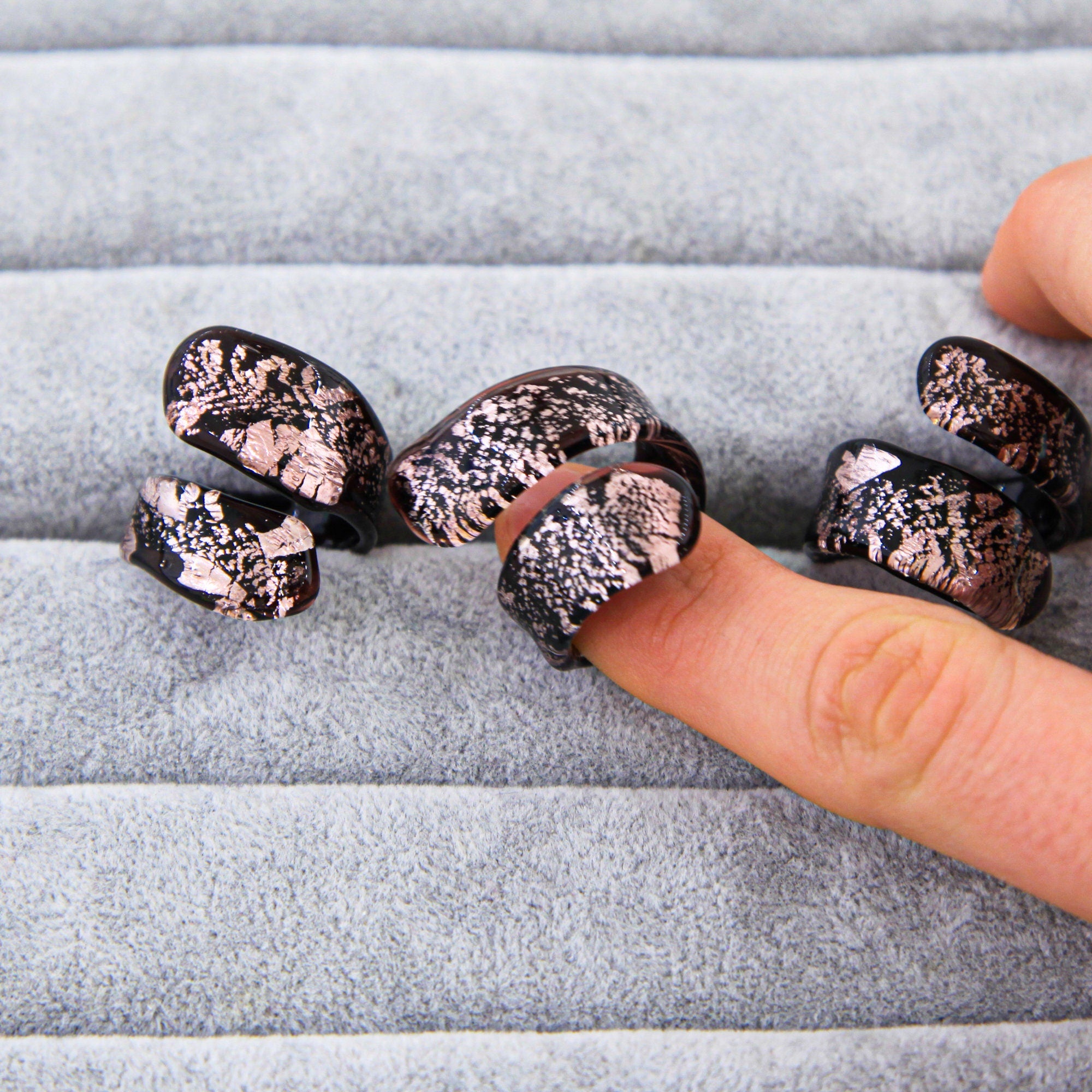 This ring is entirely produced by hand in the island of Murano, Venice.