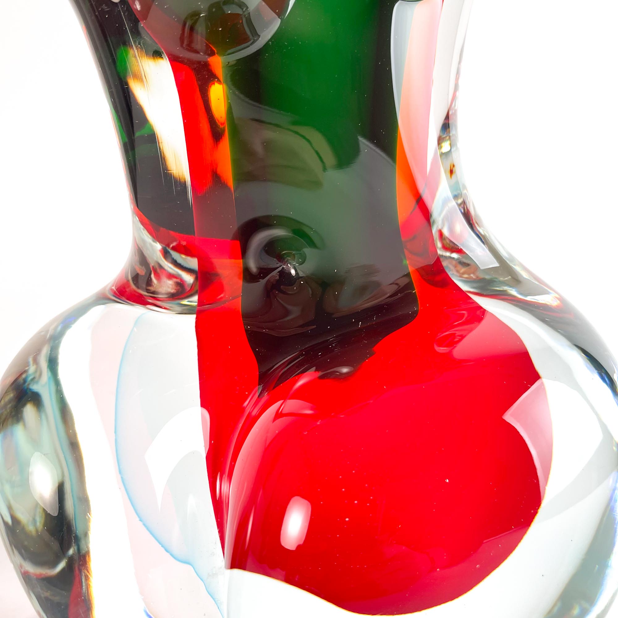 Romano Donà directs the production at Stefano Toso for several years in the first decade of 2000. During this period many new forms were experimented, always with reference to contemporary art. This work belongs to this period. It ha been made following traditional Murano techniques such as Massello Glass and Sbruffi.