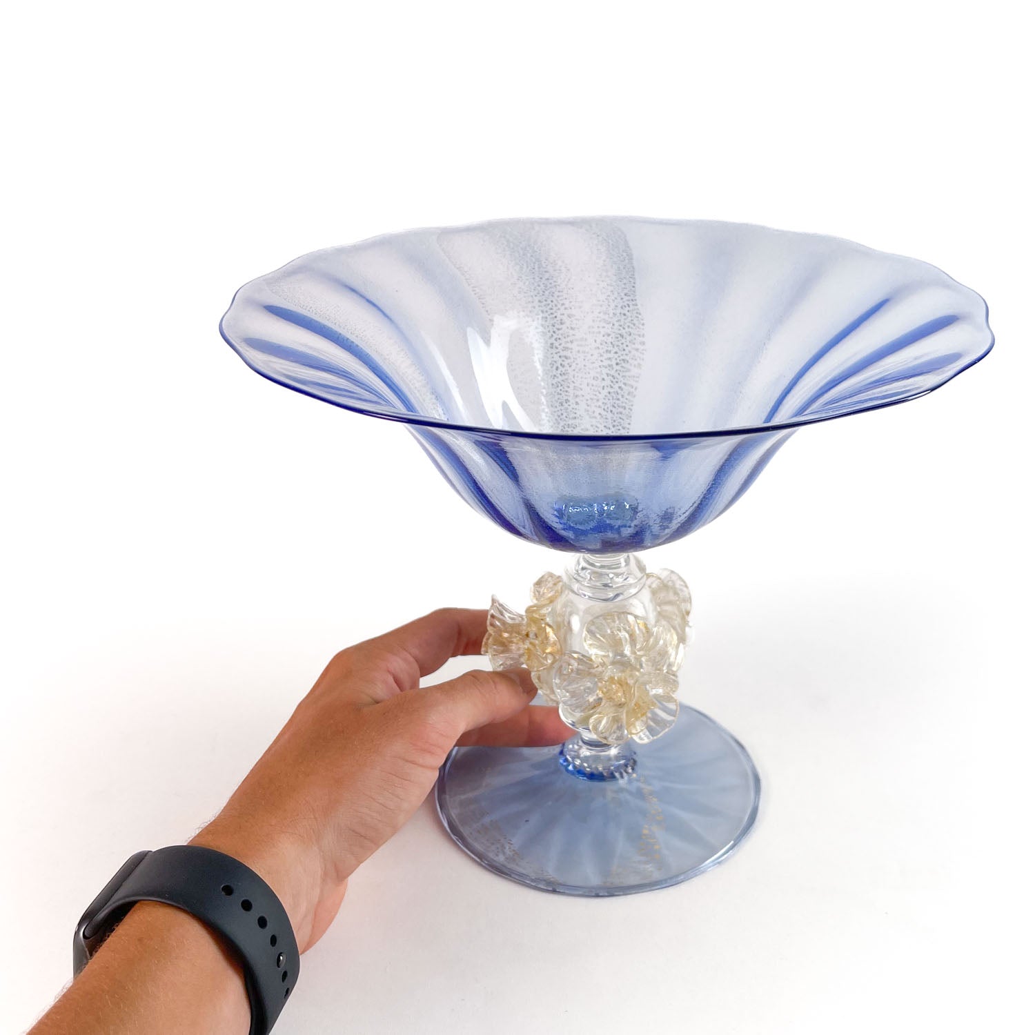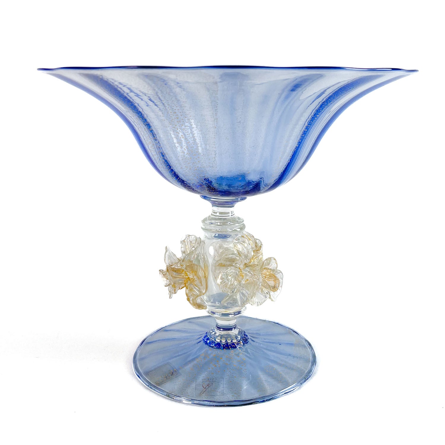 Vase Bleu avec Feuilles de Fougère - Verre de Murano