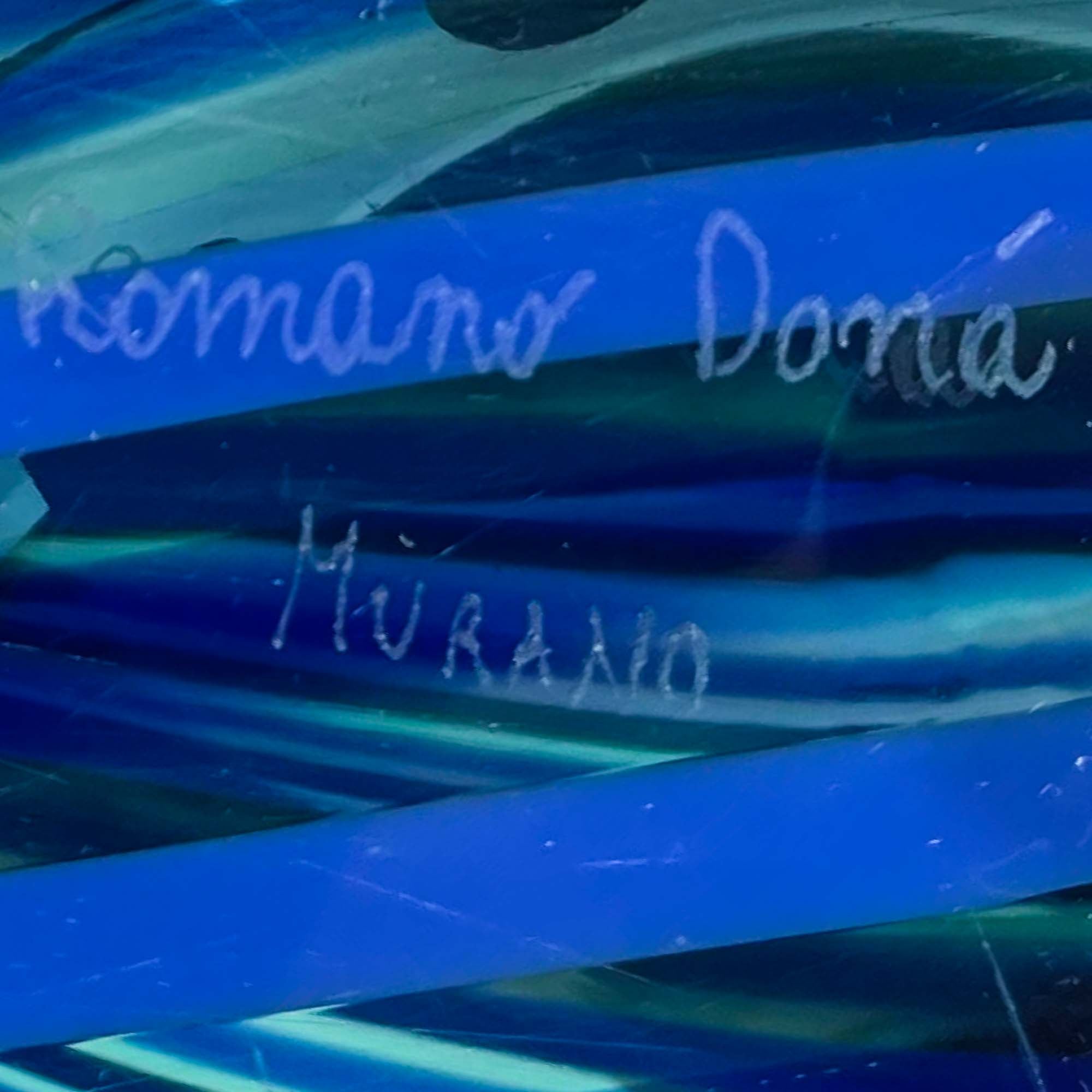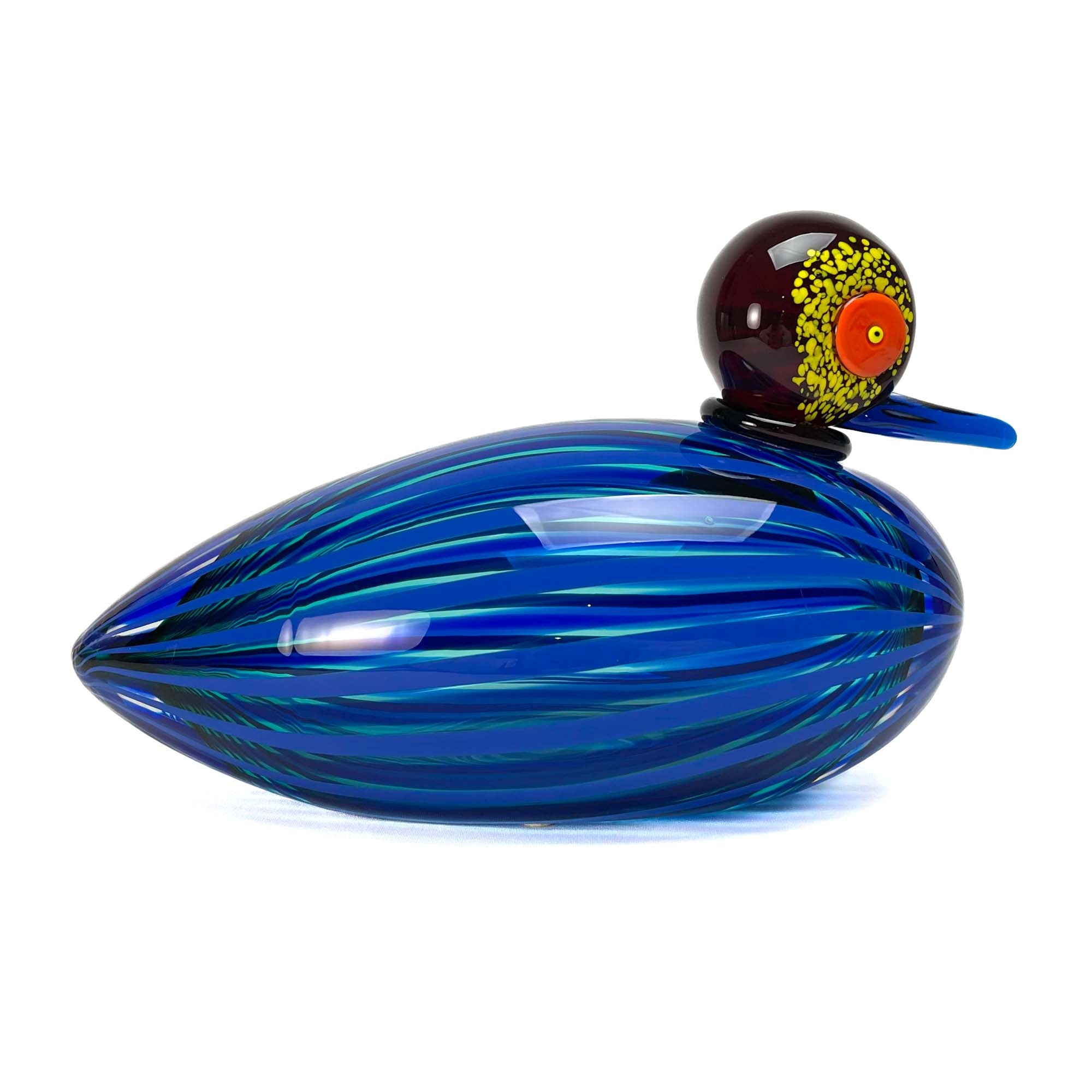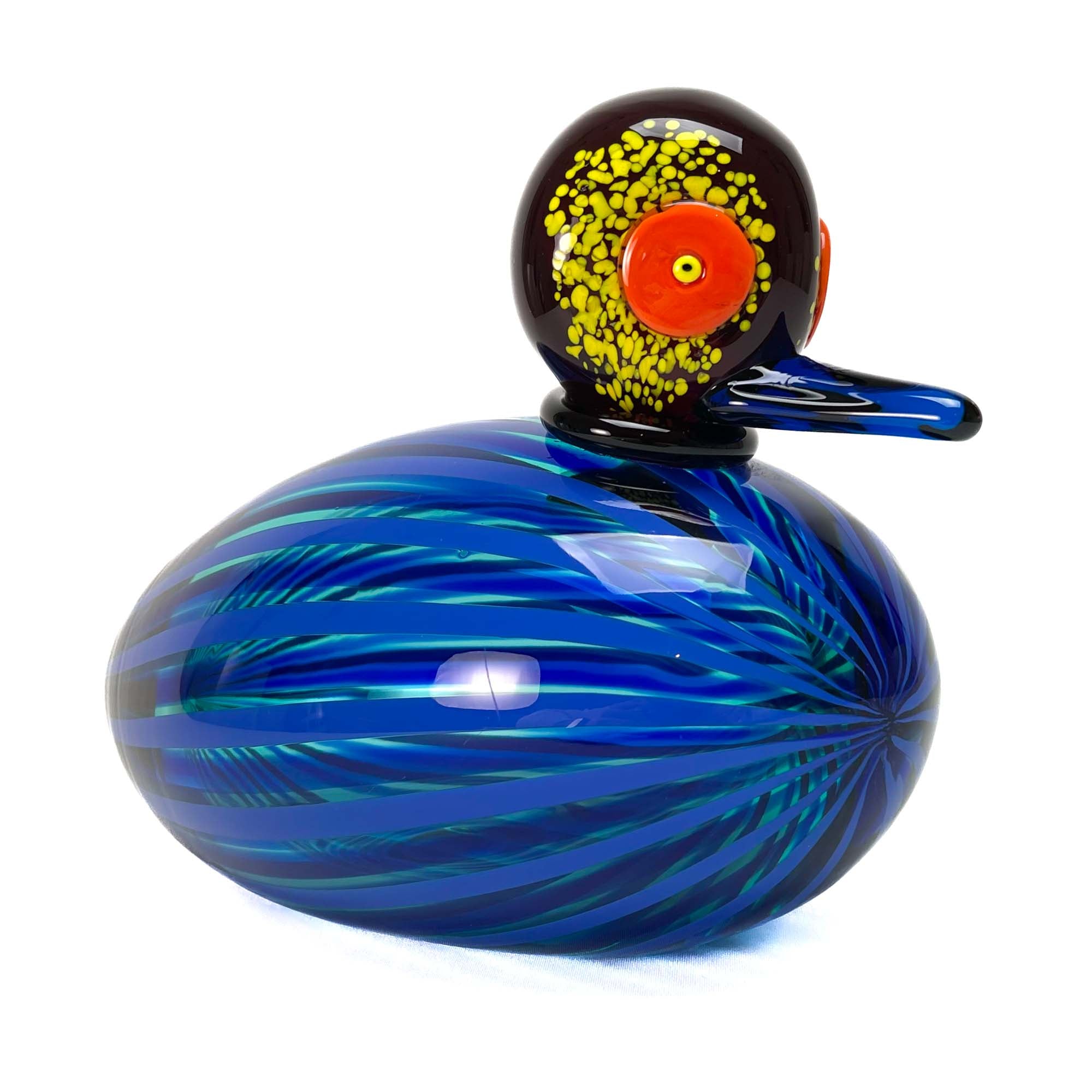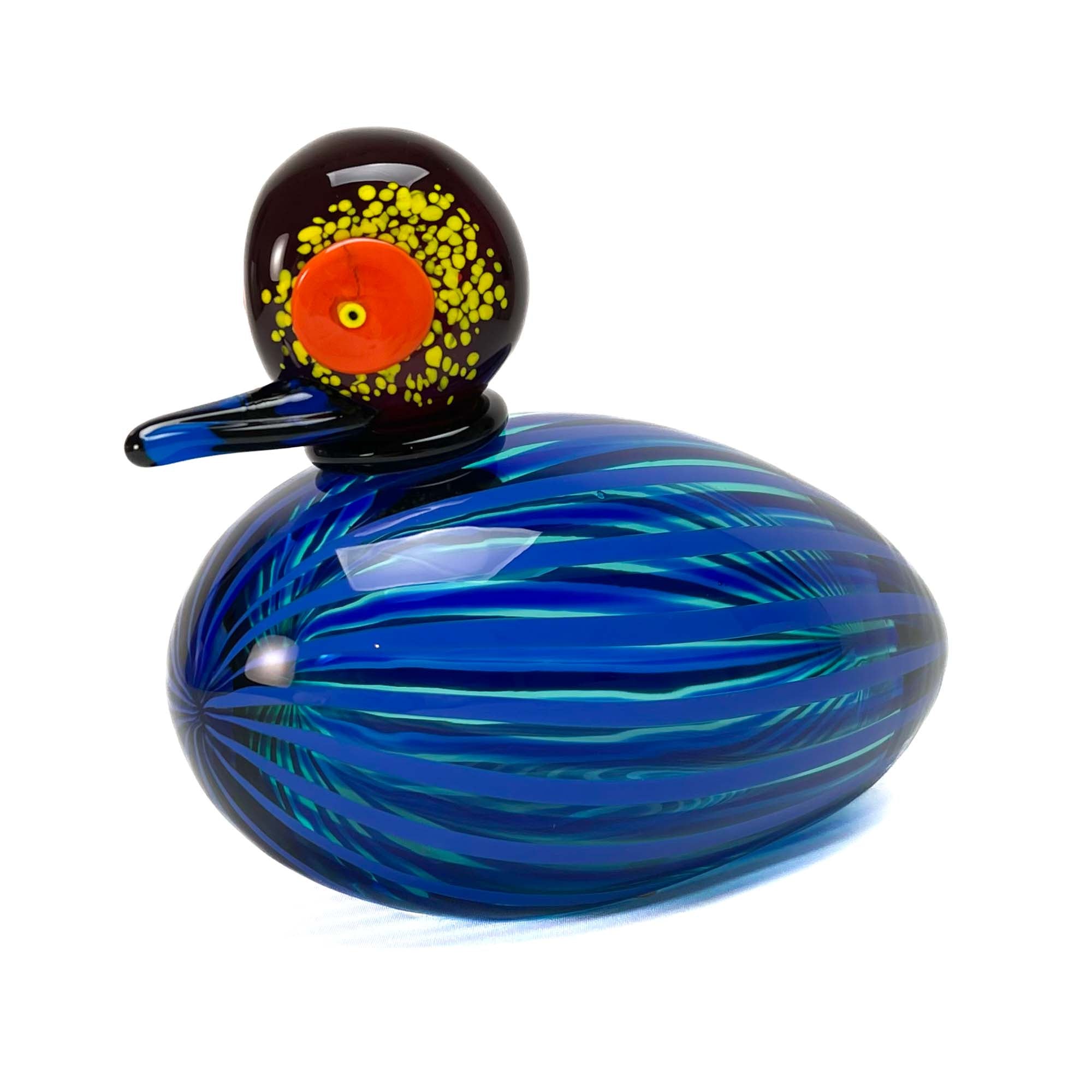 Bleu Canard Soufflé à Rayures - Verre de Murano