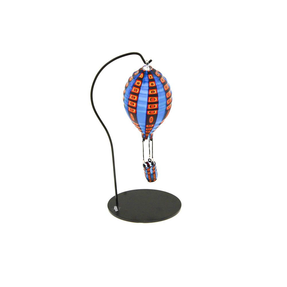 La montgolfière vous laisse emporter par son effet époustouflant. Les couleurs, les détails et la réflexion sont le résultat d'un mélange exquis de techniques. Les couleurs sont réalisées en vetrofusione et murrines. Mais ce qui attire vraiment l'attention, c'est la texture de la surface réalisée en « Battuto » , qui signifie « poussé ». Utilisé pour la première fois au début des années 1900, Battuto signifie frapper ou battre la surface du verre pour donner une apparence de métal martelé. La Montgolfière est suspendue dans une structure métallique, vous n'avez donc pas à vous soucier de l'endroit où l'accrocher !