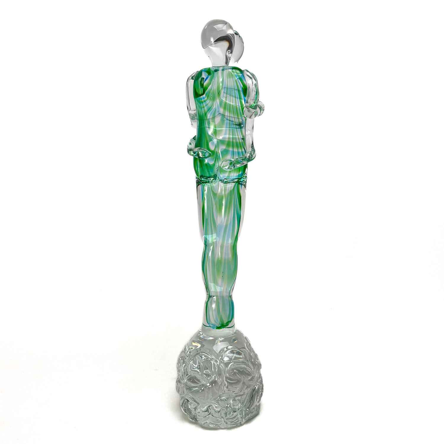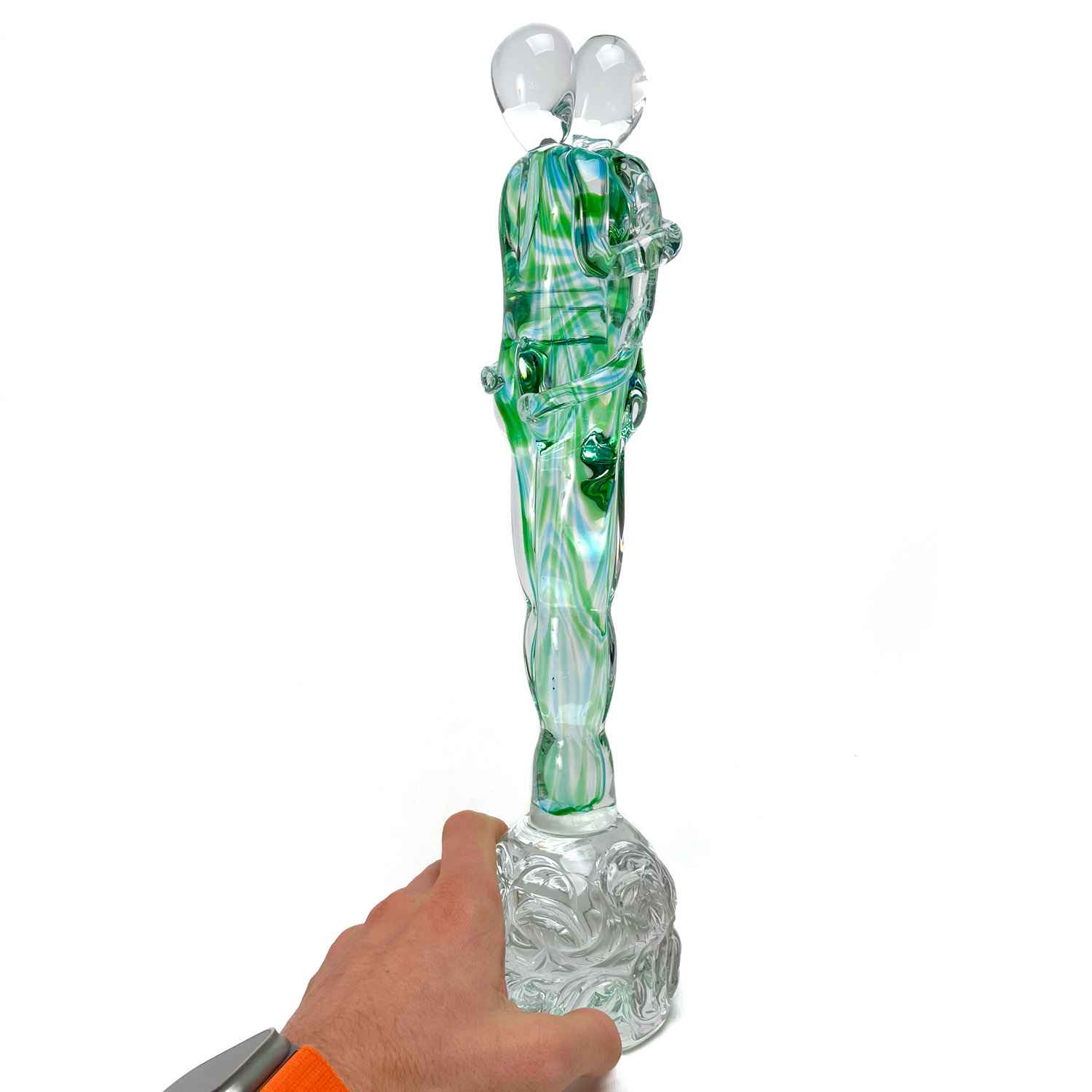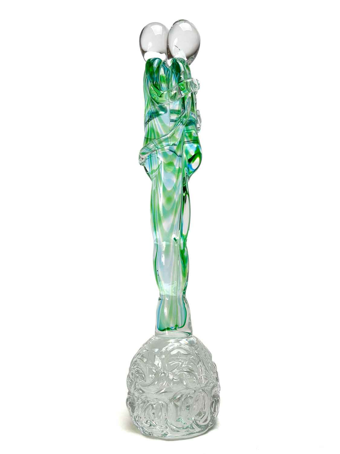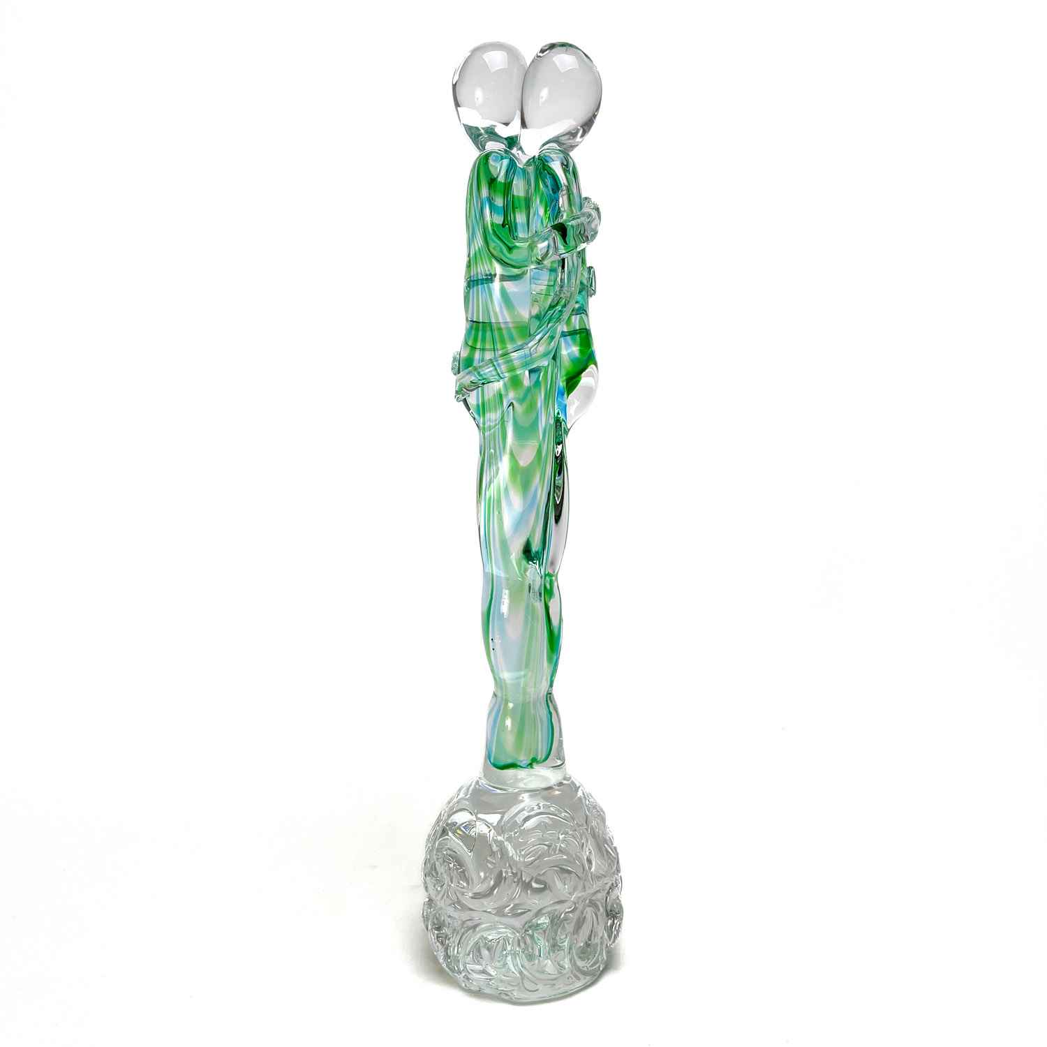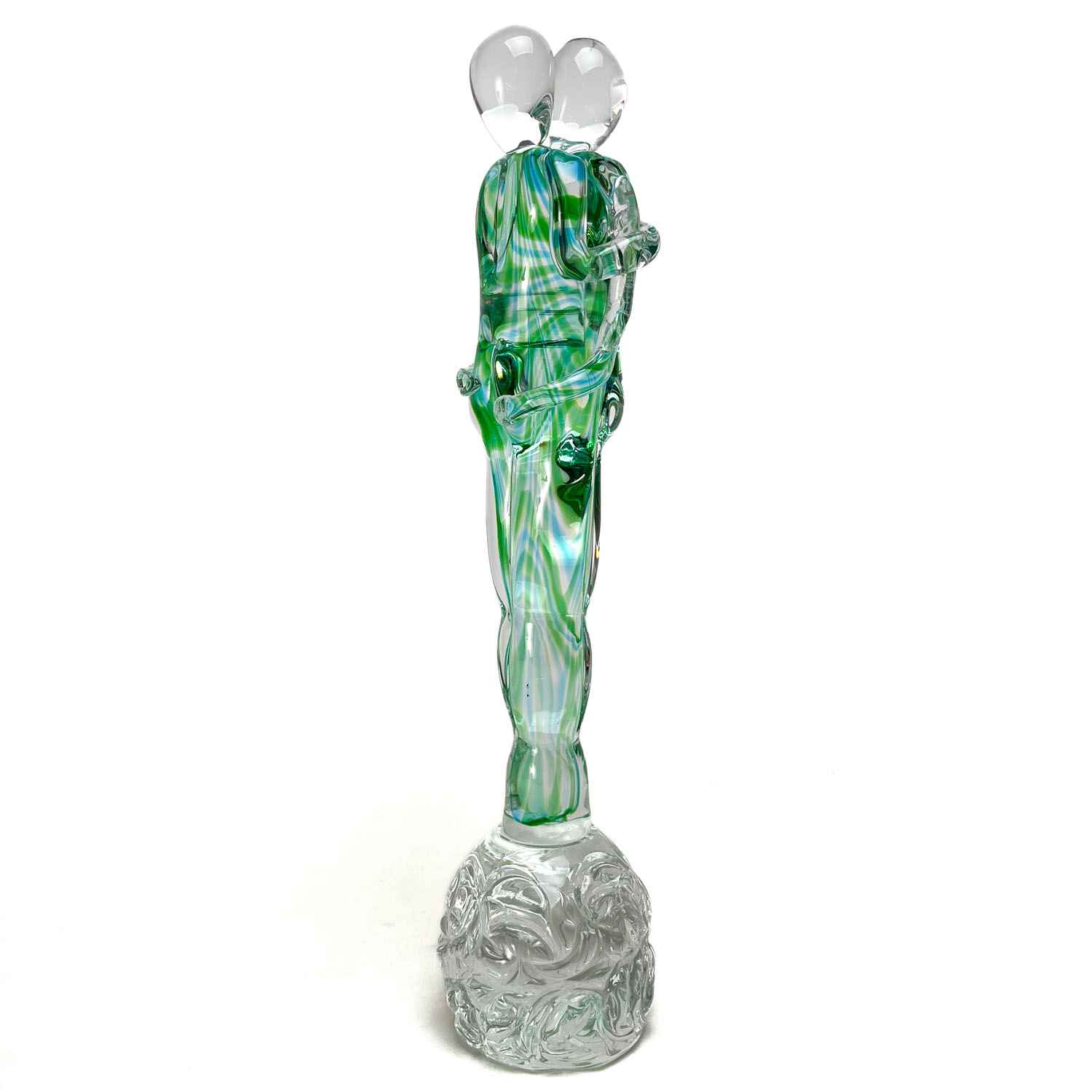 Superbe sculpture en verre de Murano qui capture l'essence intemporelle de la romance. Cette belle pièce représente un moment intime figé dans le temps, une représentation artistique de deux personnes échangeant un tendre baiser.