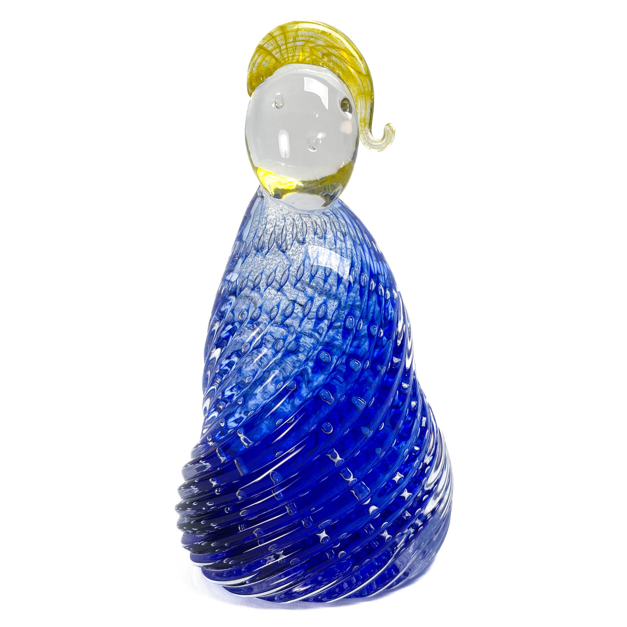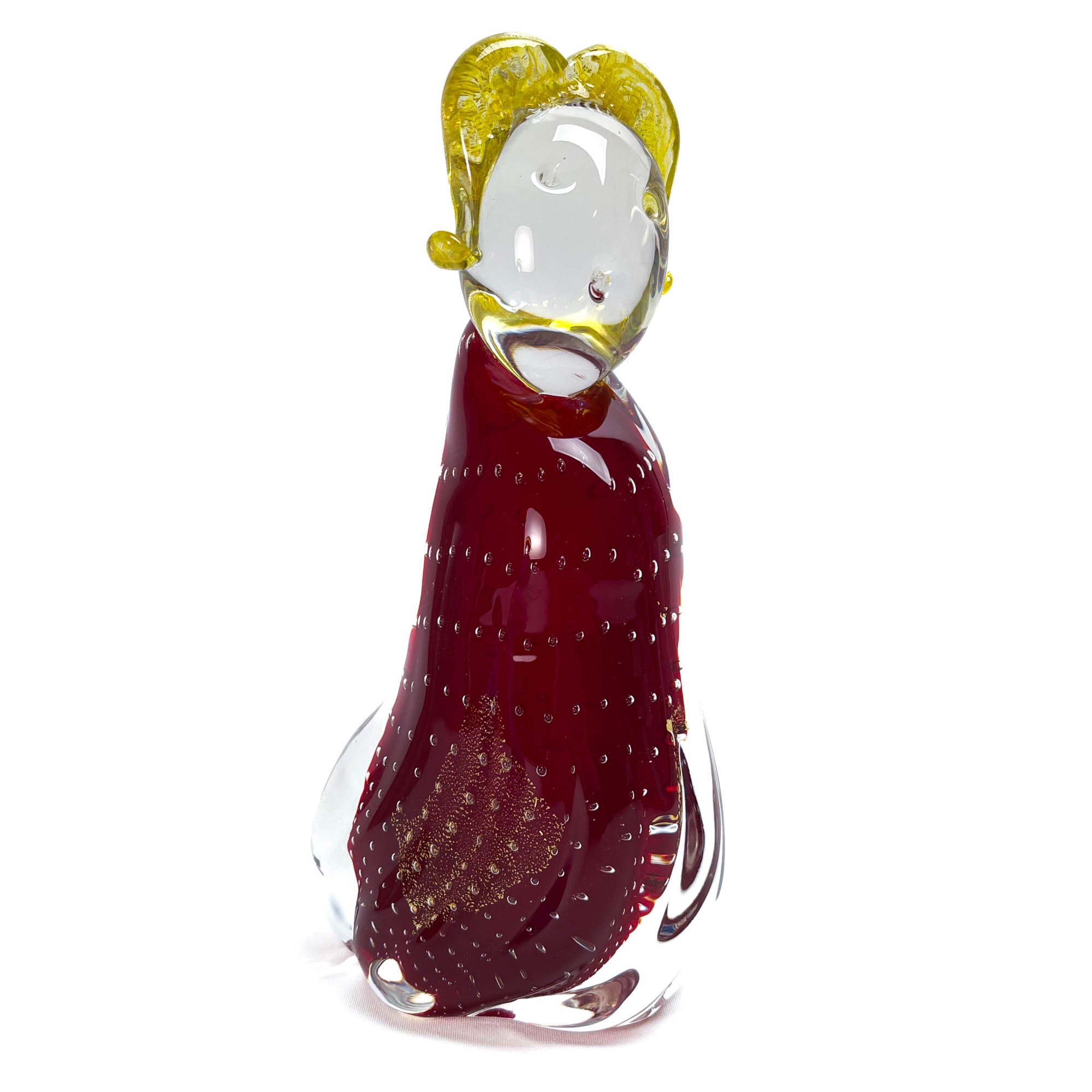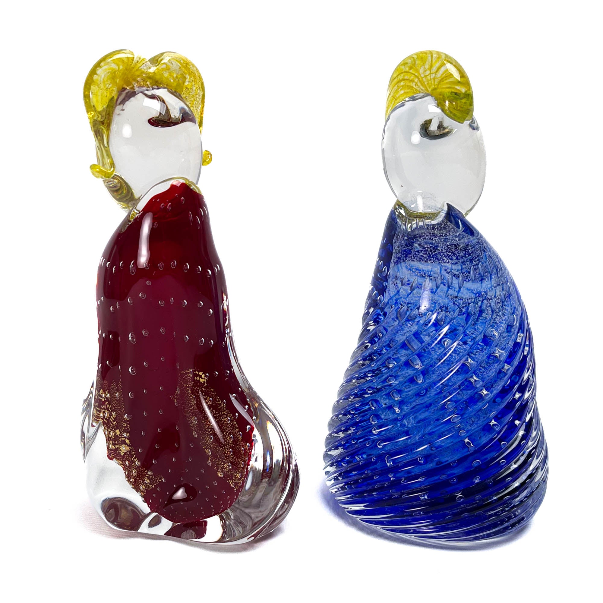 Statuine in vetro di Murano, realizzate in cristallo rosso e blu con inclusione di foglie dorate. Il prezzo include entrambe le figurine.