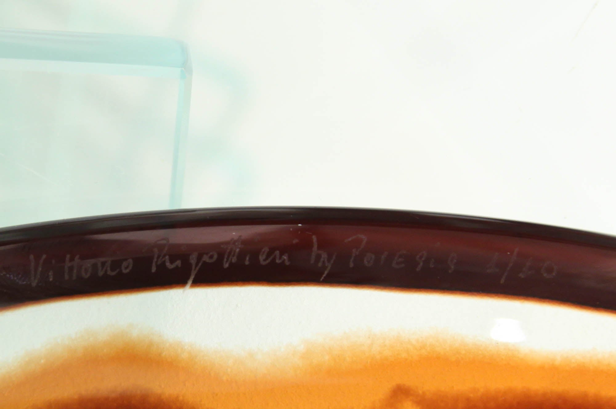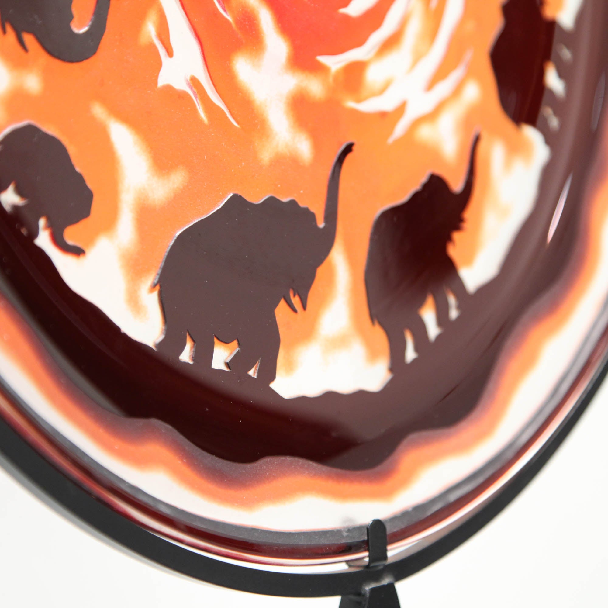 A celebration of Africa, its colours and its wonderful animals: Rigattieri has created a limited series of these plates (this one is N° 1 of 10). His skills clearly emerge from the not-so common technique used: the cammeo. For example, notice the high level of detail in the carved elephants. Handmade in Murano by the maestro Vittorio Rigattieri, using the ancient Muranese techniques.