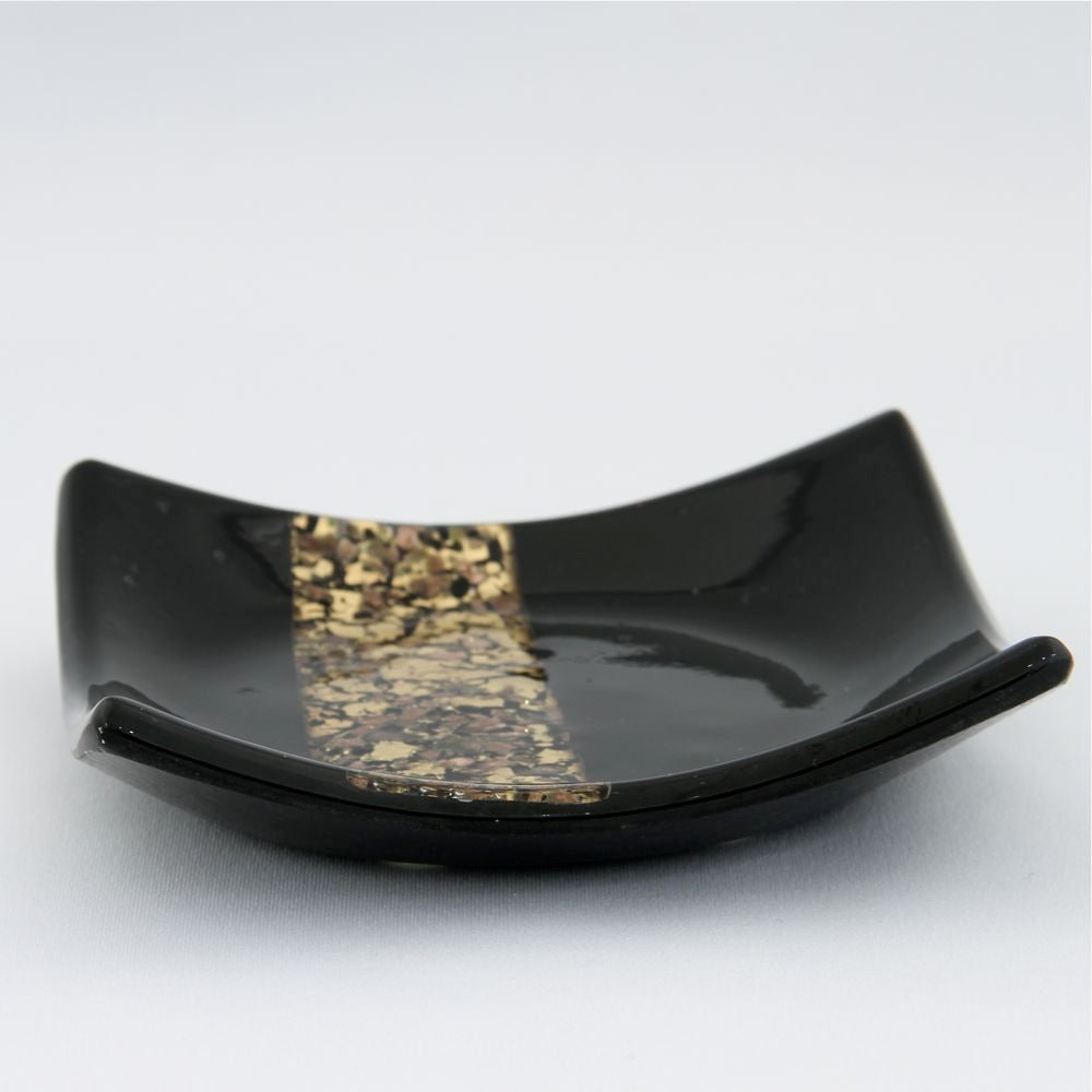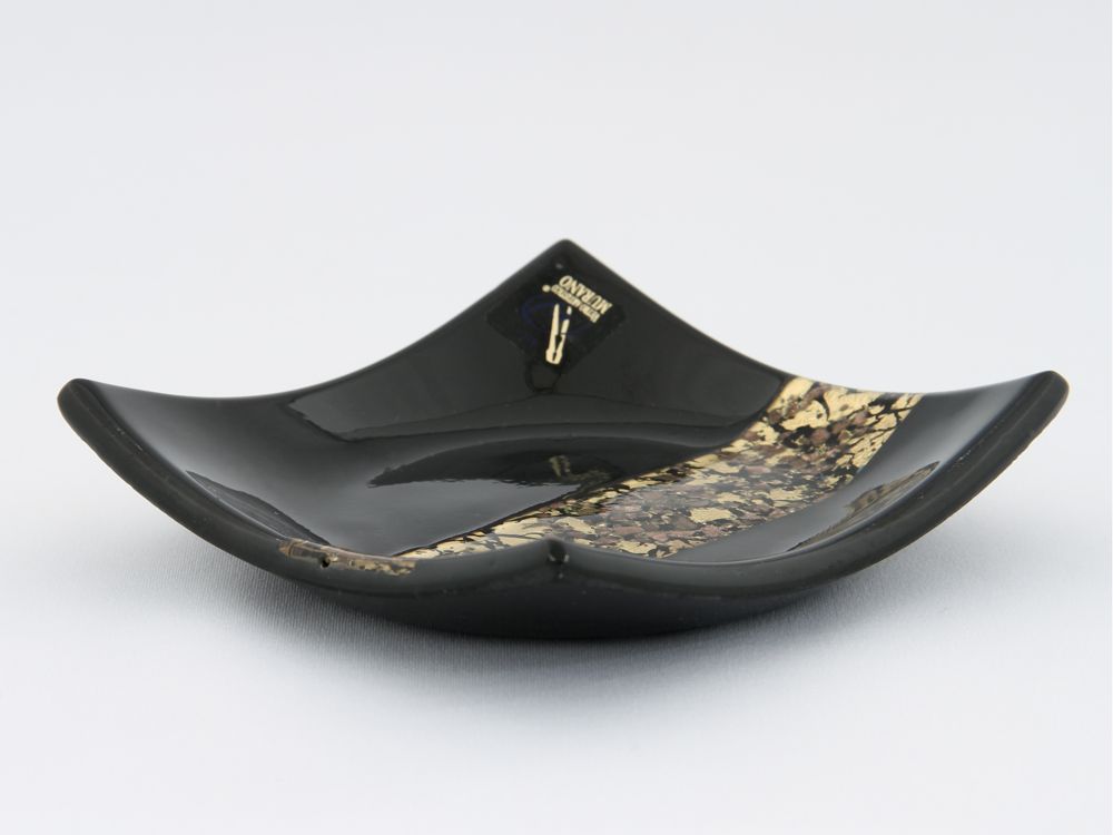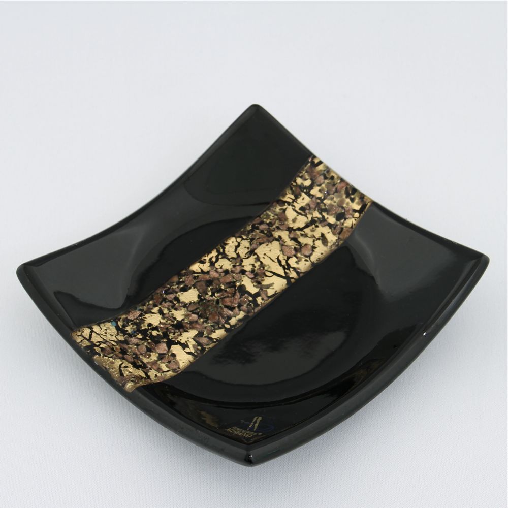 black and gold ashtray in Murano glass with a gold a black band made according to the Avventurina technique