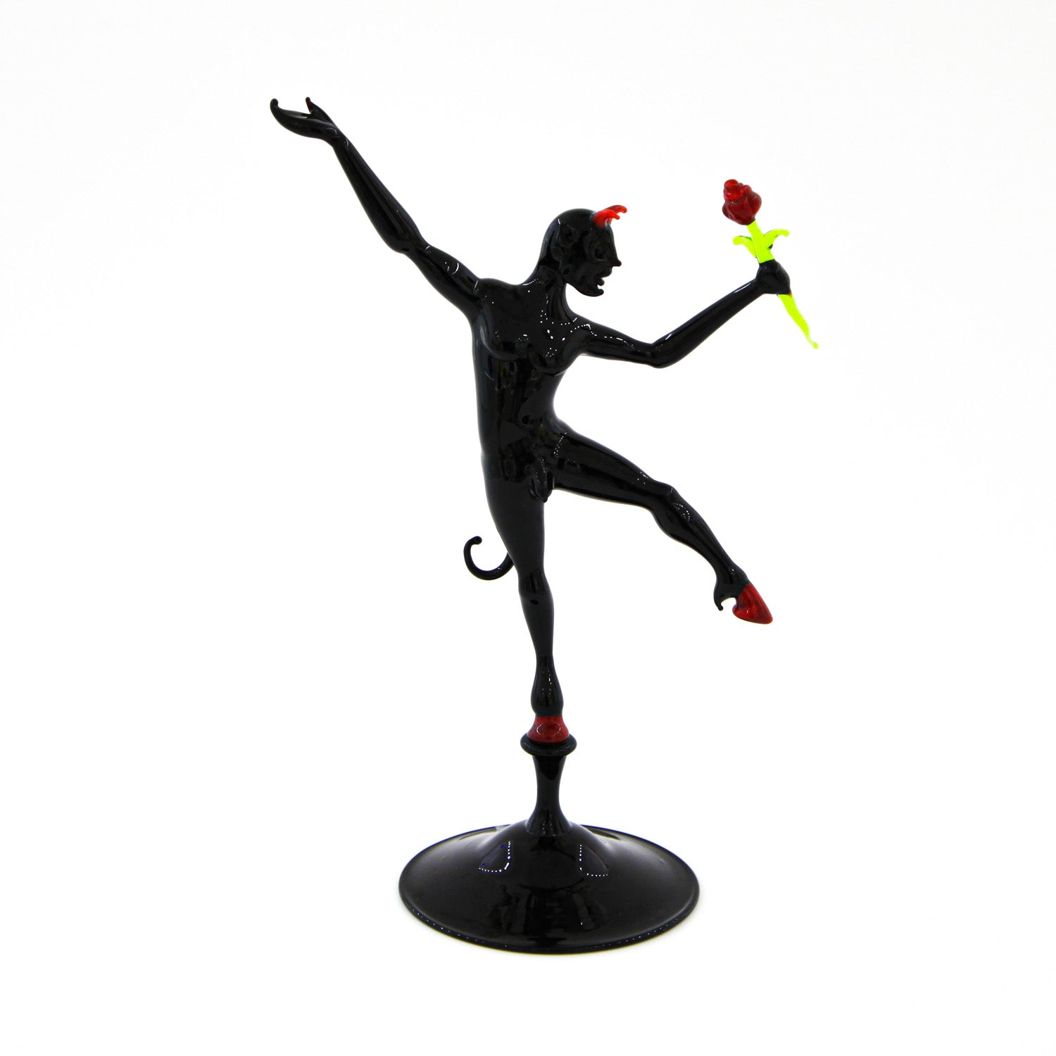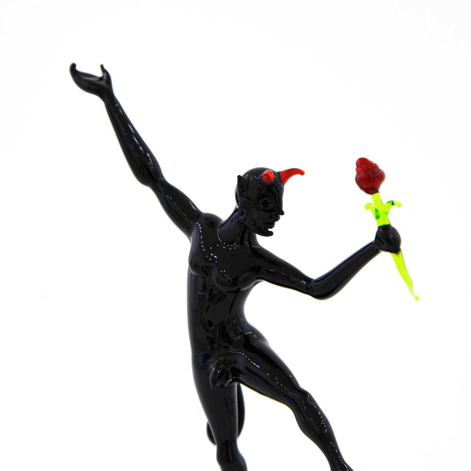 This Murano glass figure, named "Seducer," is meticulously handcrafted using the lampworking technique, which brings out distinctive and dynamic qualities.