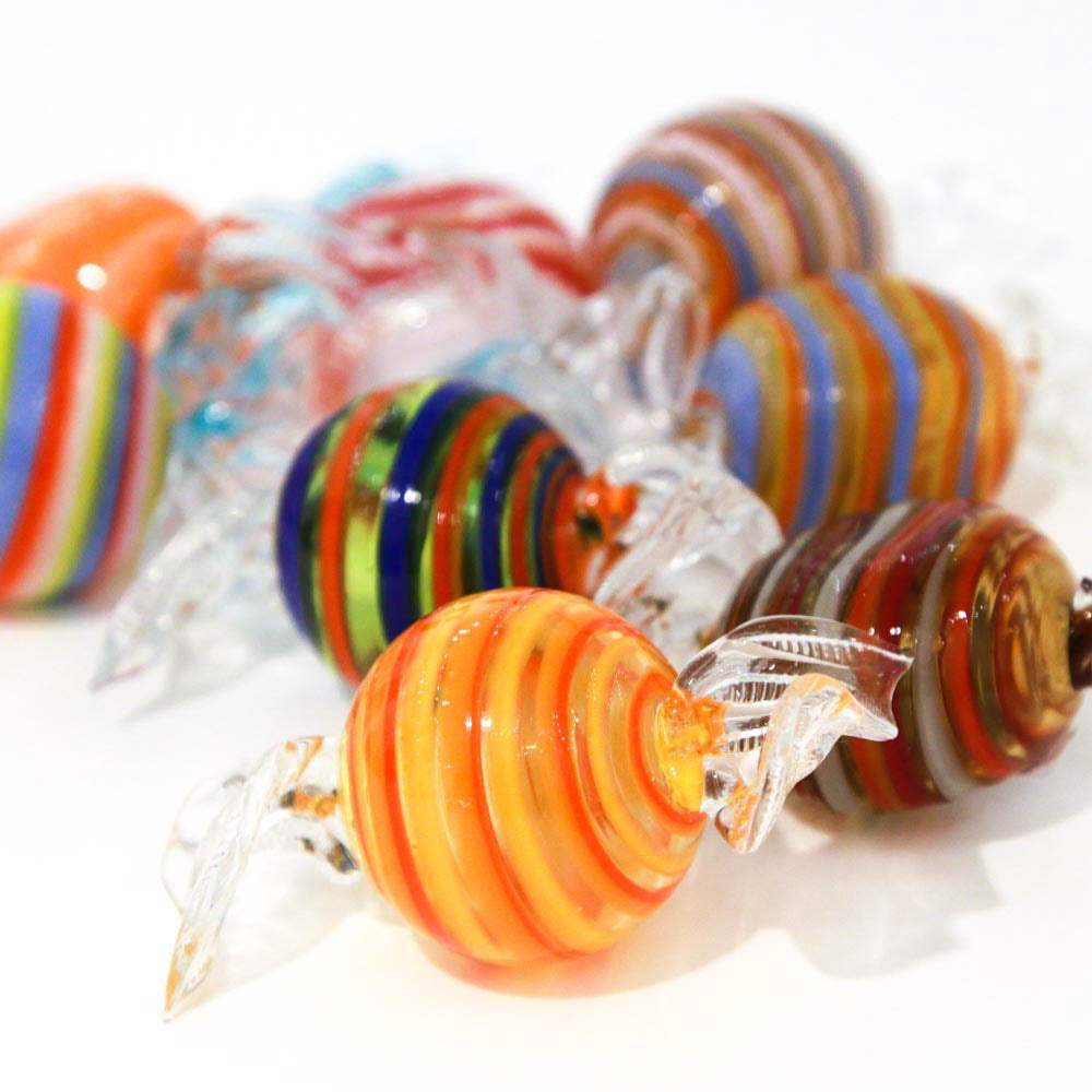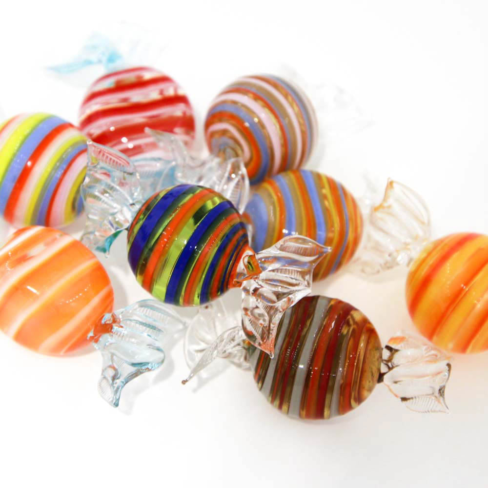 Don't be fooled: these sweets are made of Murano glass. They are carefully handmade one by one, with the "lume technique", choosing the brightest colors and the funniest motives, achieving a great level of realism. Put them all together in a bowl to get a better effect and bring the colors and joy of Murano to your home. Each candy is handmade in Venice following the ancient Muranese techniques.
