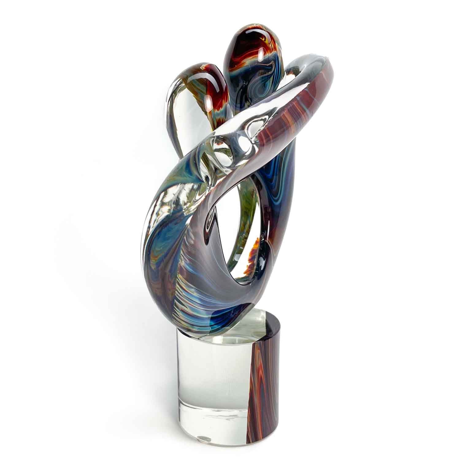 A sculpture in massello Murano glass and calcedonio finish, representing two lovers reaching for each other.