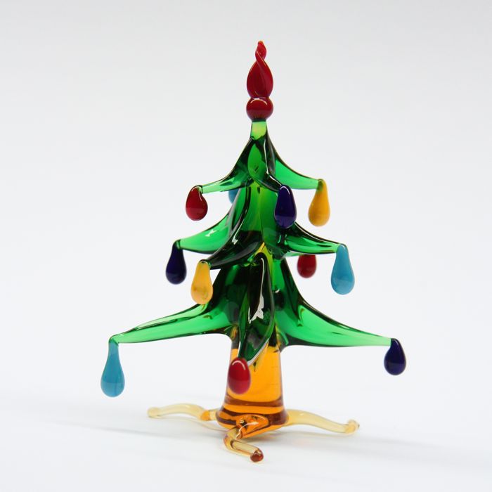 Handmade by lampworking, which is a type of glasswork where a torch is used by the glass master to melt the glass and to model colored sticks Murano glass.
