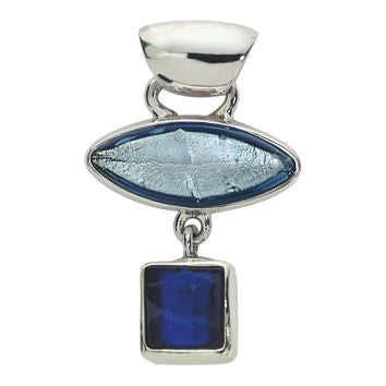 Handmade pendant, made of sterling silver and murano glass - sky Blue - The pendant consists of two murano glass beads which are manually set under heat in an expressely made silver frame and is supplied with a double-wire cord.