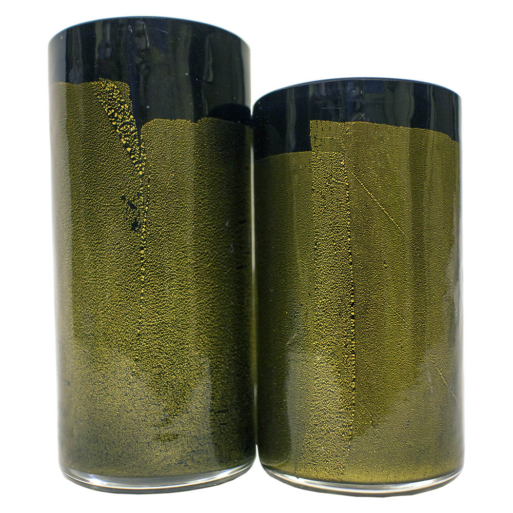 Set of 2 glasses in sleek black Murano glass enriched with 24kt Gold leaf.