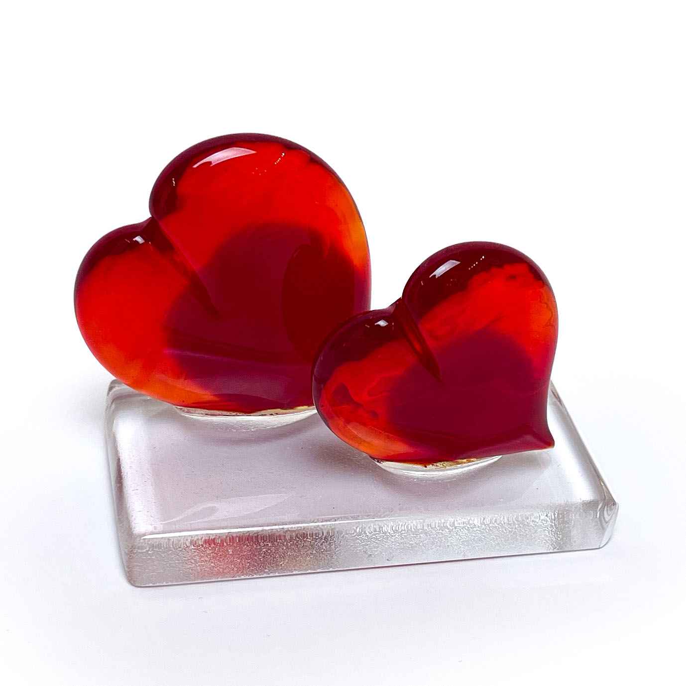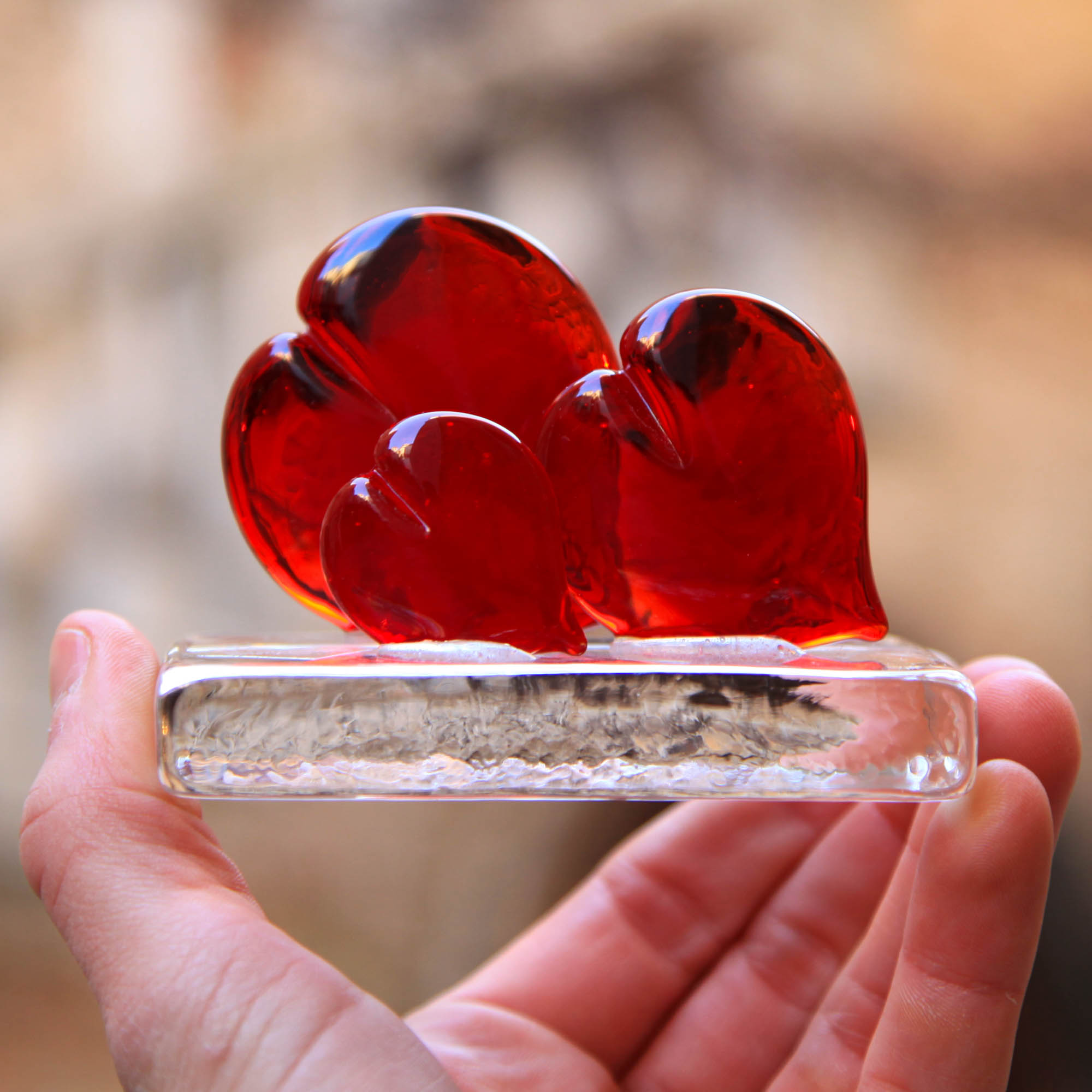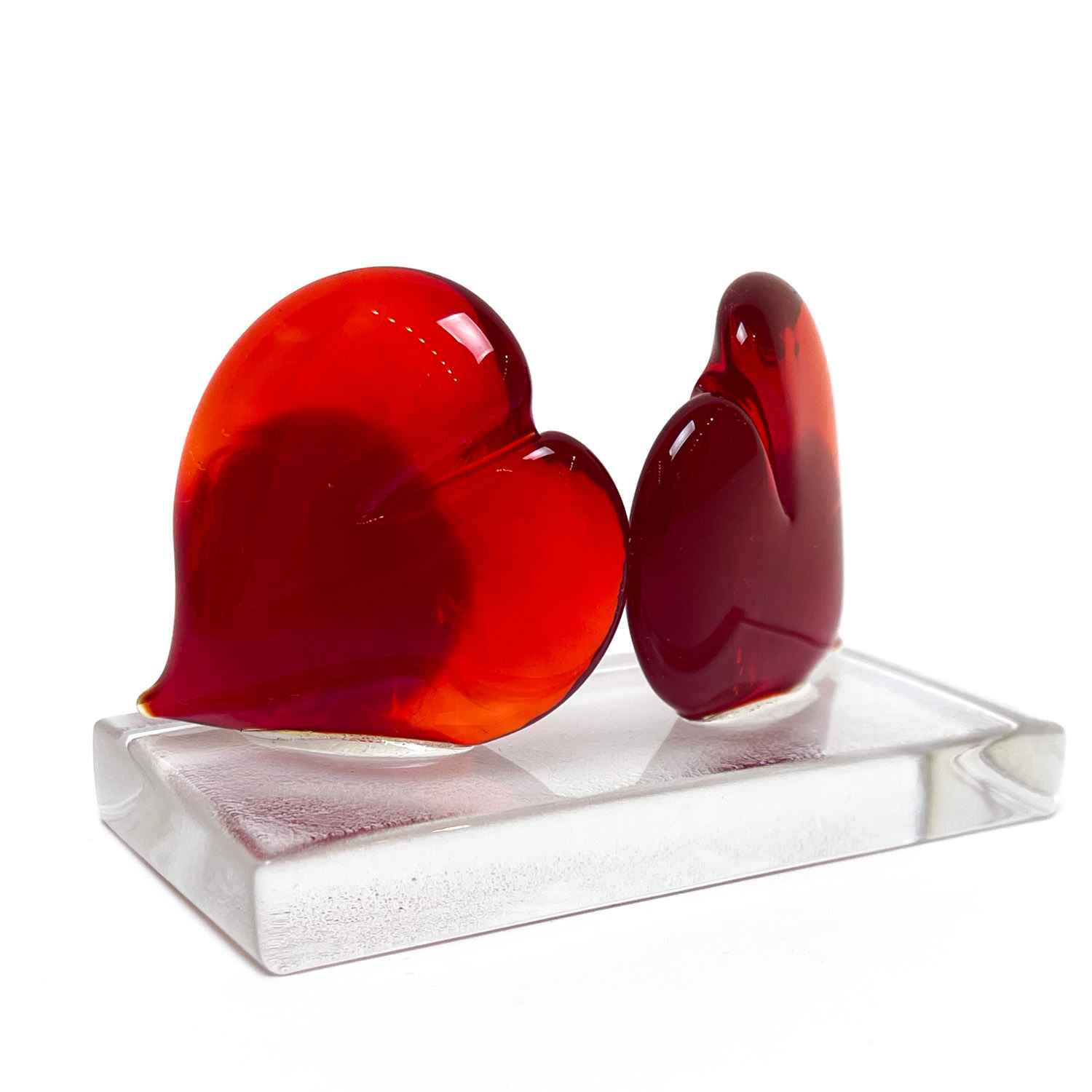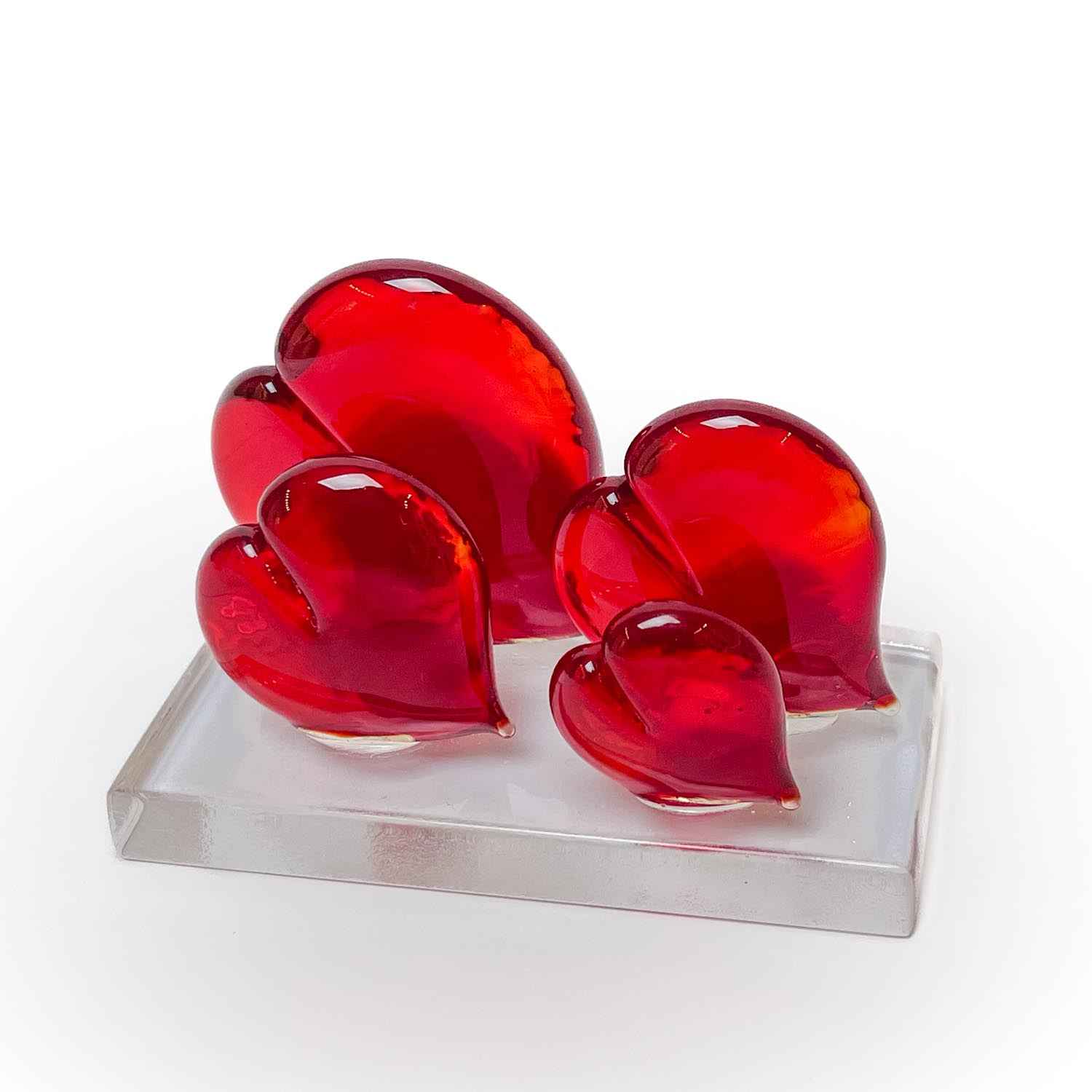 This exquisite paperweight serves not only as a practical desk accessory but also as a charming piece of art, making it a thoughtful gift and an appealing collectible. Crafted in our Murano studio, the crystal clear base mimics a layer of ice and is adorned with handmade red hearts using the traditional Muranese a lume (lampwork) technique. Each piece is unique, with slight variations that highlight its artisanal origin.