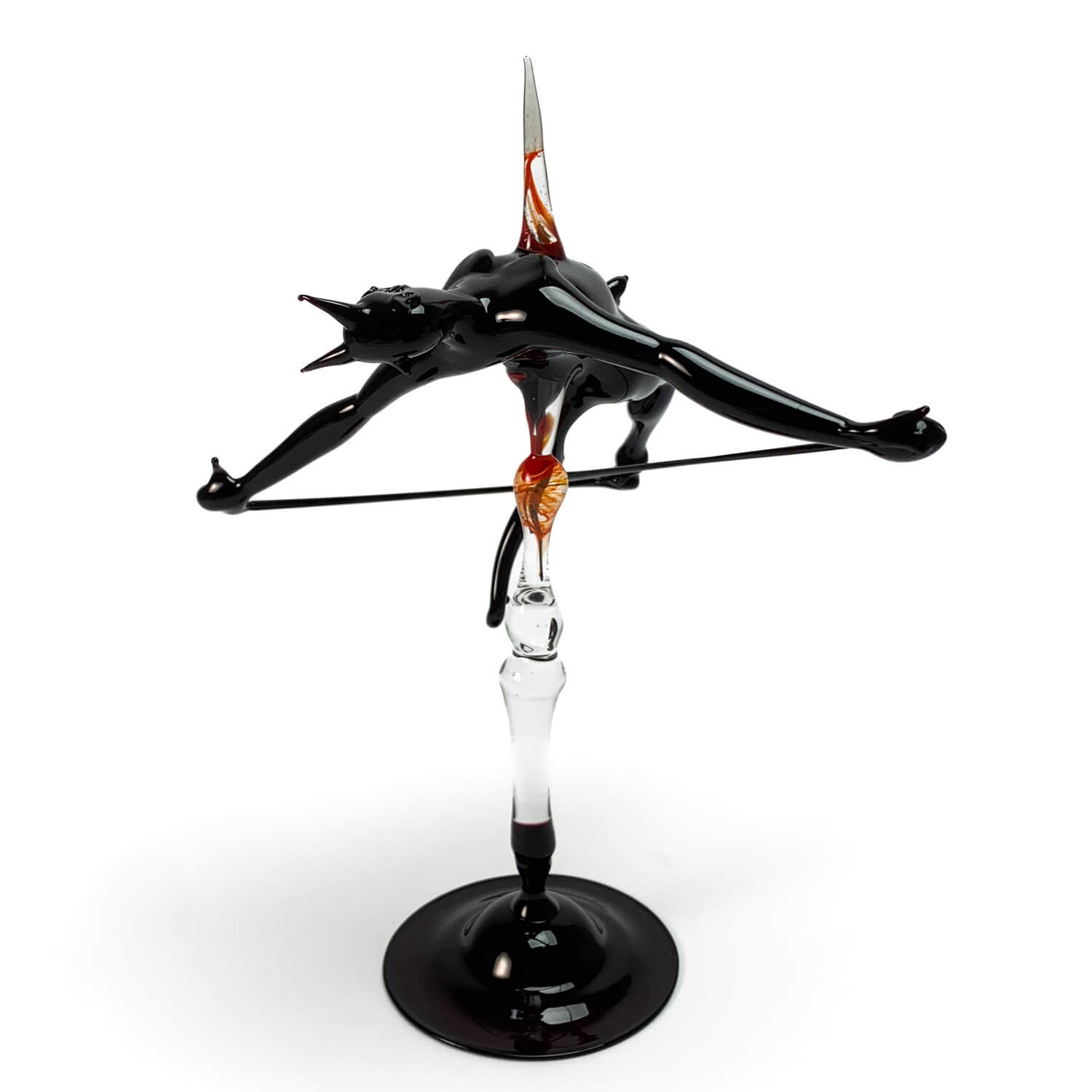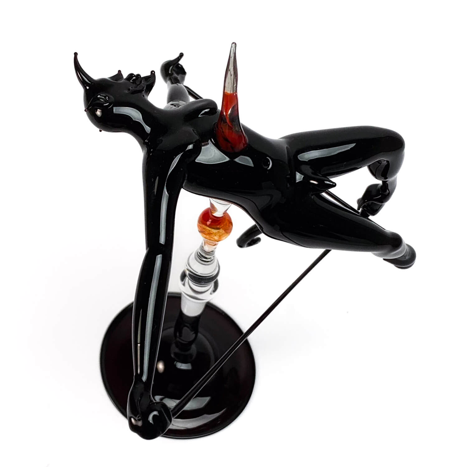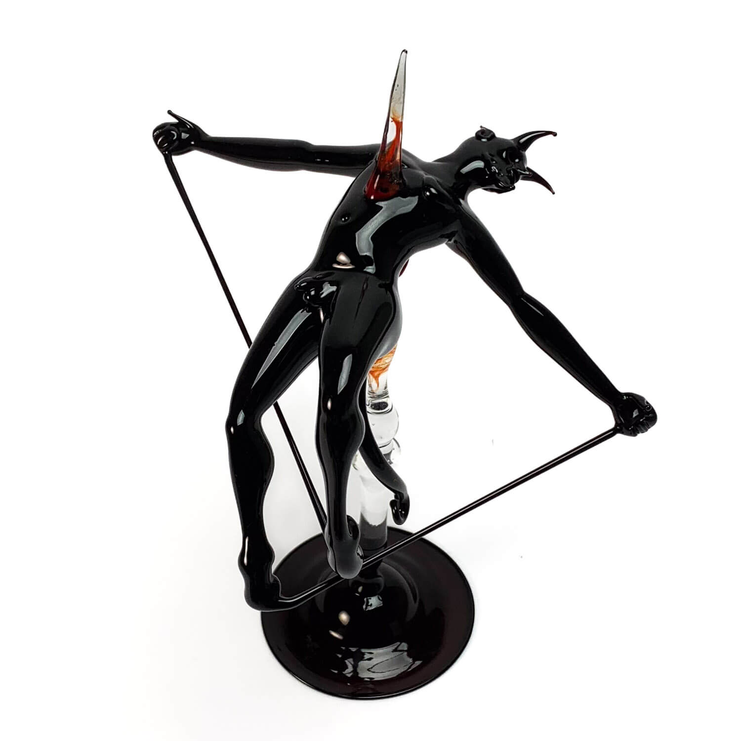 The devil is crafted entirely by hand from Murano glass, a type of glass that is famous for its beauty and quality.