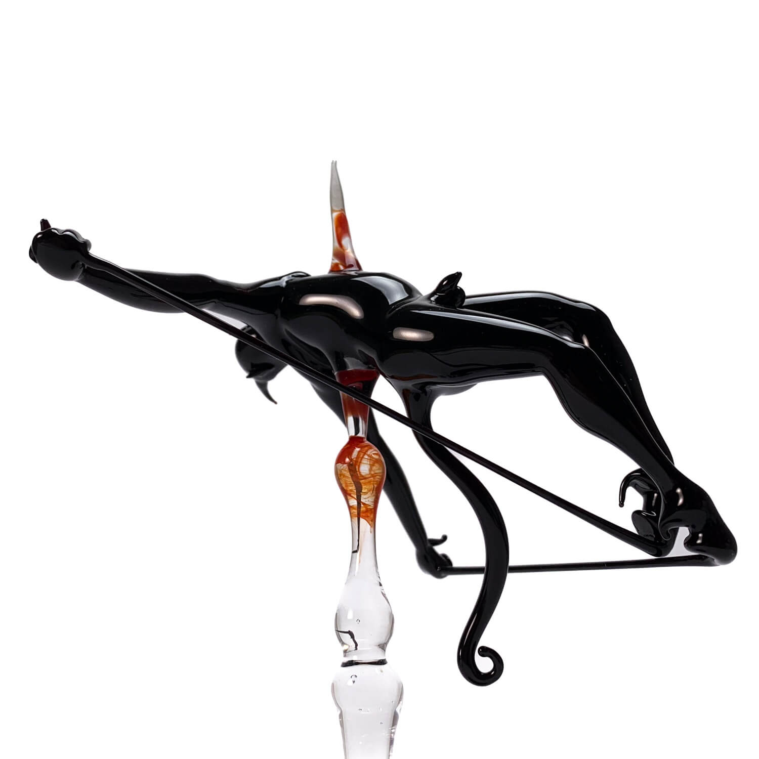 The details on the devil's face and body are finely crafted, with every feature, including the horns and the tail, being carefully sculpted. The bow and arrow are also intricately detailed, making it look like the devil is about to shoot an arrow.
