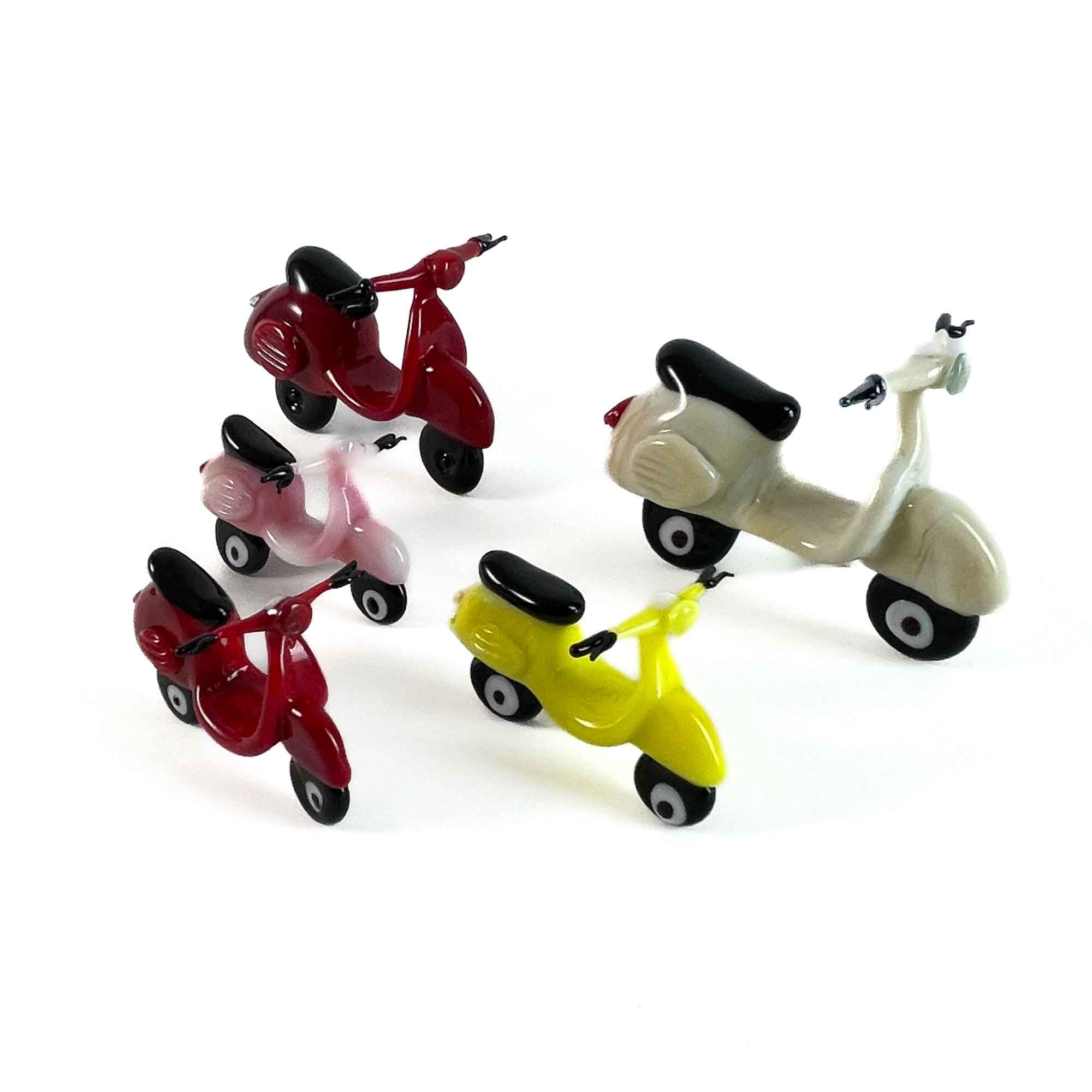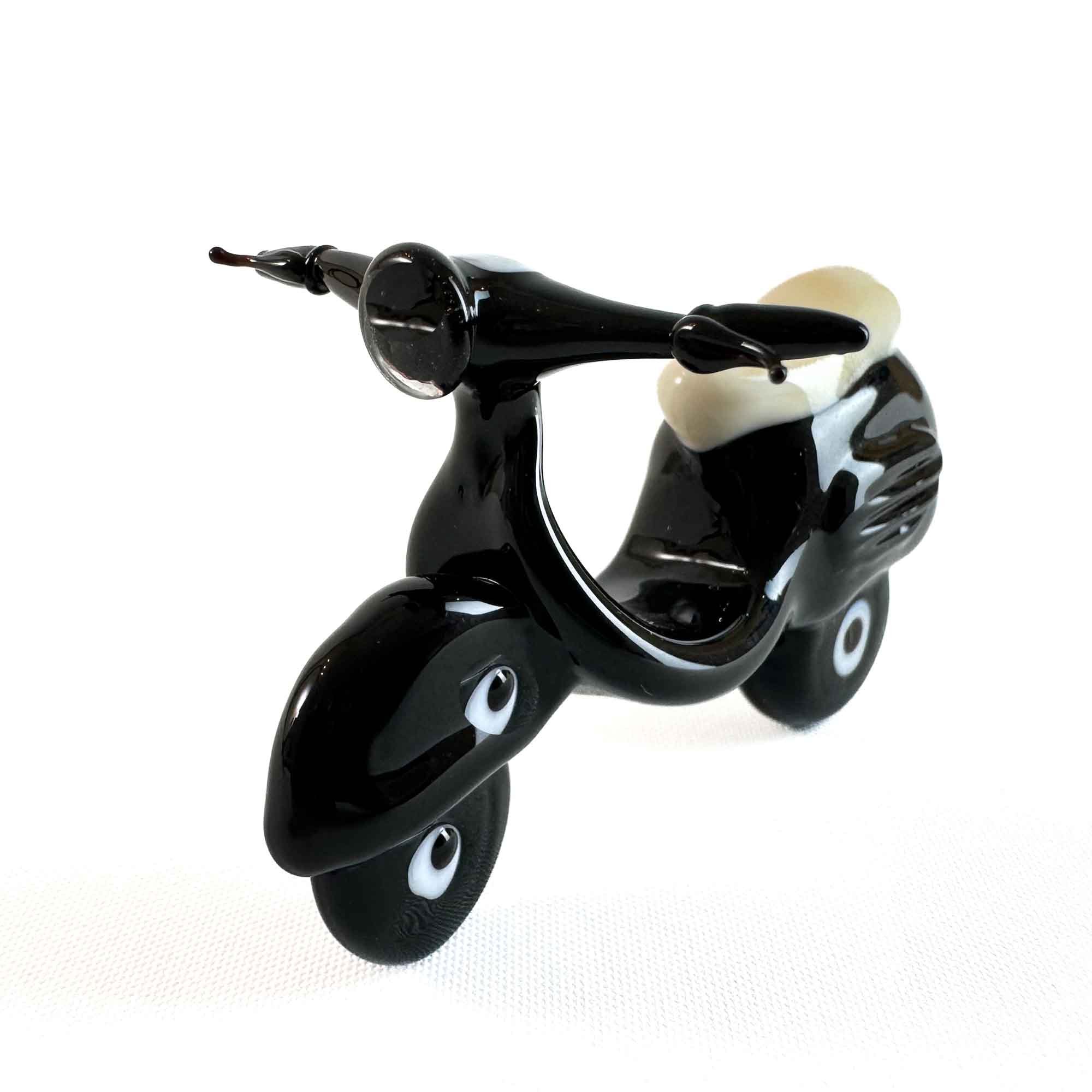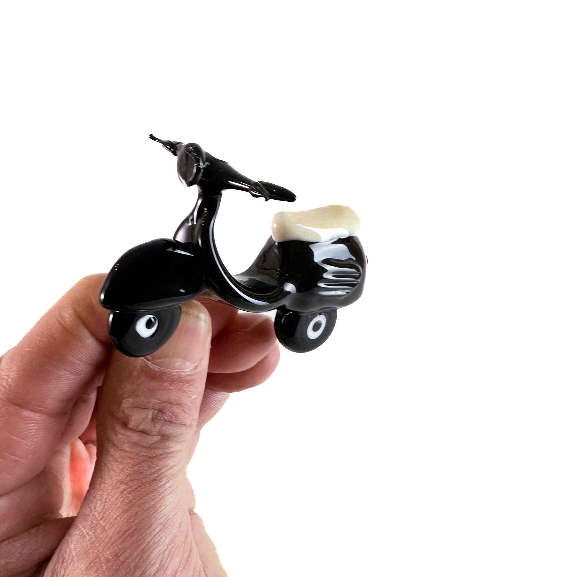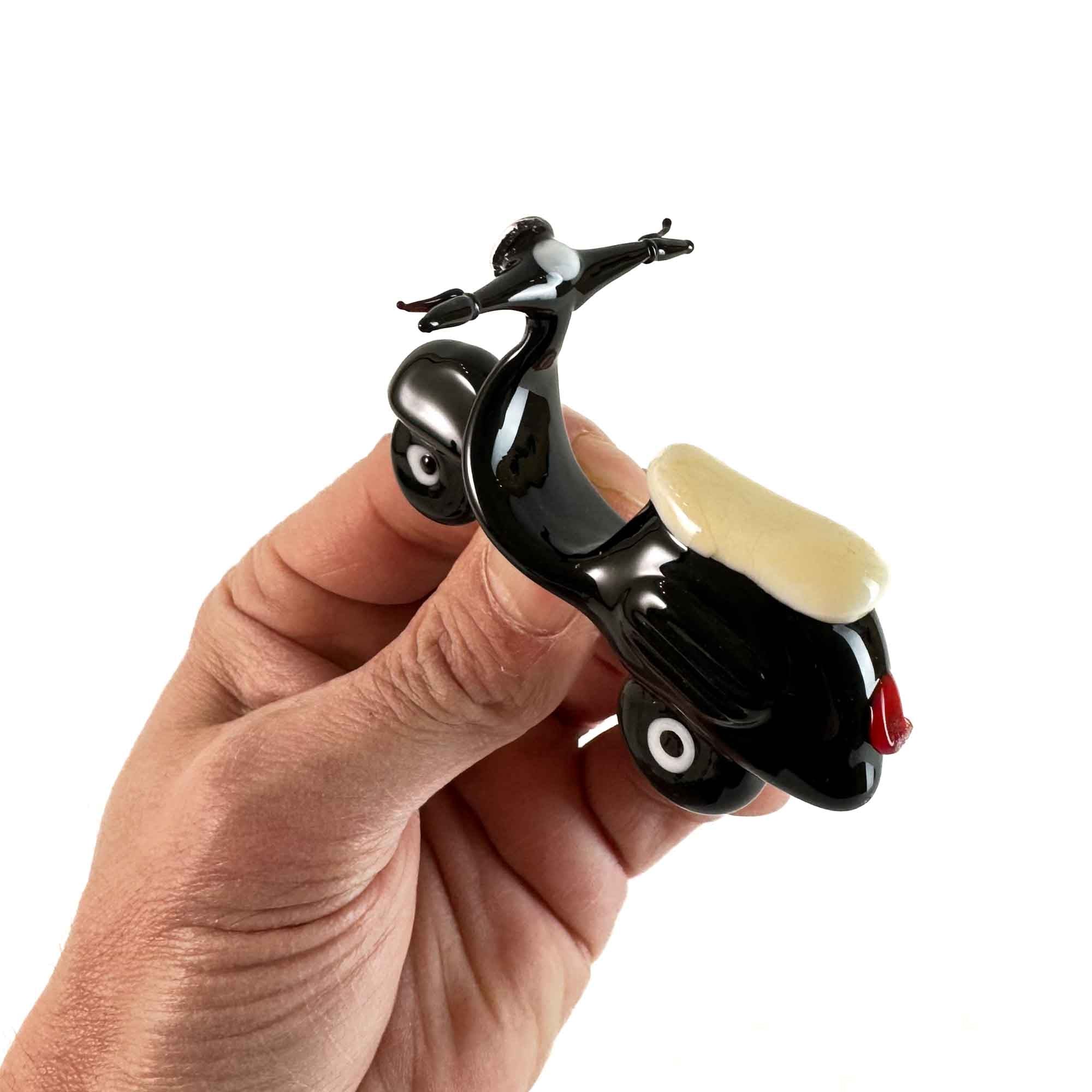 This Murano glass Vespa miniature is a small-scale replica of the iconic Vespa scooter, made of fine glass from the famous Venetian island of Murano.