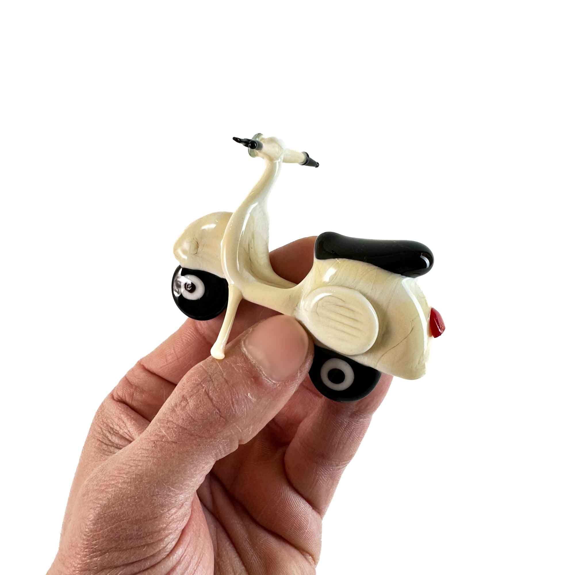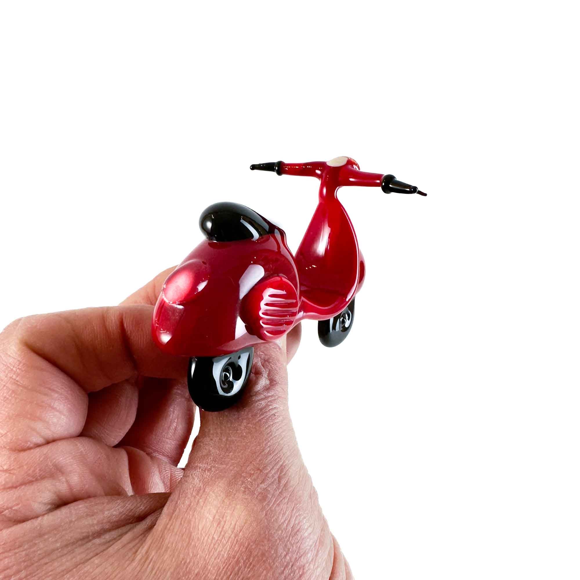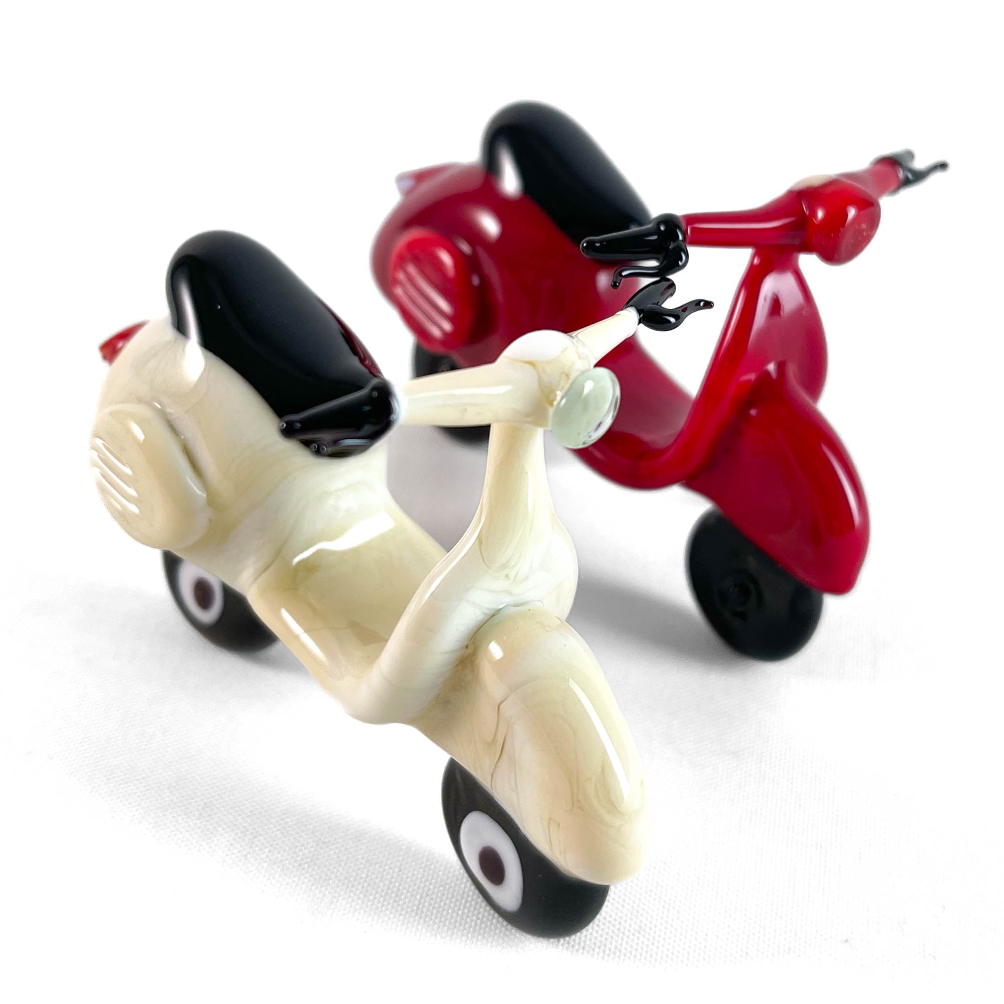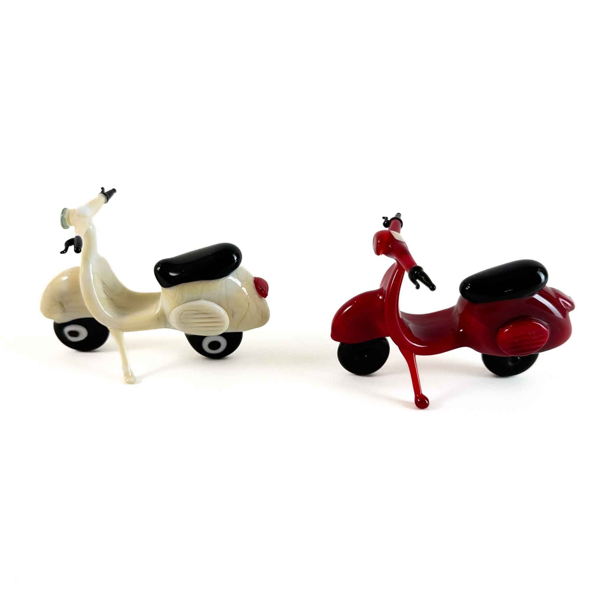 This Murano glass Vespa miniature is a small-scale replica of the iconic Vespa scooter, made of fine glass from the famous Venetian island of Murano.