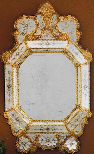 Delicate reproduction of Venetian mirrors XVII Century coloured and etched with the use of sandstone wheels.