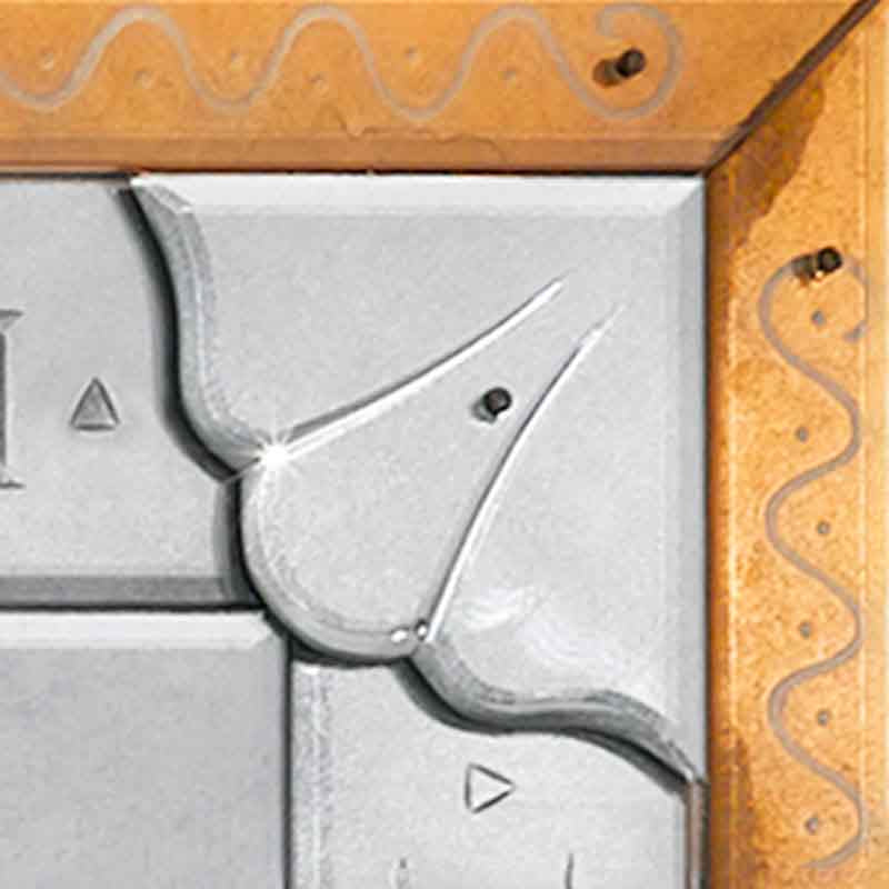 Faithful reproduction of bevelled mirror with copper etchings, designed by Leonardo da Vinci in the XVI Century.