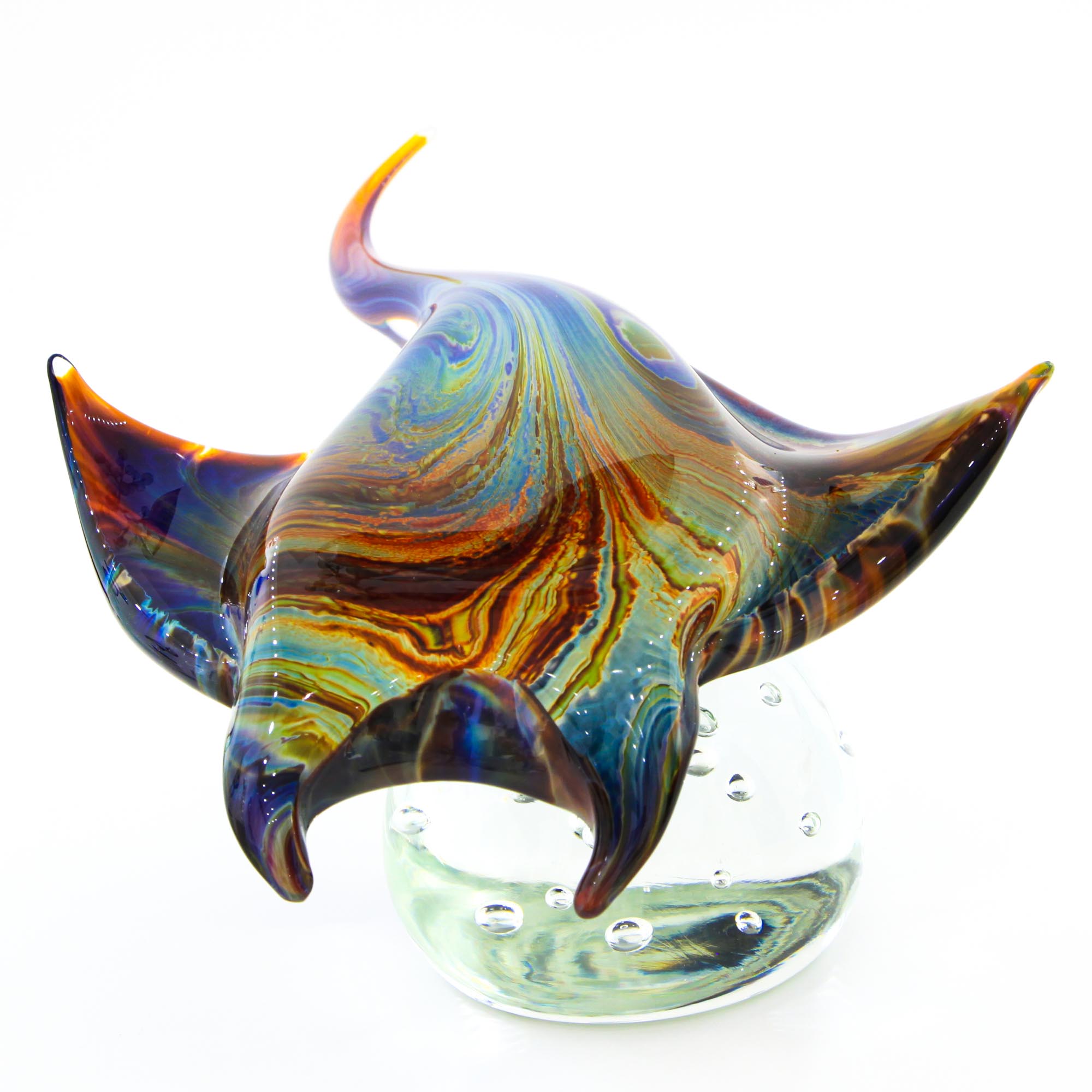 Sculpture of a Manta Ray in Murano glass, made using the Massello and Calcedonio techniques.