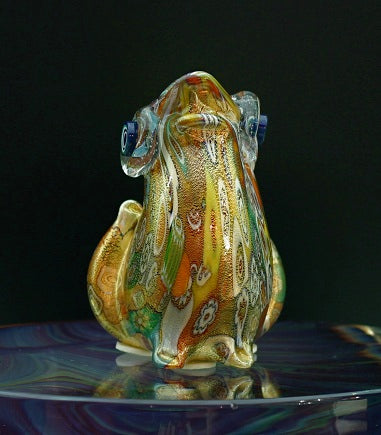 As a demonstration of the skill of the Murano glass masters, the frog is made by hand with the solid wood technique.