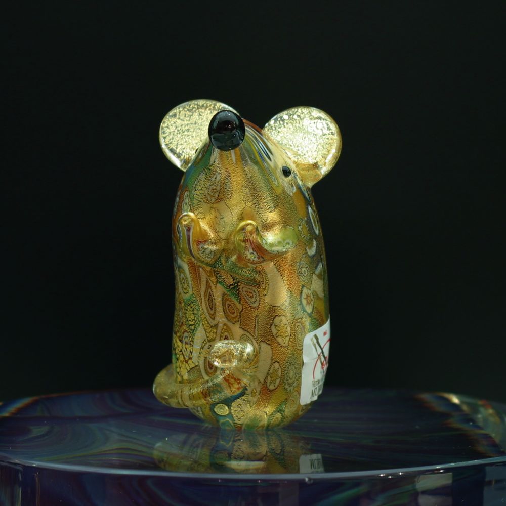 This amazing mouse is made of transparent glass in which surface are melted multicolored section of canna.