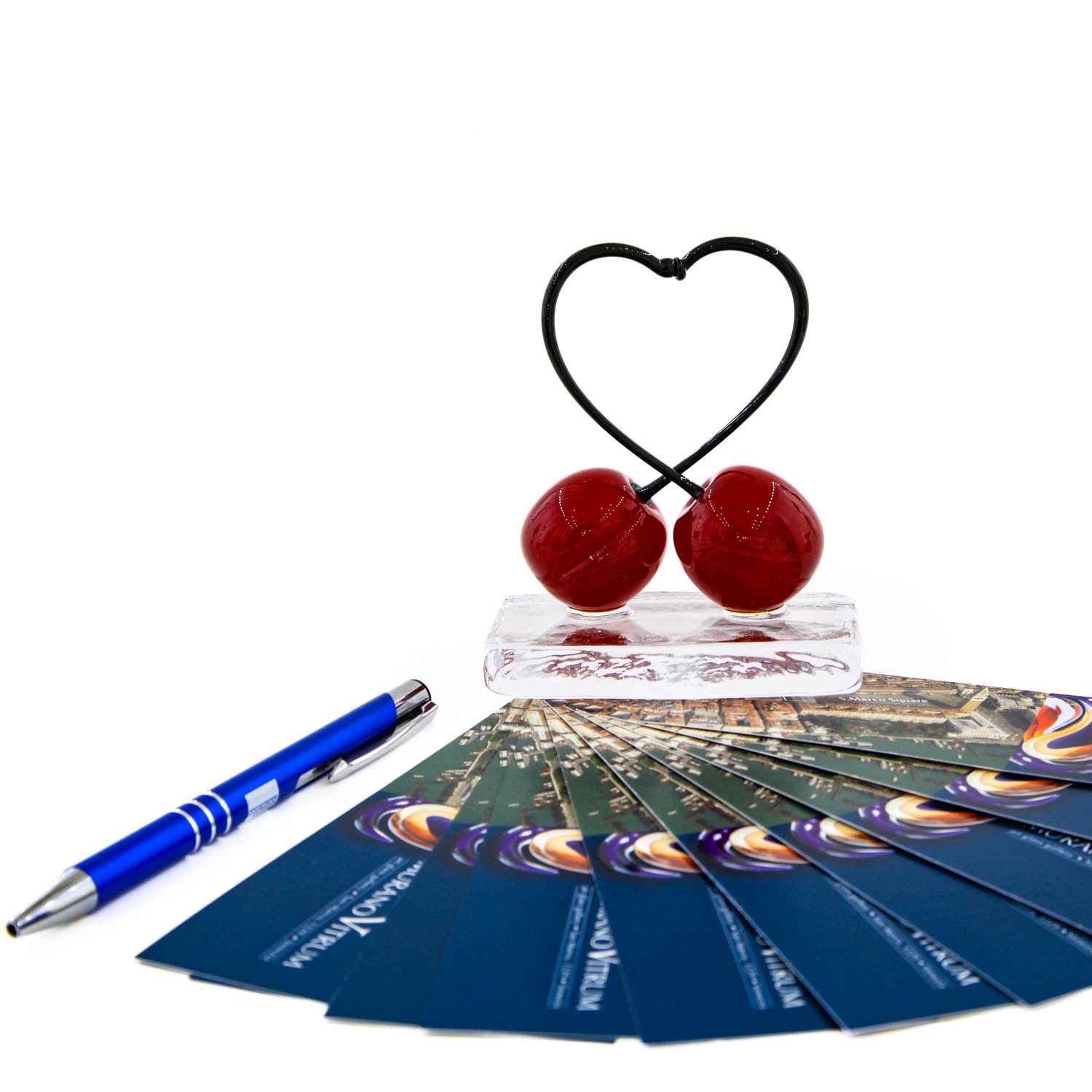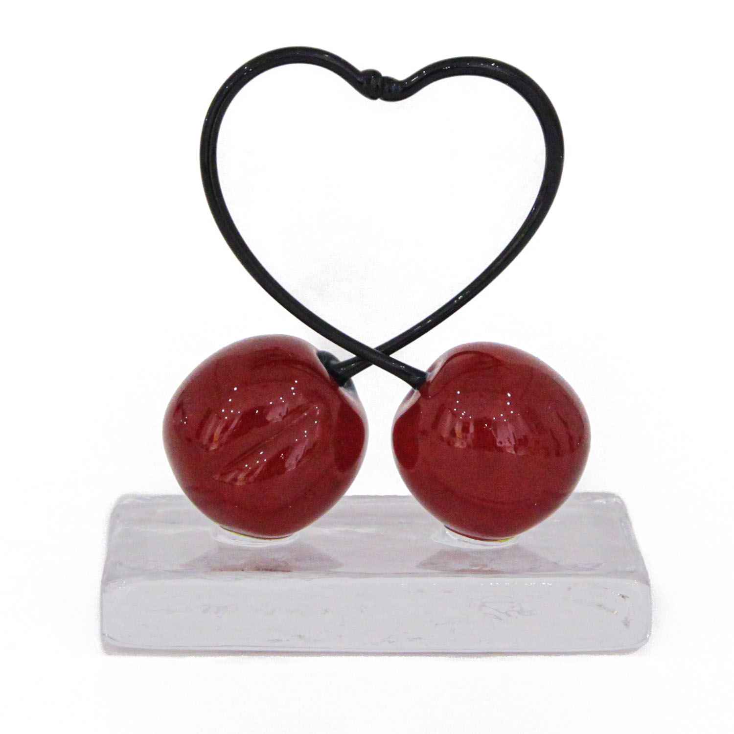 Paperweight or Ornament with 2 Heart - Shaped Cherries "Love and Happiness" Big Size - Murano Glass