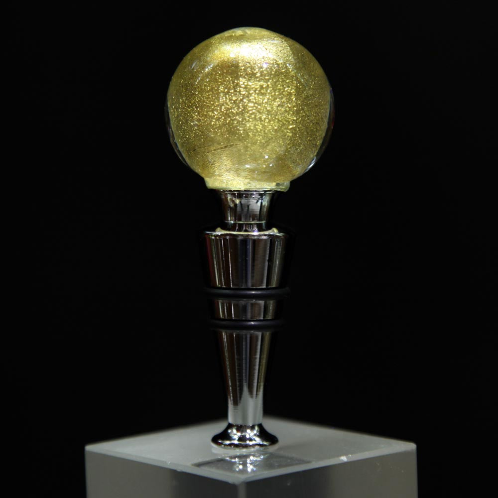 Bottle stopper with Murano glass grip made with 24KT gold or silver leaves sunk in the crystal.