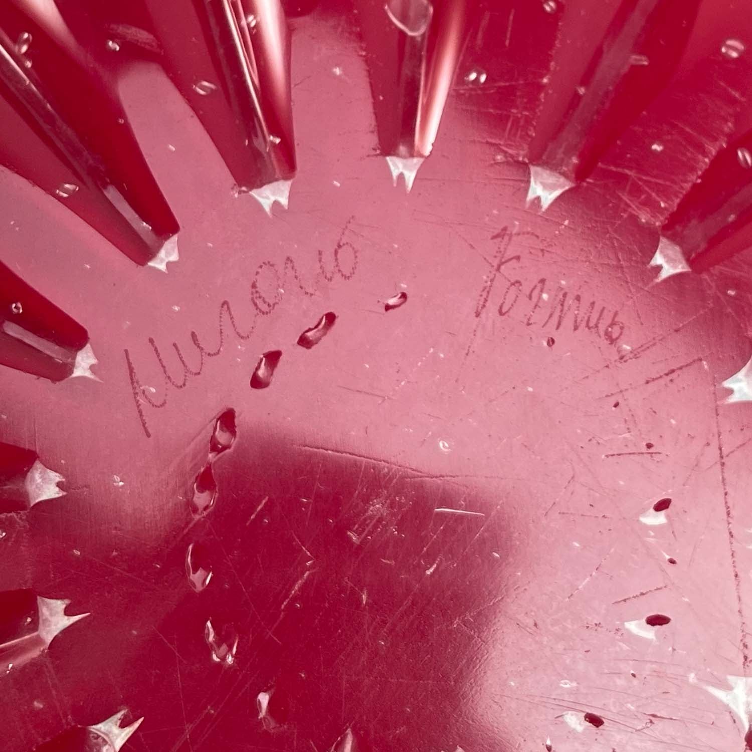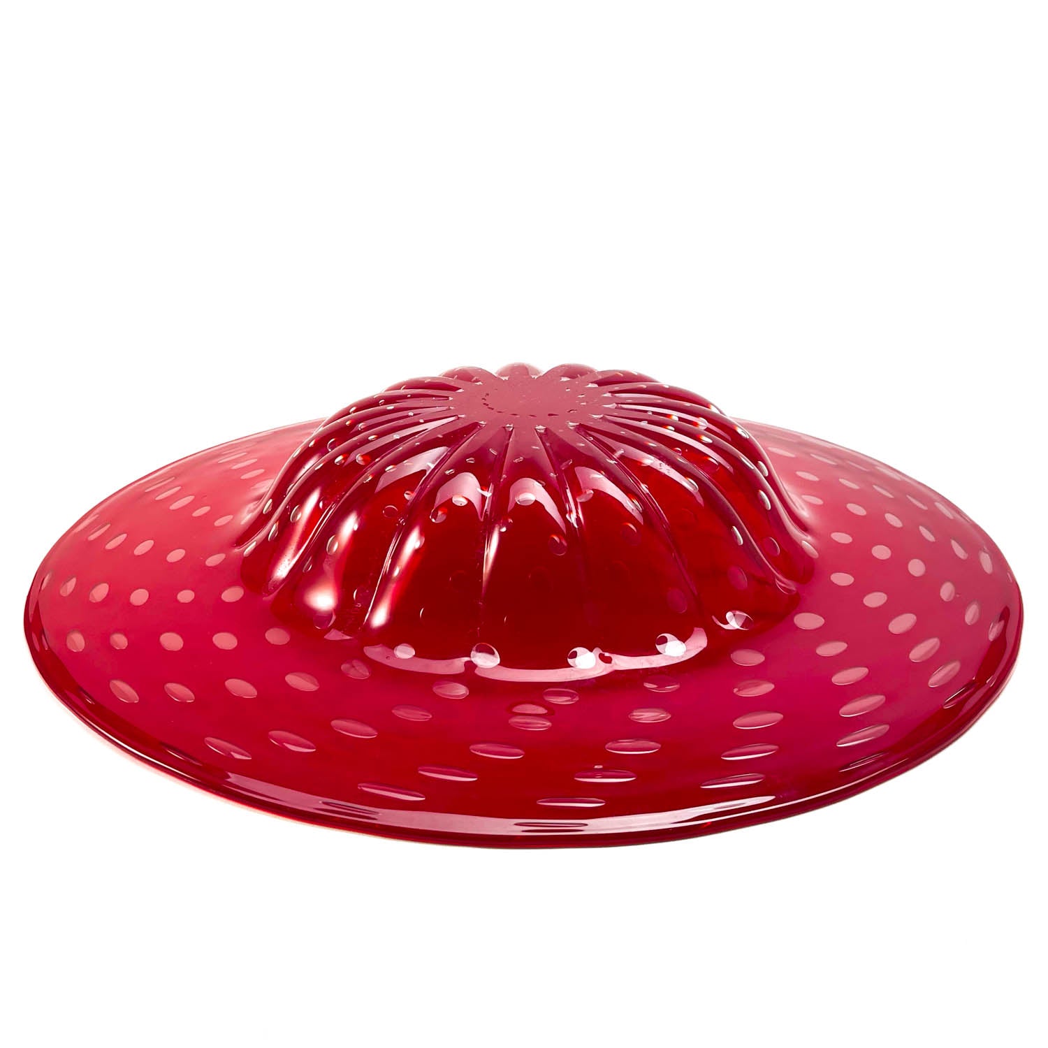 This huge Murano glass red center piece is a bold and striking piece, crafted by skilled glass artisans in Murano, Italy. Its size and deep red color command attention, while the gold leaf detailing adds a touch of elegance and refinement.