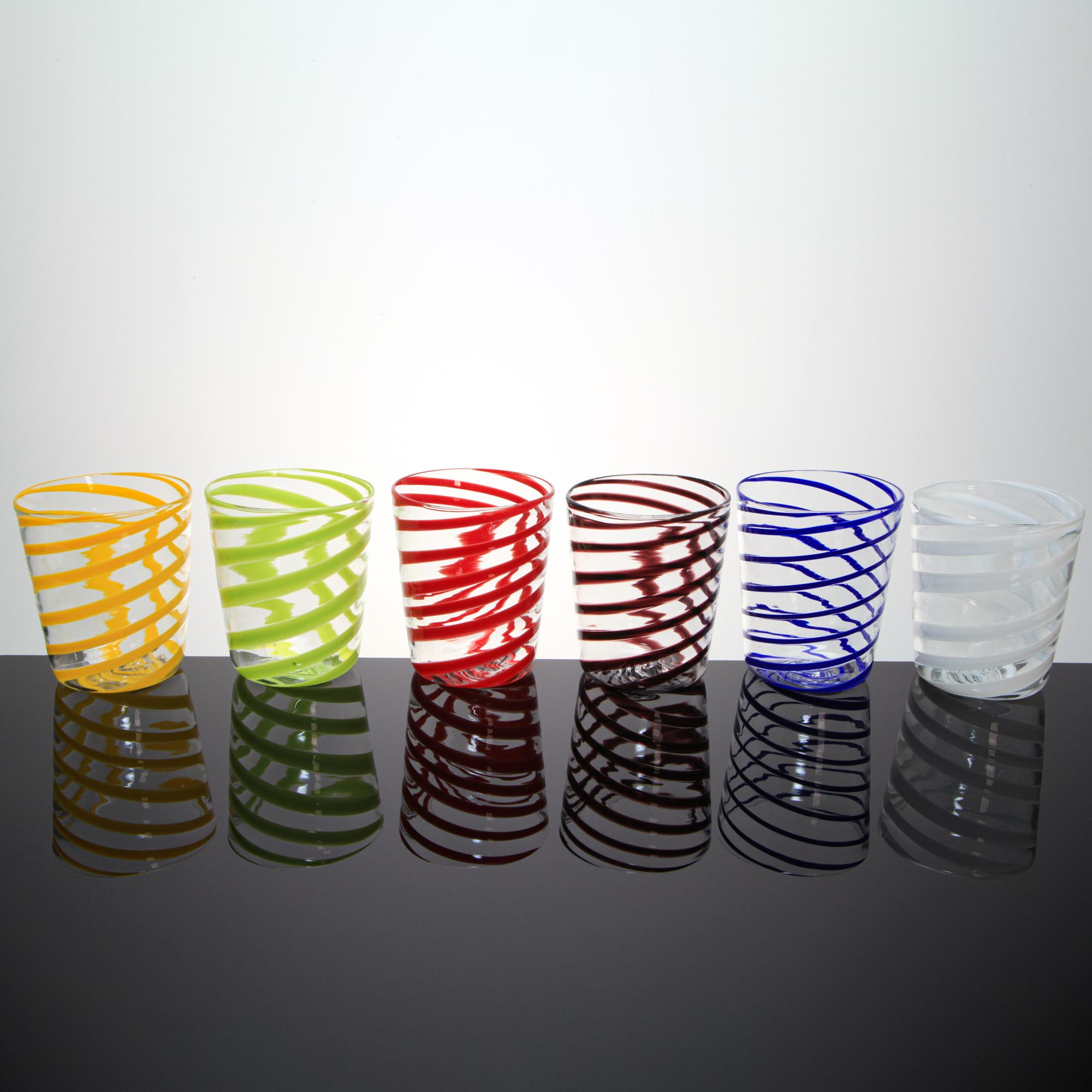 The new glasses by MuranoVitrum are inspired by the typical Muranese "Goti de Fornasa" (Furnace glasses).