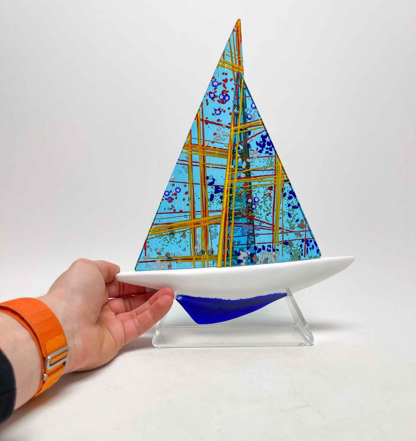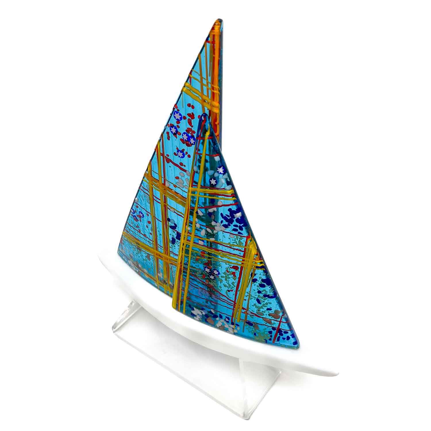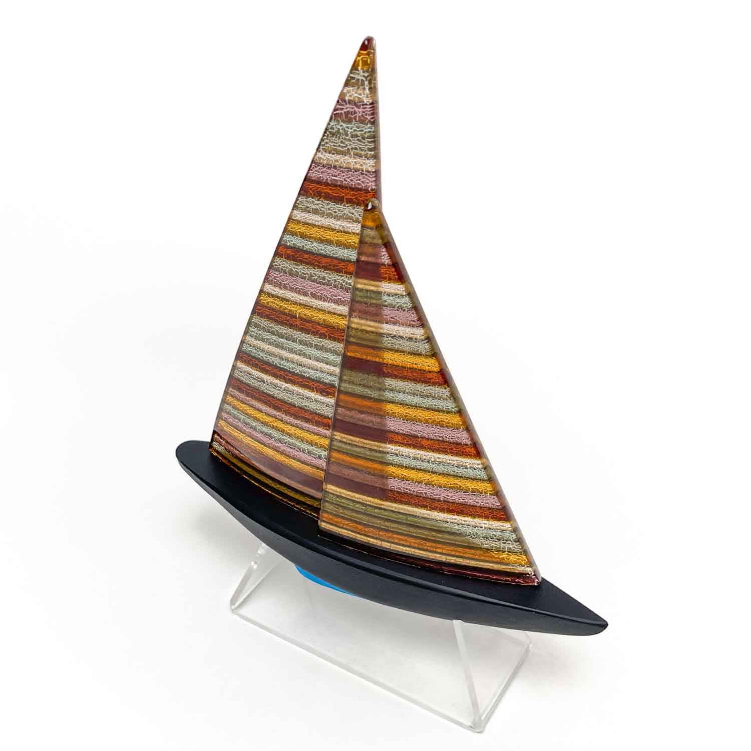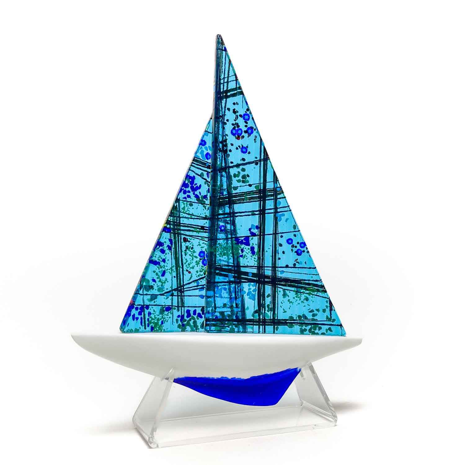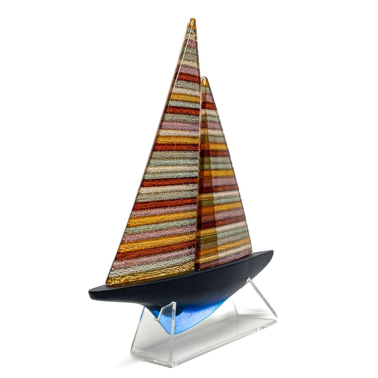 Ogni barca a vela è soffiata a mano nell'isola di Murano, Venezia, utilizzando tecniche tradizionali tramandate da generazioni. Questo rende ogni pezzo unico, con lievi variazioni che ne attestano l'autenticità e l'artigianalità.