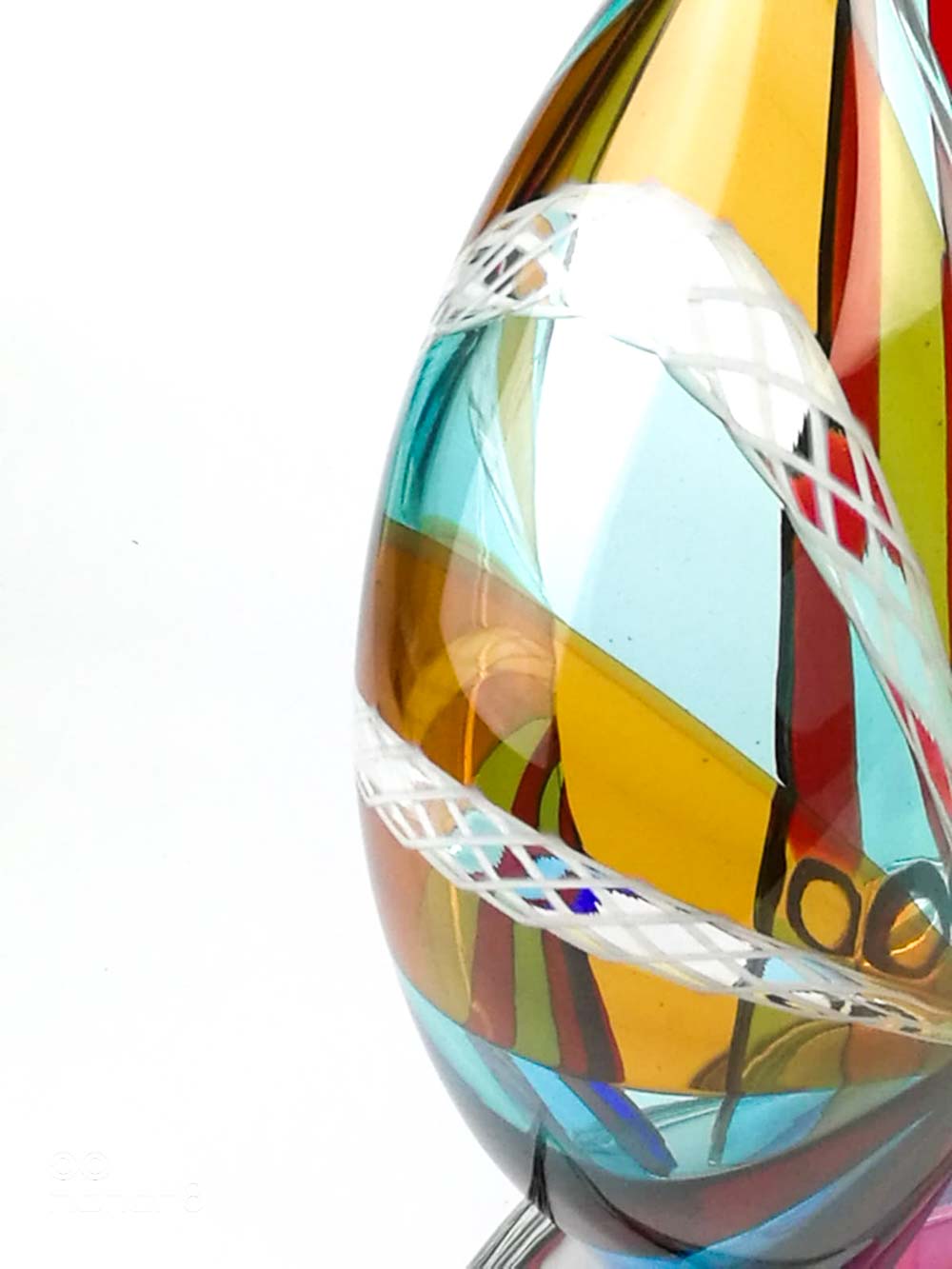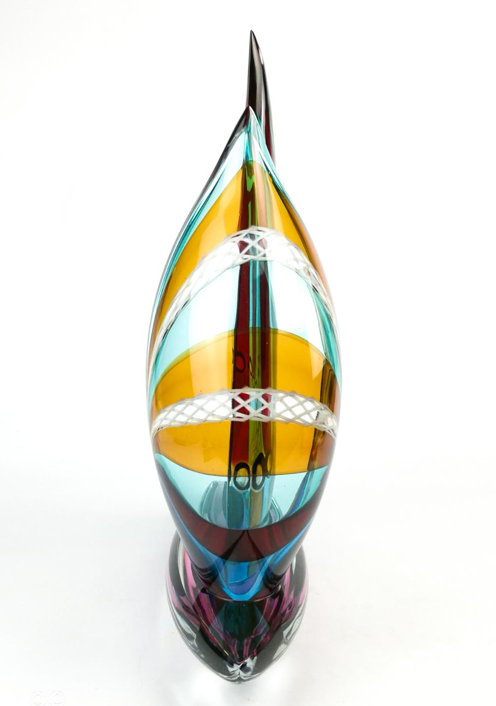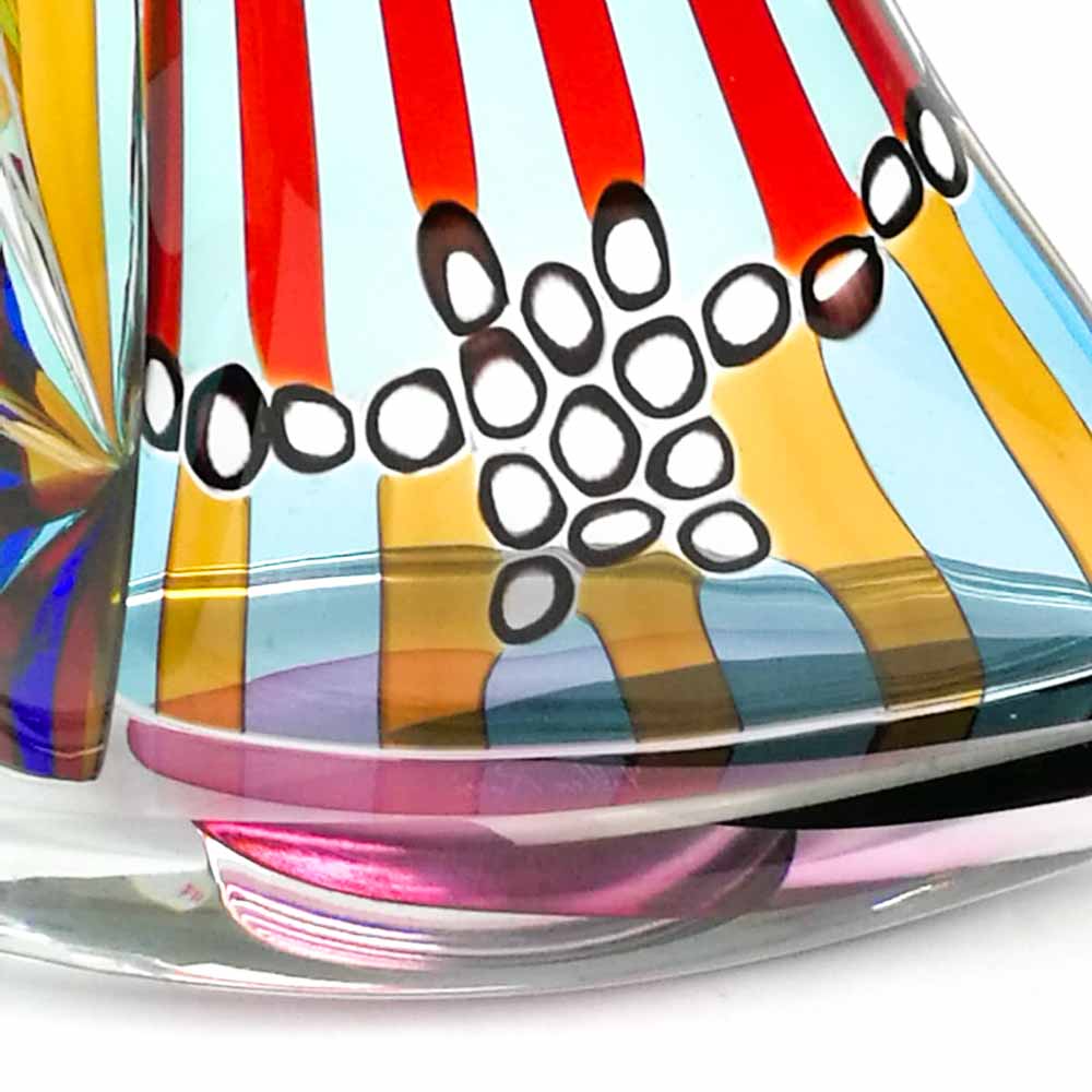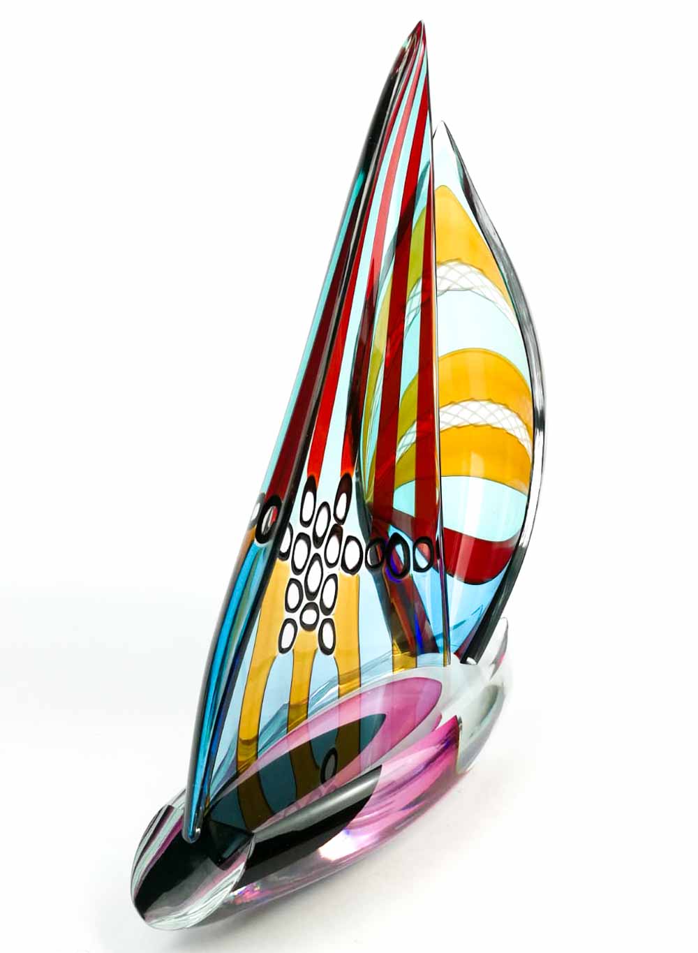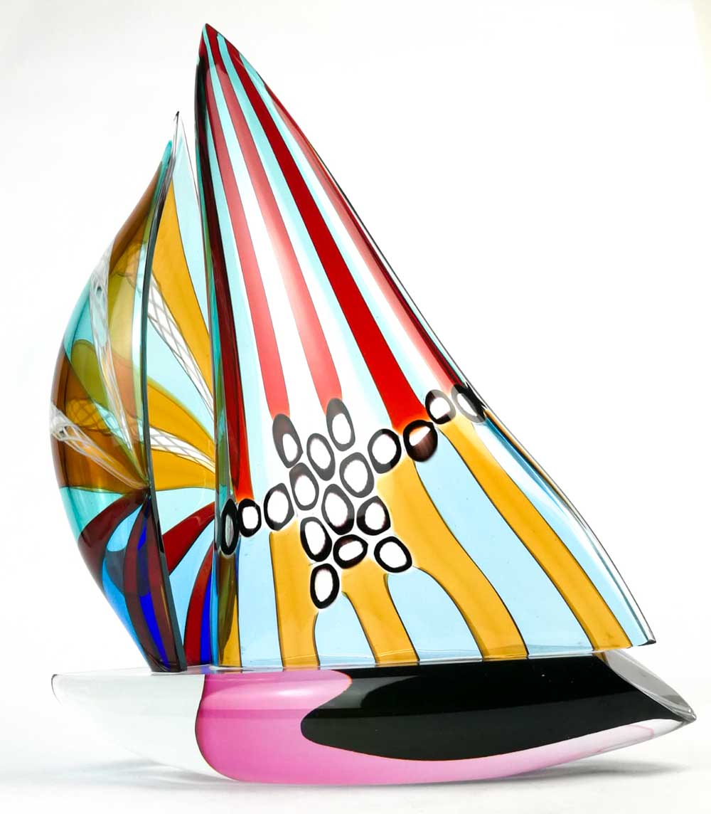 A wonderful example of Muranese art: each piece of this sailboat is handmade separately with inclusions of multicoloured canna. Its vibrant colors have been inspired by the colors of Venice and the shimmering summer light of the lagoon.Hand-made in Murano by selected artists, for our gallery; following the ancient techniques.Signed at the bottom.