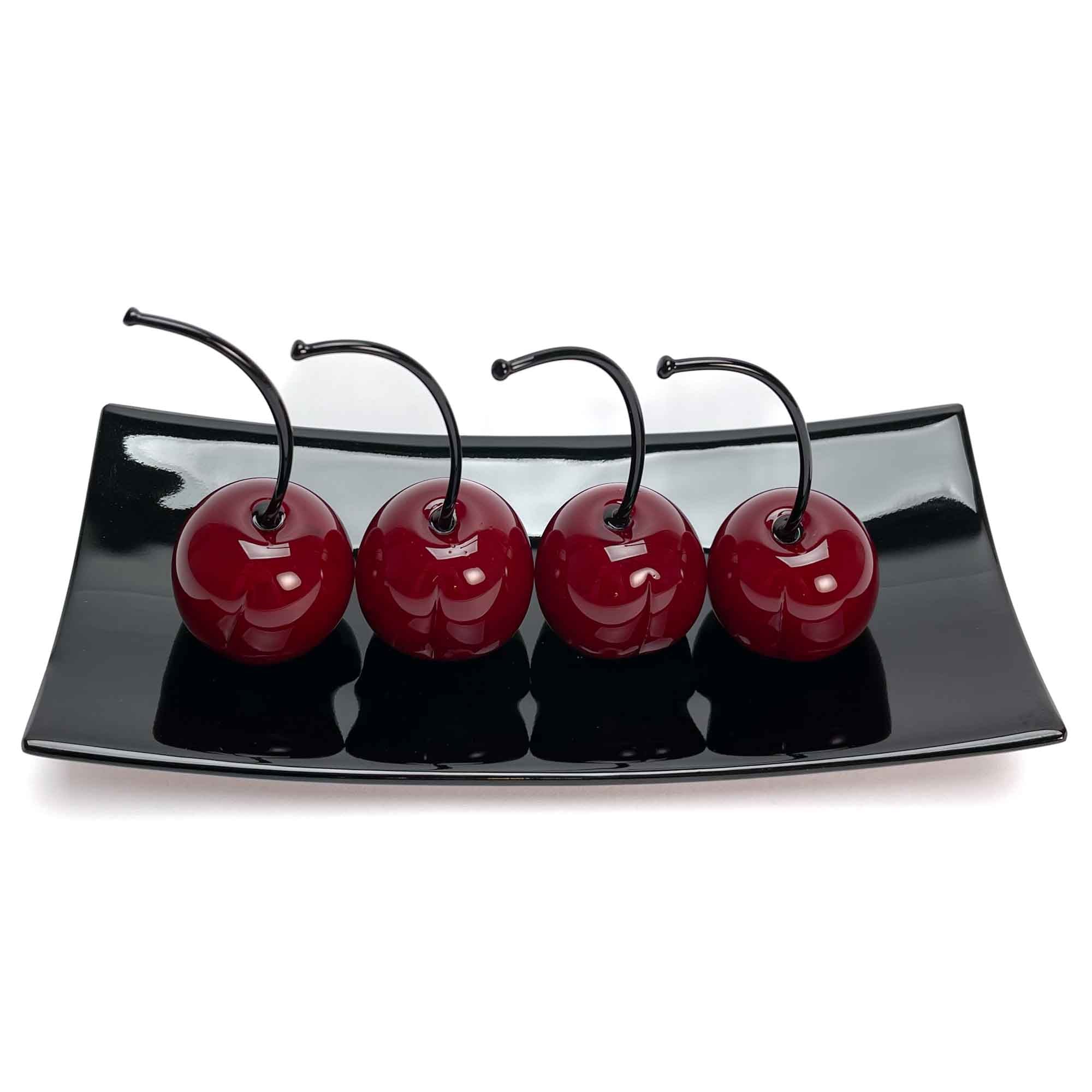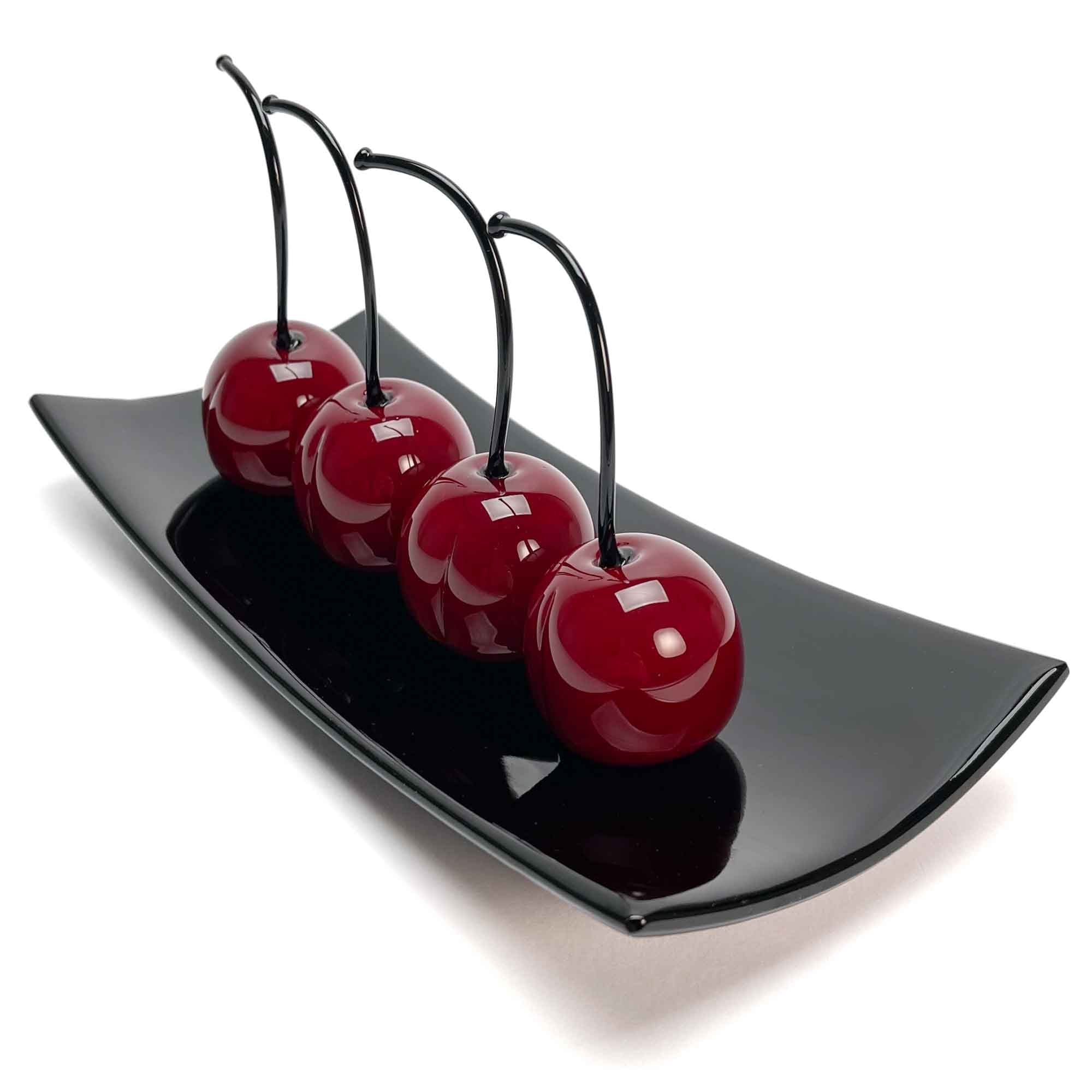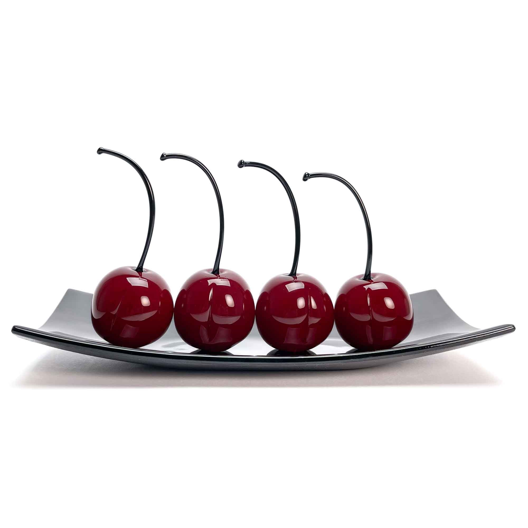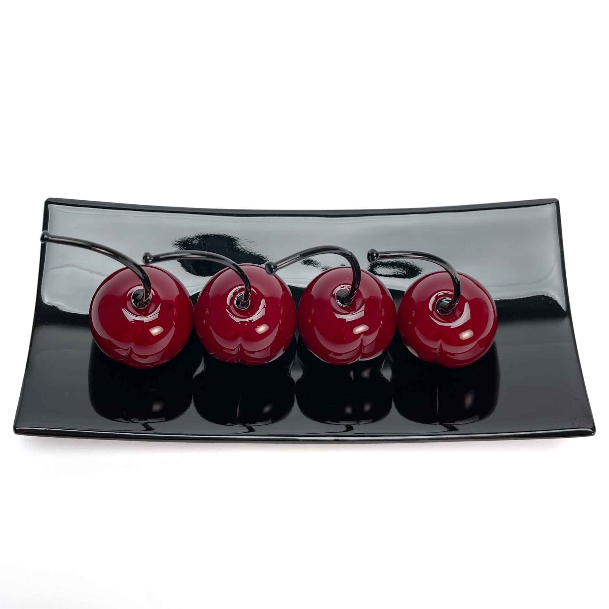 Set 4 Big Cherries with Black Plate "Love and Elegance" - Murano Glass