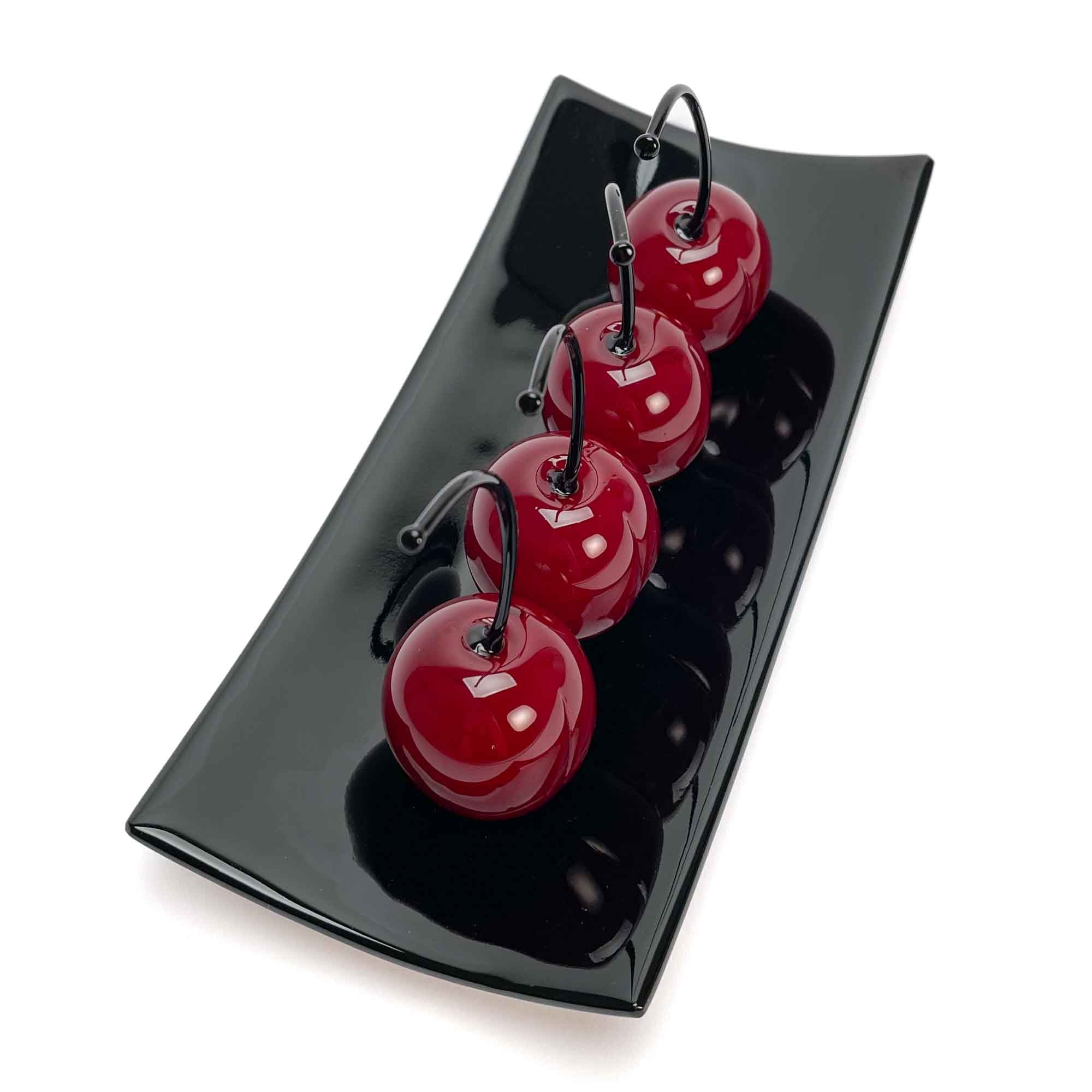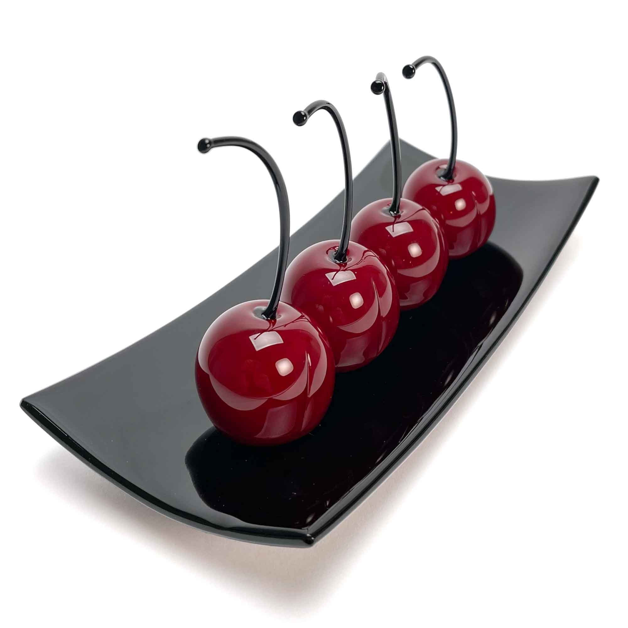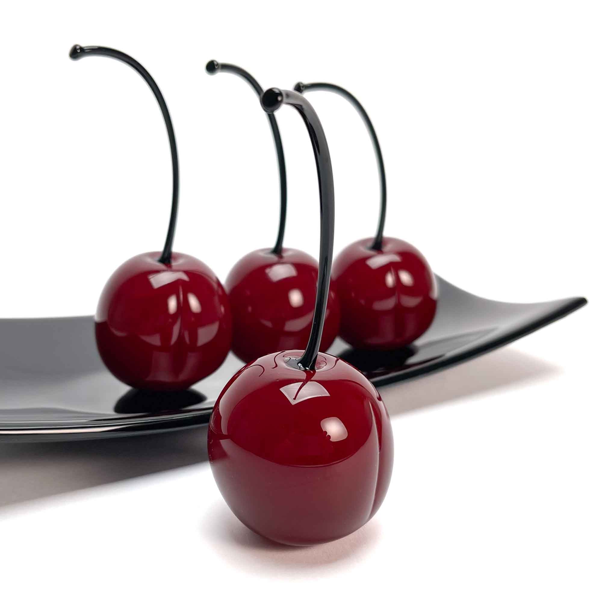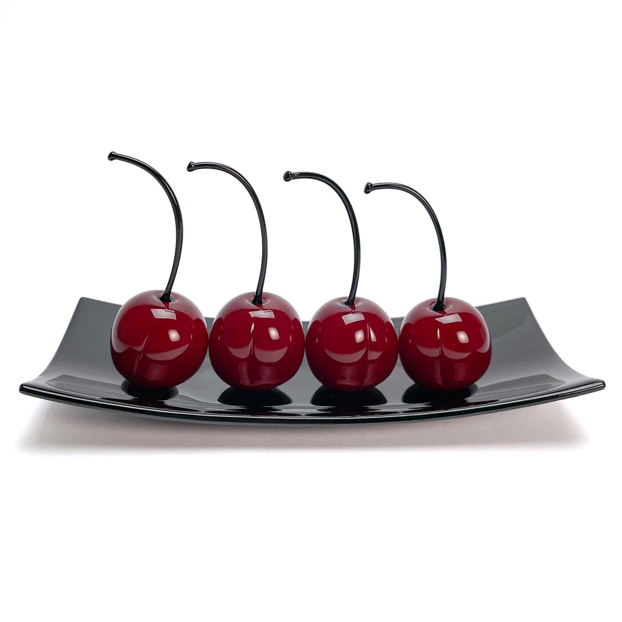 Set 4 Big Cherries with Black Plate "Love and Elegance" - Murano Glass