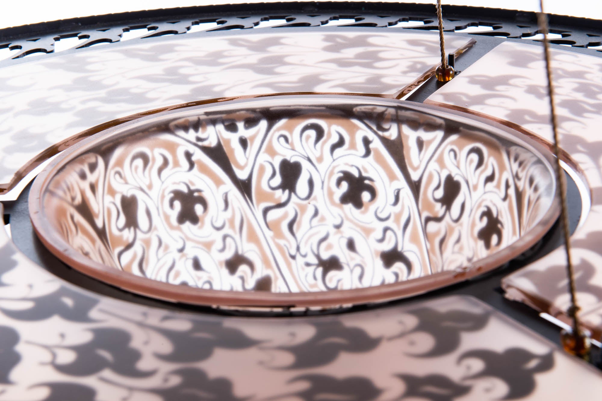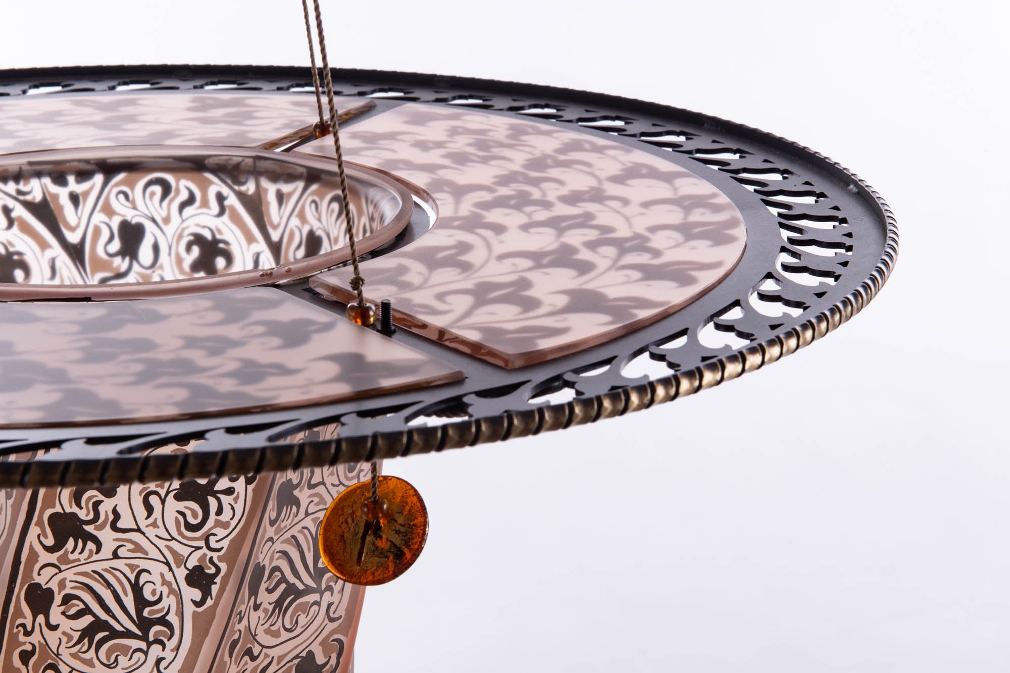 The decorations of the lamps have been obtained from the designs of the lamps exhibited at the MARIANO FORTUNY MADRAZO museum exhibited in the homonymous museum at Palazzo Orfei in Venice.