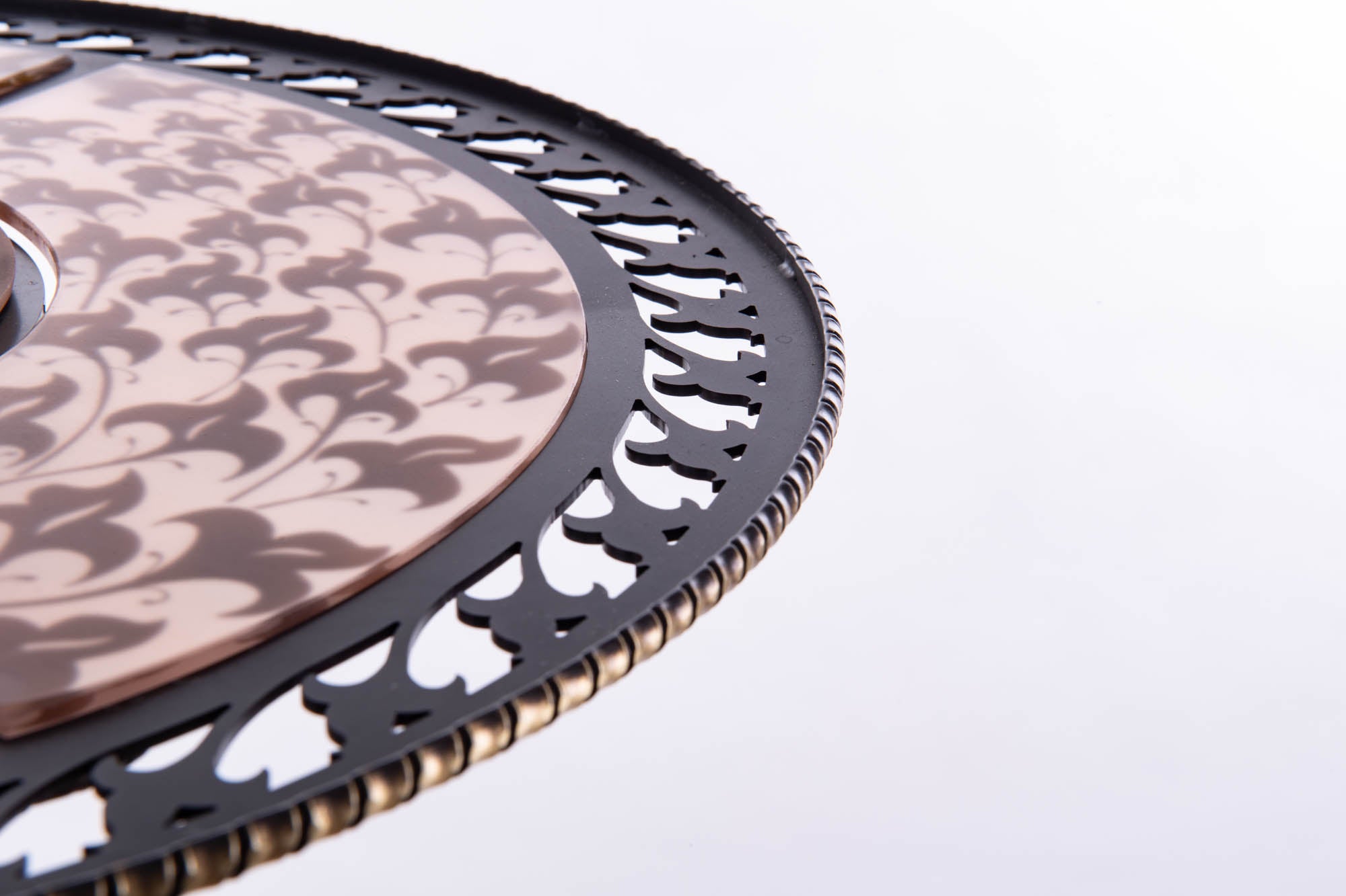 The platinum layer, even if very thin, does not let the light source shine through, thus creating the decorative effect by contrast.