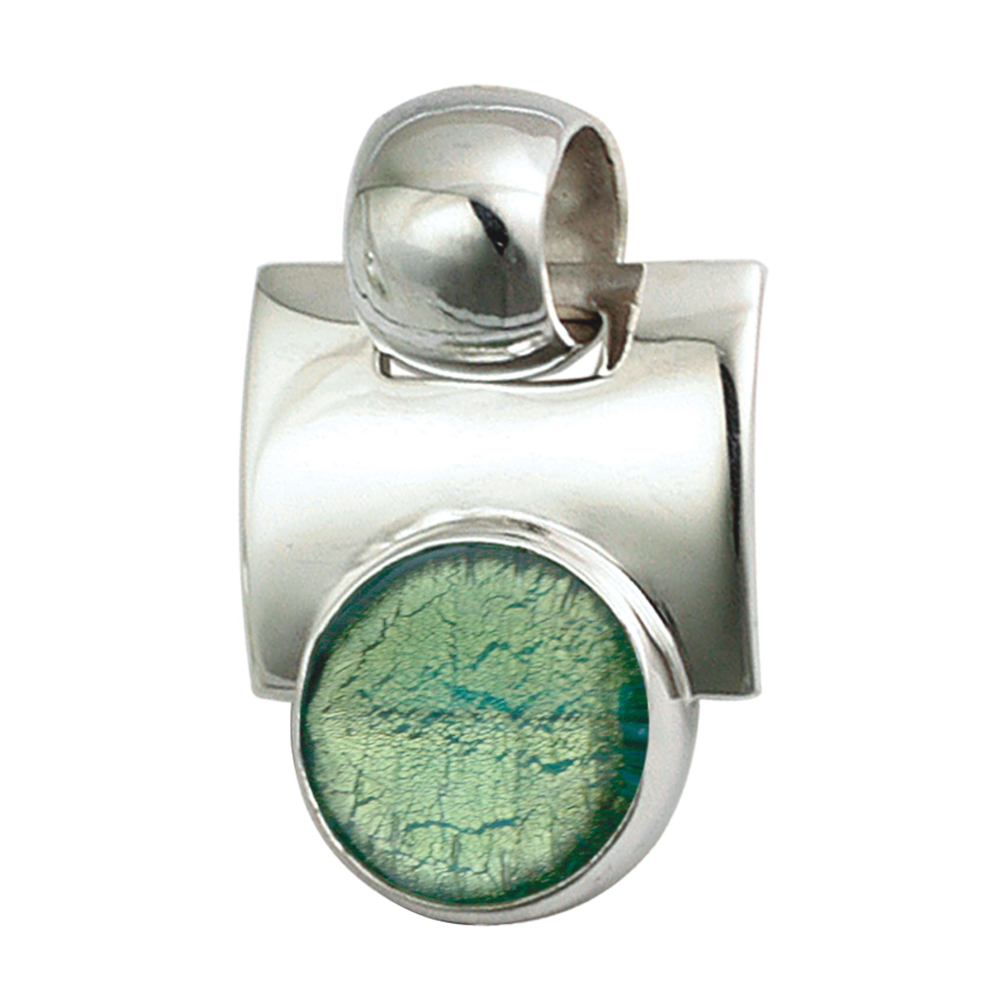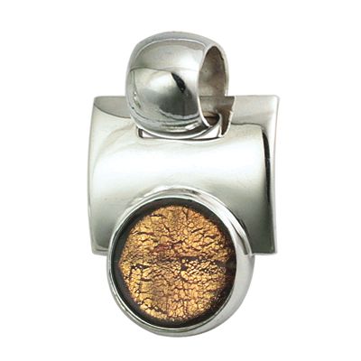 It consists of a layer of colored glass with the inclusion of a platinum leaf coated with a crystal layer.