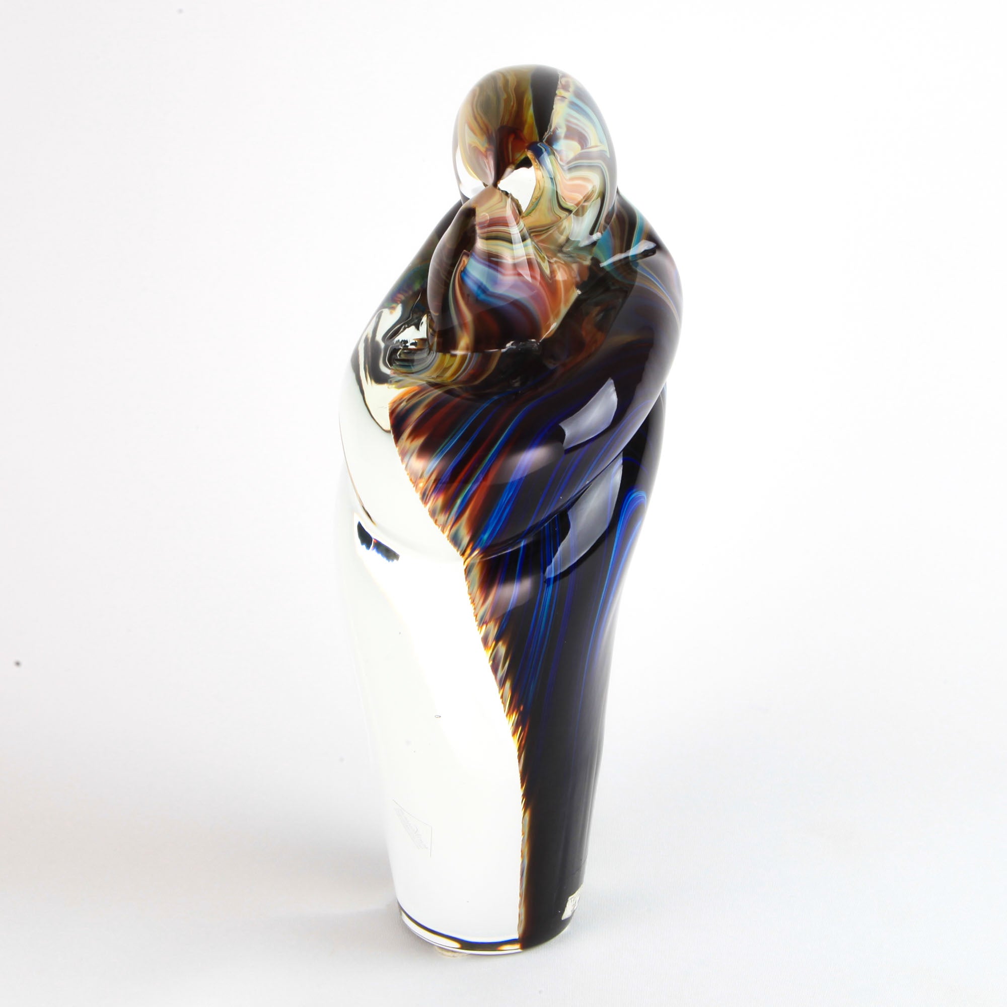 A Murano glass tribute to love: two stylized lovers unite in a warm embrace.