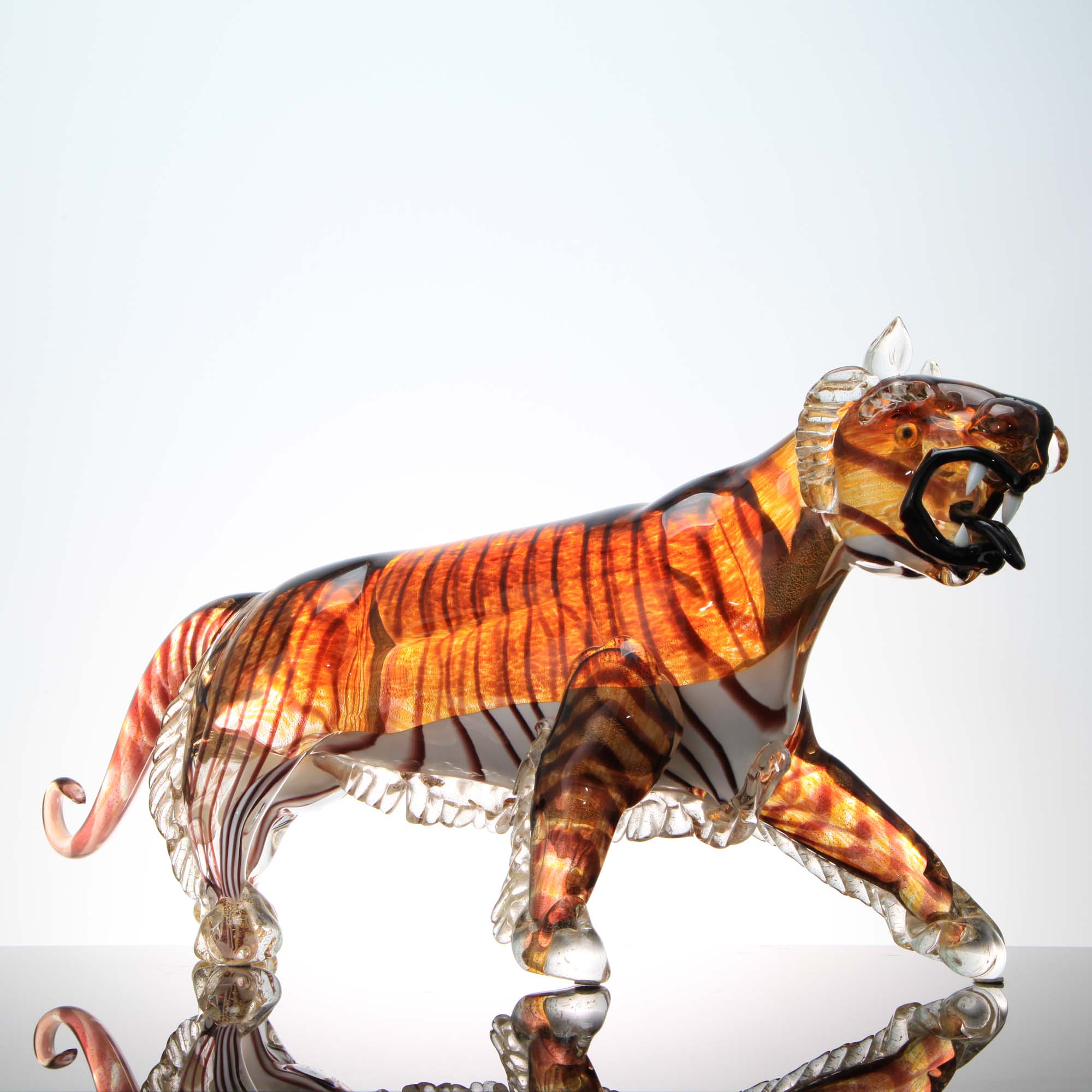 Luigi Moro designed this tiger inspired to the Ercole Barovier production, made by Alessandro Barbaro which is one of the most skilful and important artists we had in Murano.