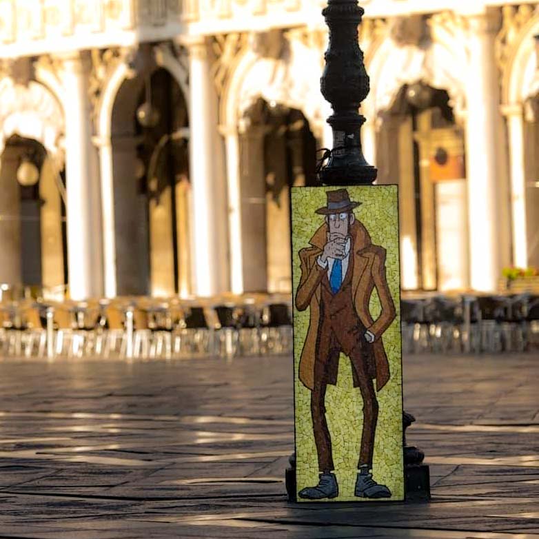All the Venetian mosaic of Lupin and his friends are fully licensed by Mediaset and Monkey Punch. We can realize any picture of Lupin, in any size in mosaic. Each piece has the copyright trademark on its back and being completely handmade is different from any other mosaic.