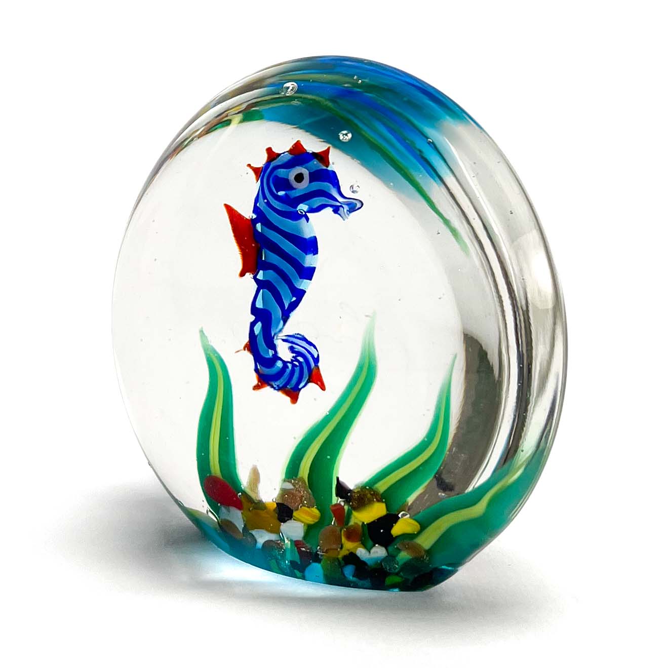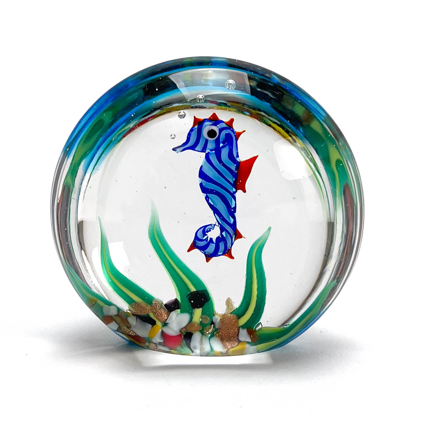 Expertly handcrafted on the island of Murano, this piece showcases a gorgeous seahorse, designed and crafted bright colors and precise details. This item is made using the lampwork glass technique. Also perfect as a gift for collectors, this miniature adds a unique touch to any setting.
