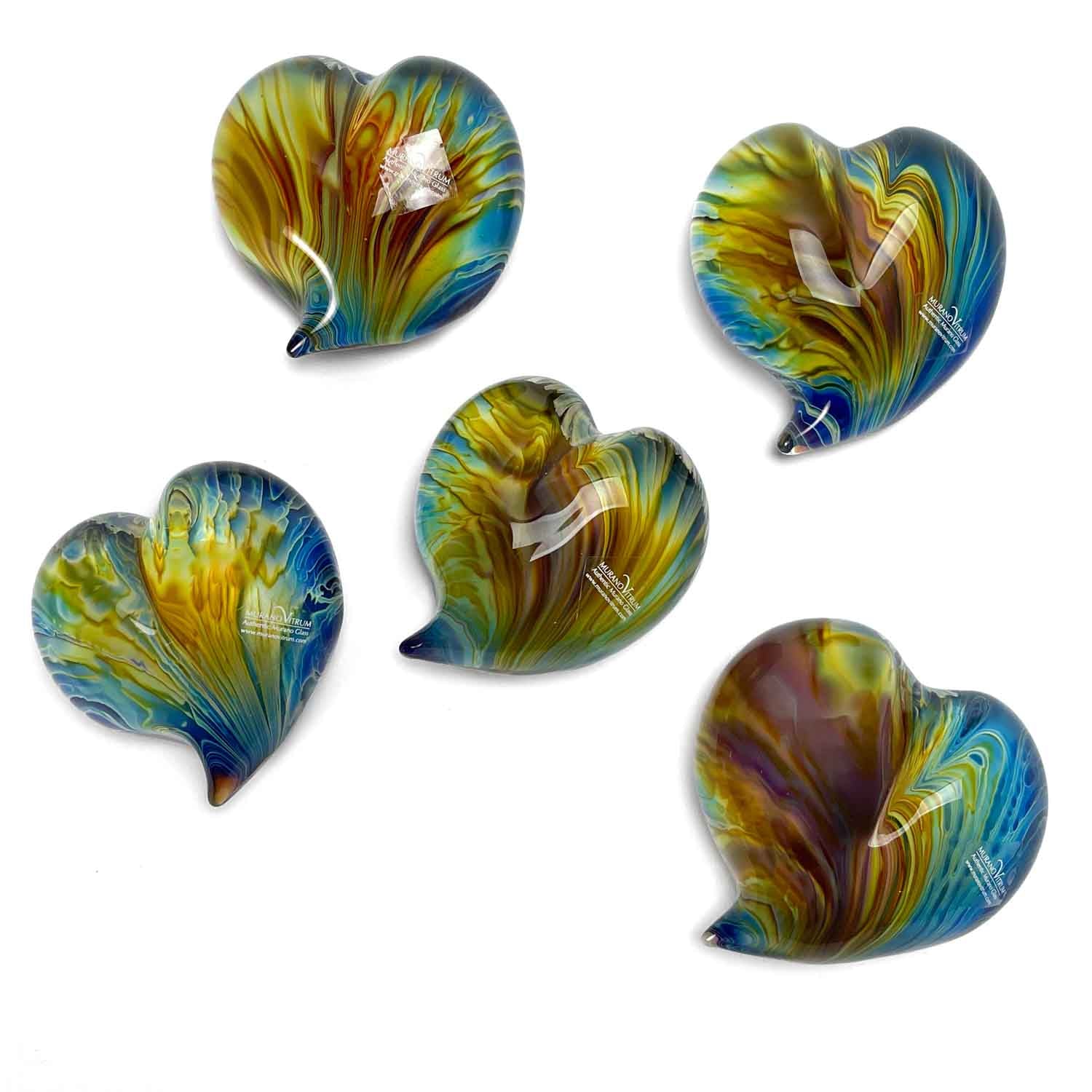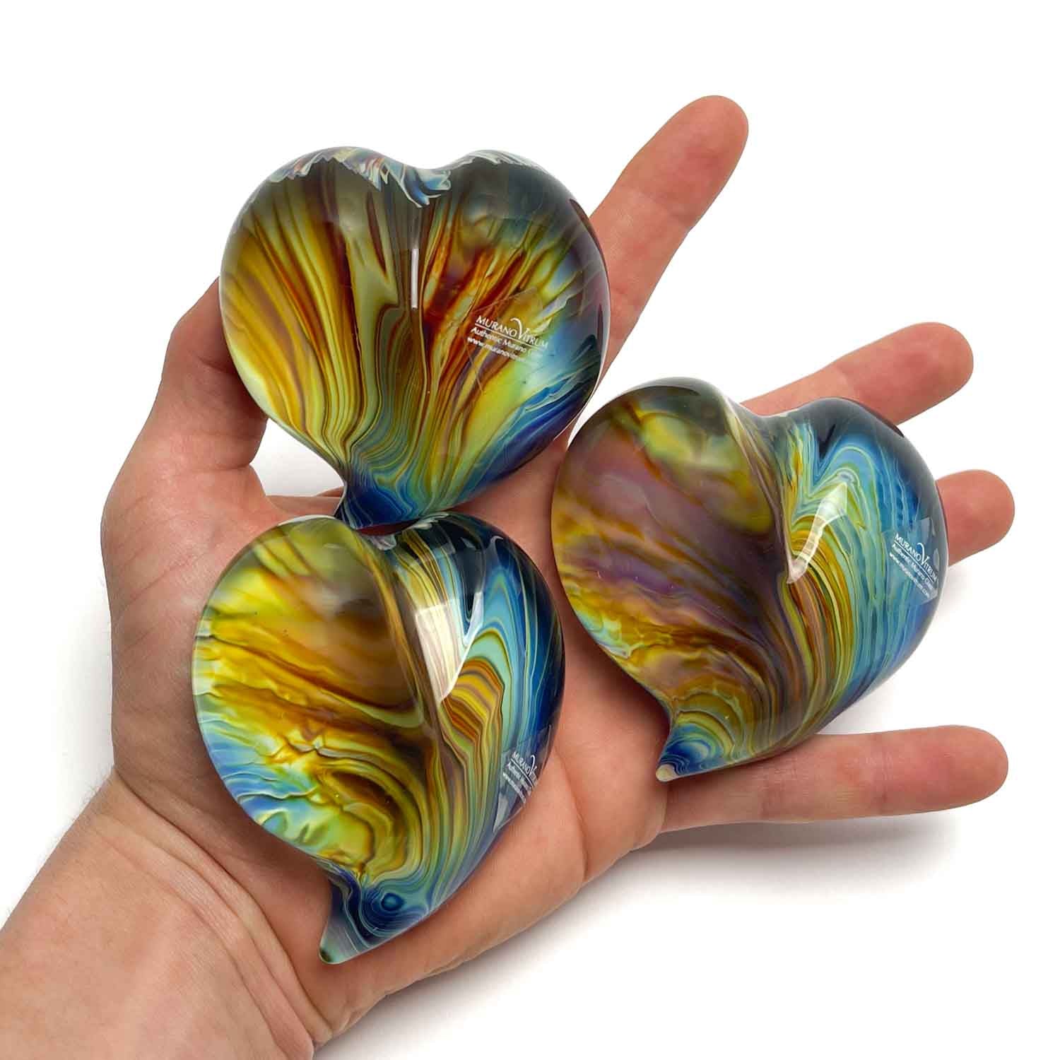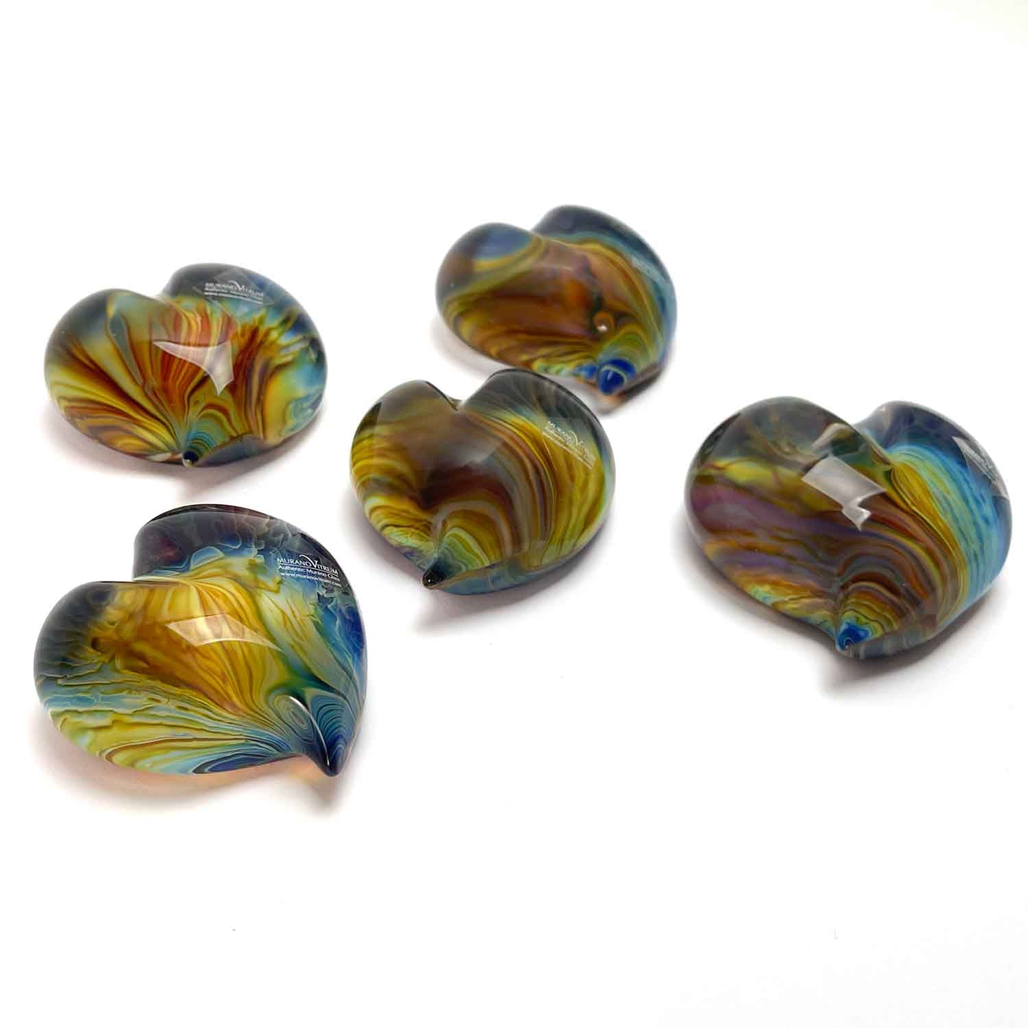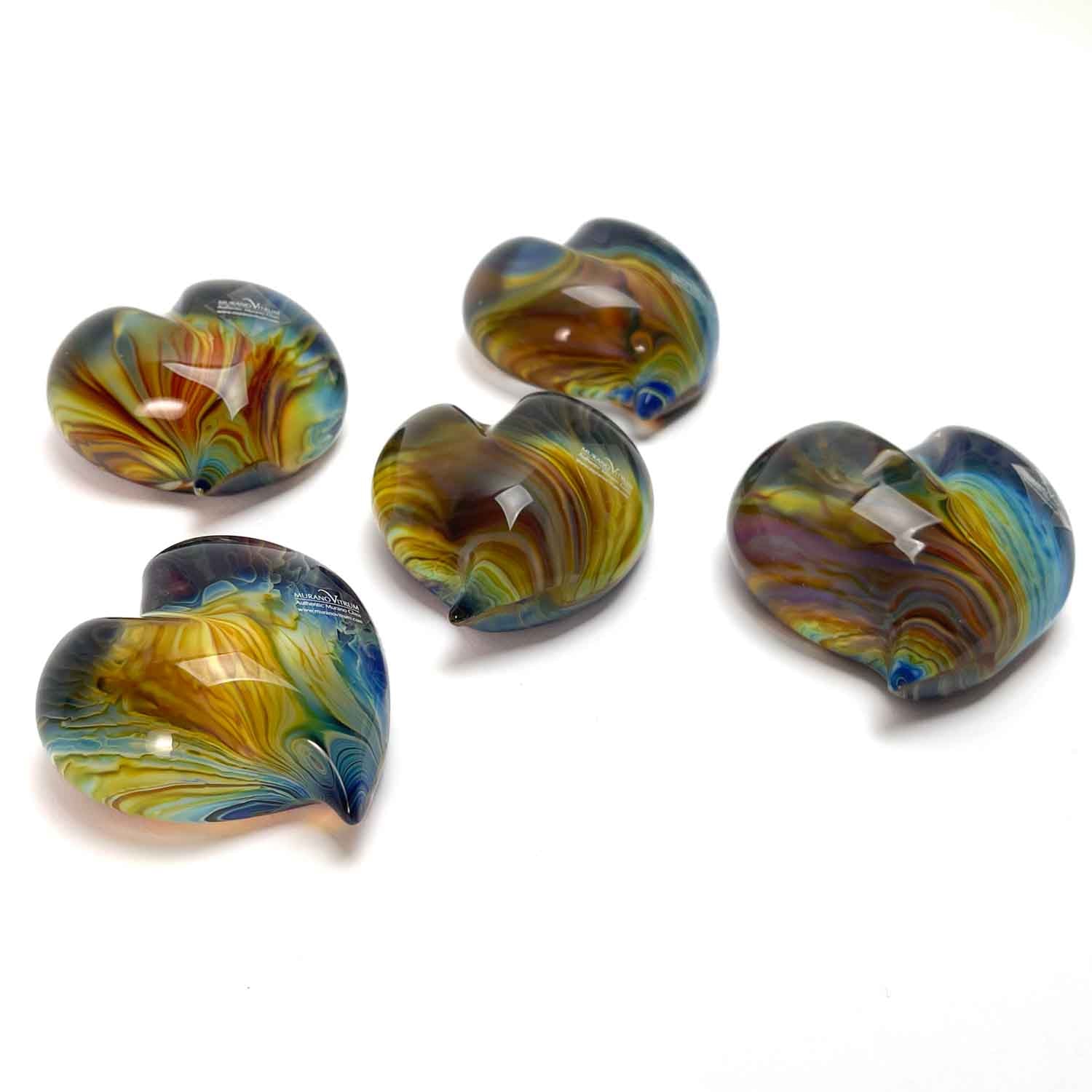 ガラスのペーパーウエイト ハート型 ムラーノ・カルセドニオ