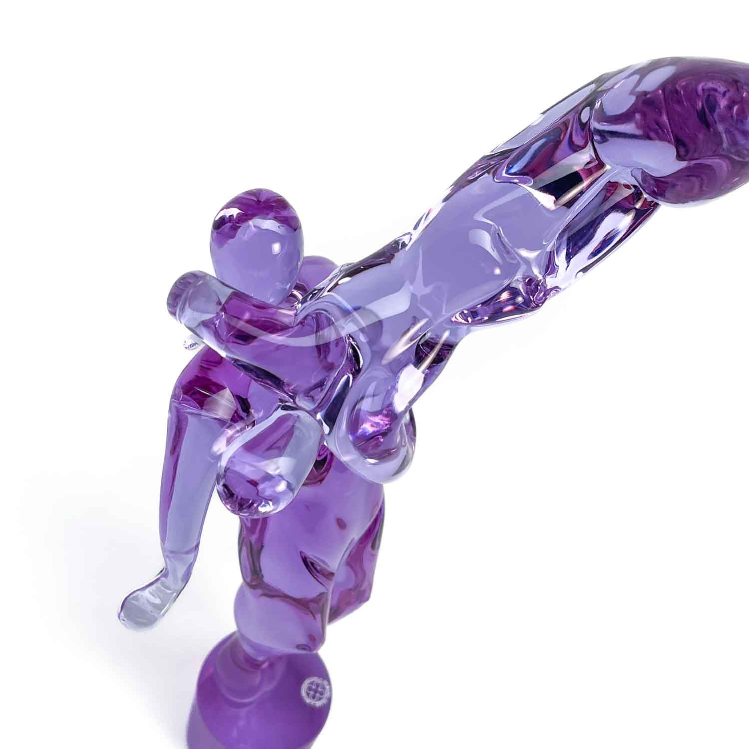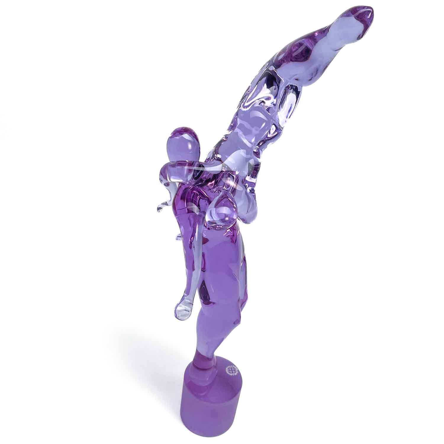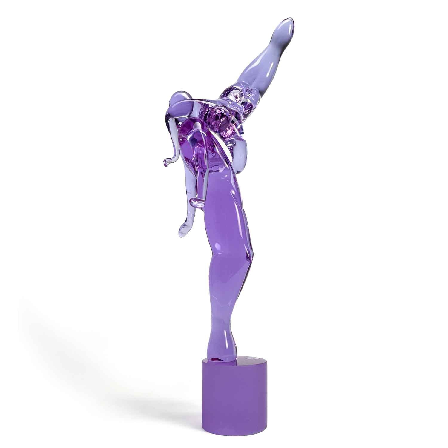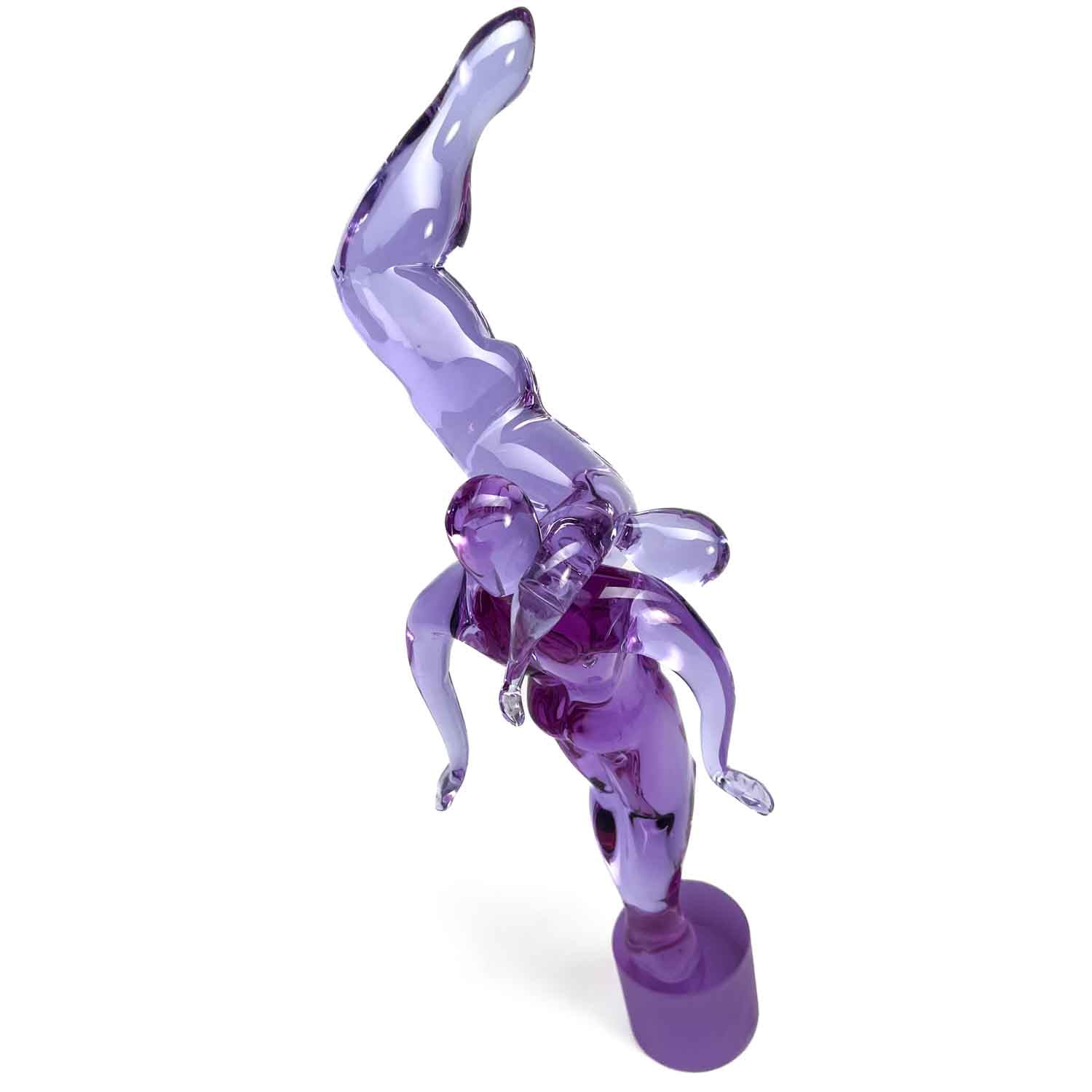 Tagliapietra is one of the most highly regarded masters in Murano. These alexandrite glass acrobats are the last two pieces in our collection and date from the 1990s. Tagliapietra's sculptures are highly sought after by collectors, especially those with unusual colors such as this one, which today is no longer in production even by request.