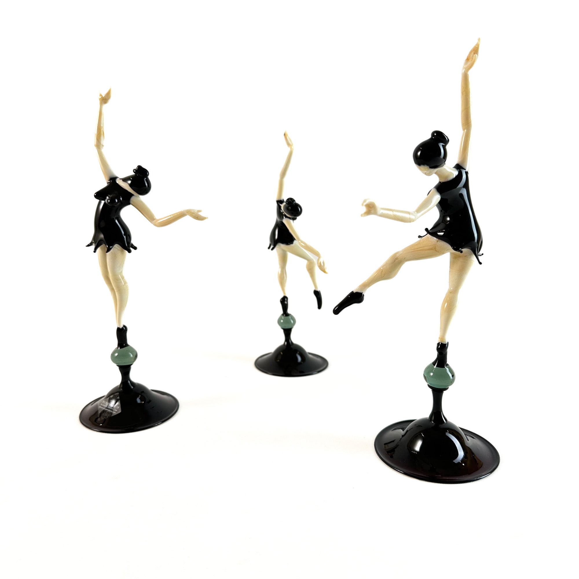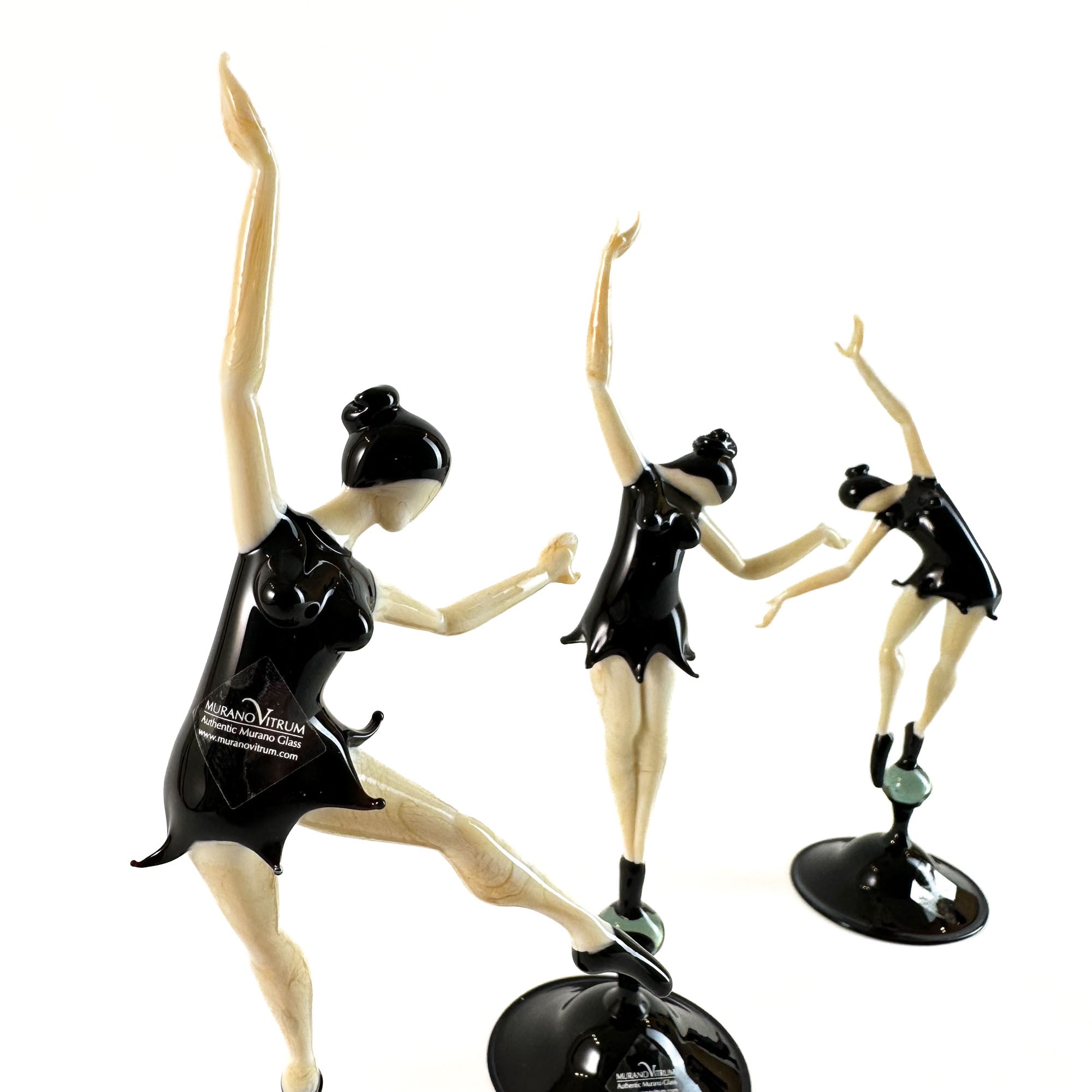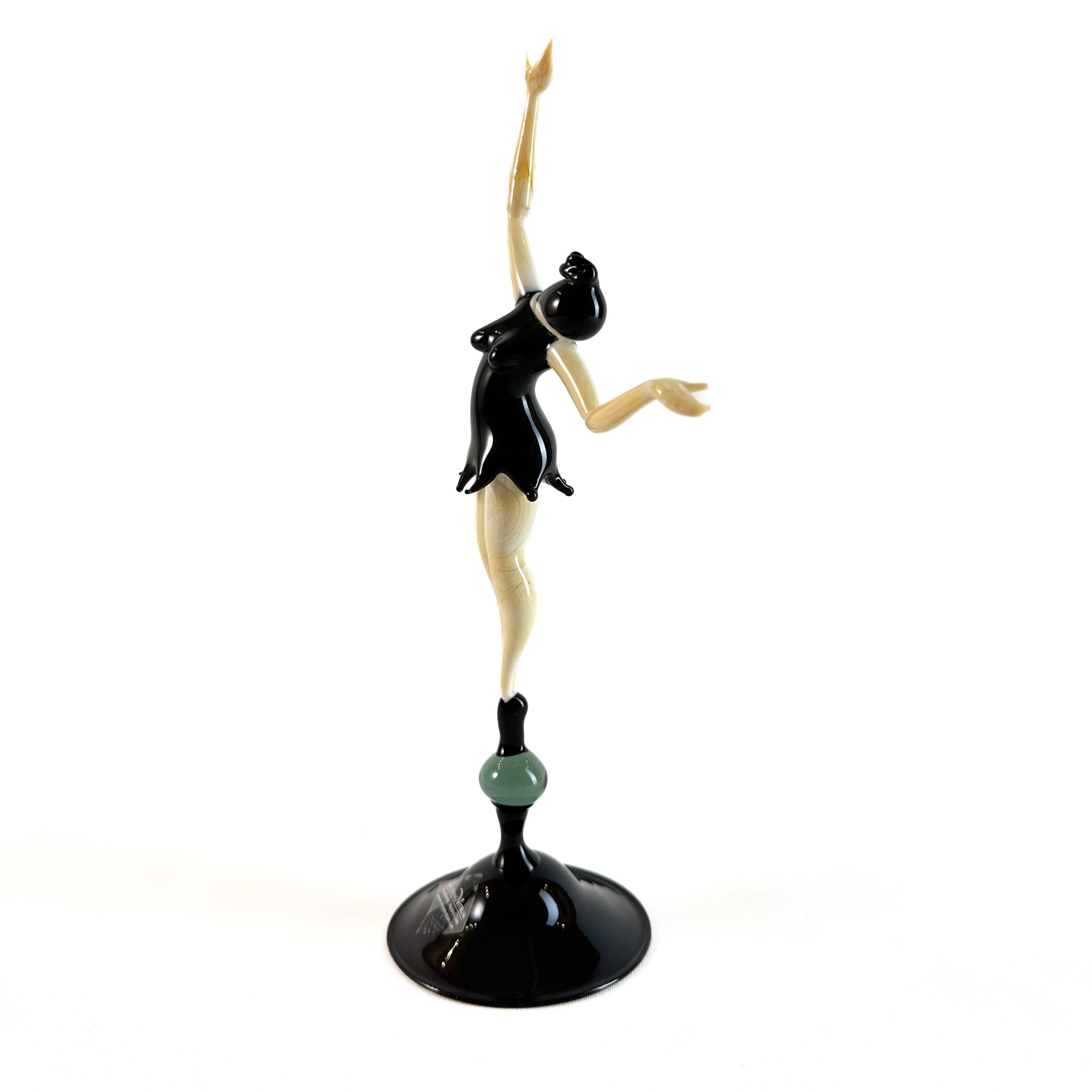 This Murano glass miniature depicts a graceful ballet dancer in sophisticated detail, made using the lamp work technique. The design showcases the skill of the glassblower, using delicate coils of glass to create the flowing tutu and flowing movements of the dancer. Each curve and flourish has been expertly crafted to create an elegant and timeless work of art, a true testament to the glassblowing traditions of Murano Island.
