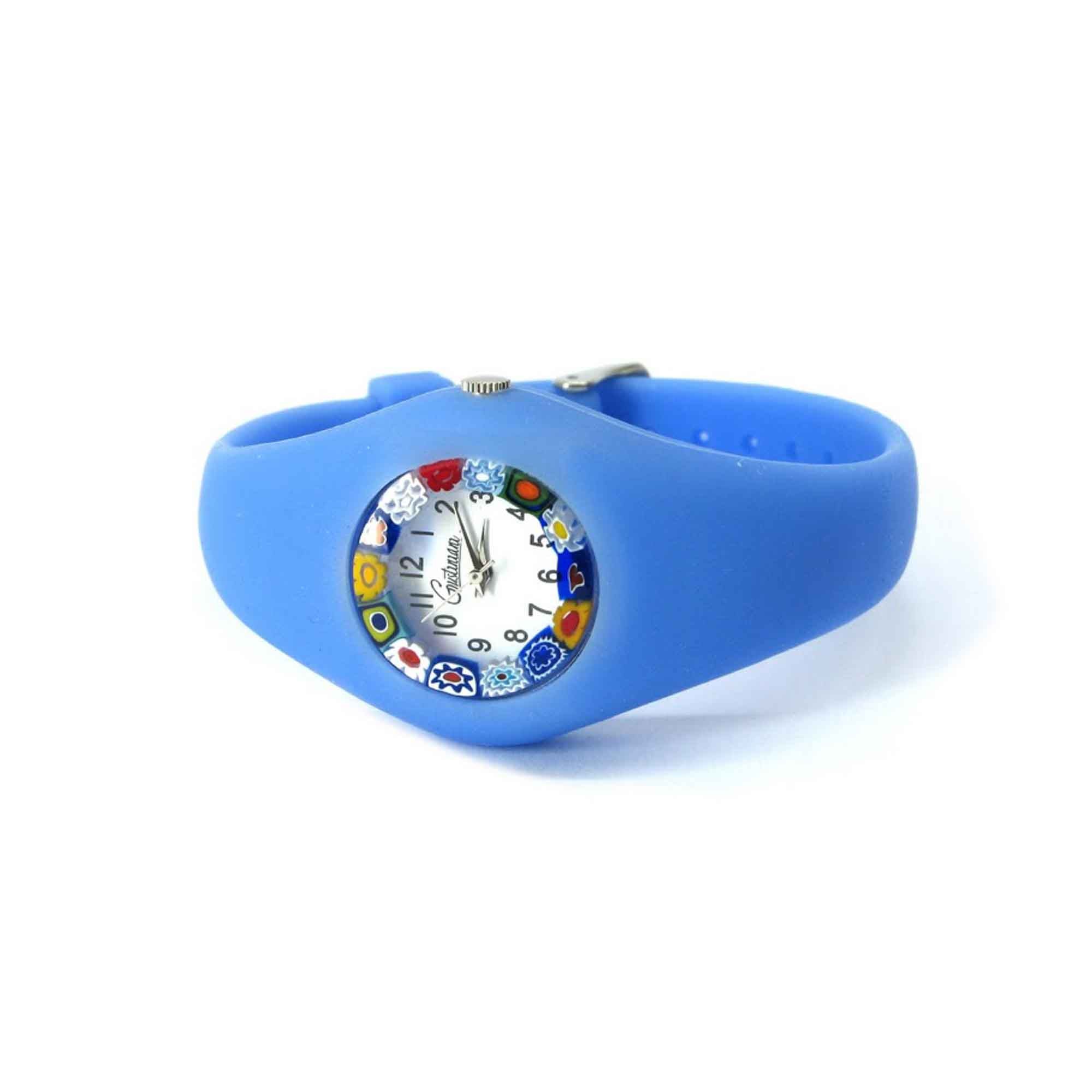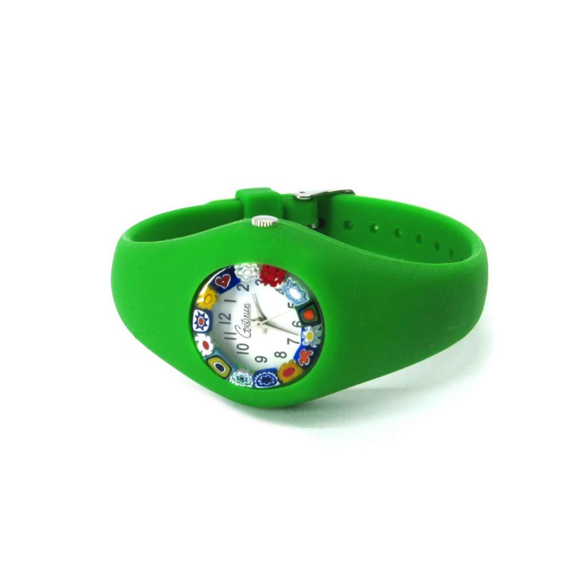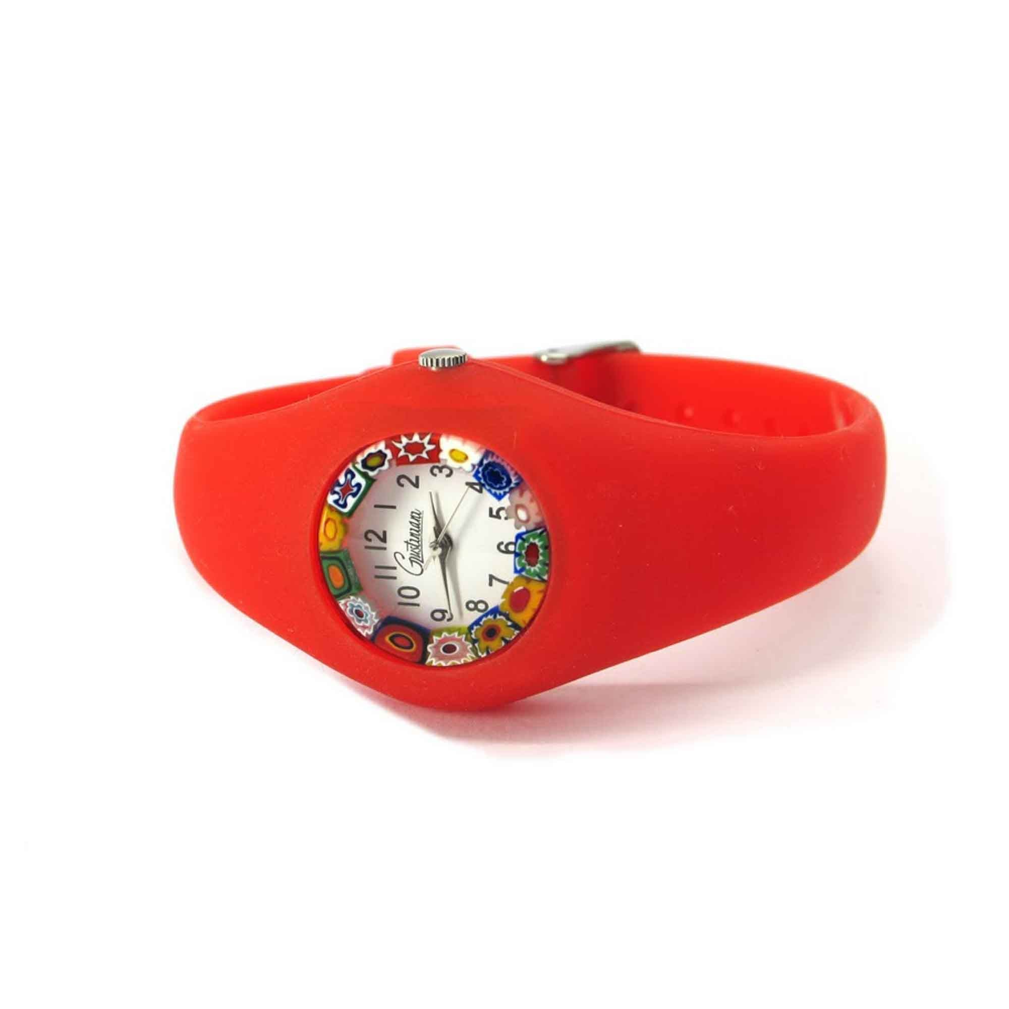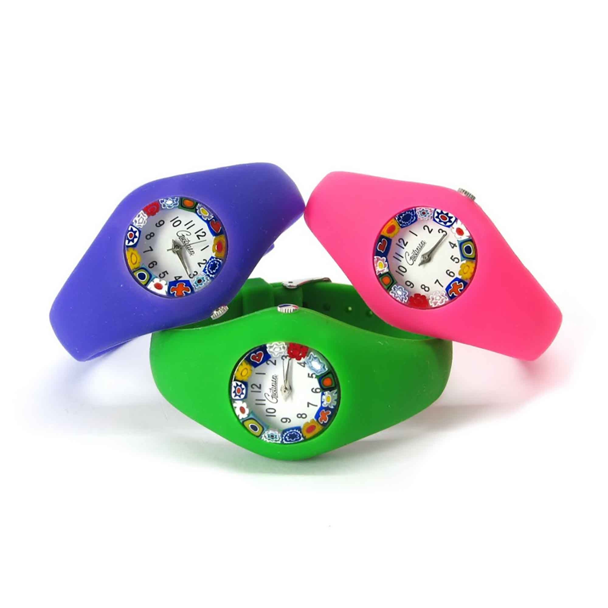 Funny watch with Murrina inclusions, Quartz movement Miyota (by Citizen) or Seiko,case and wristband in soft silicone.