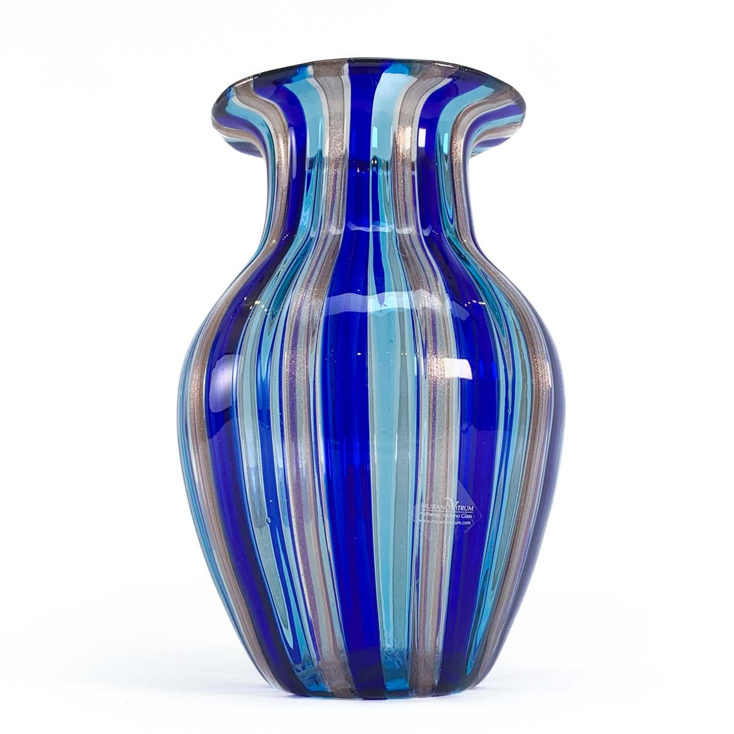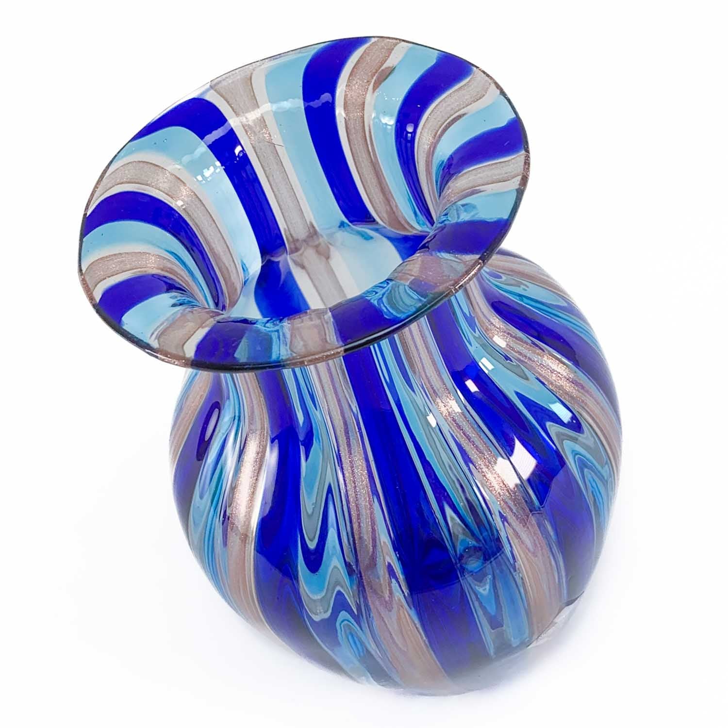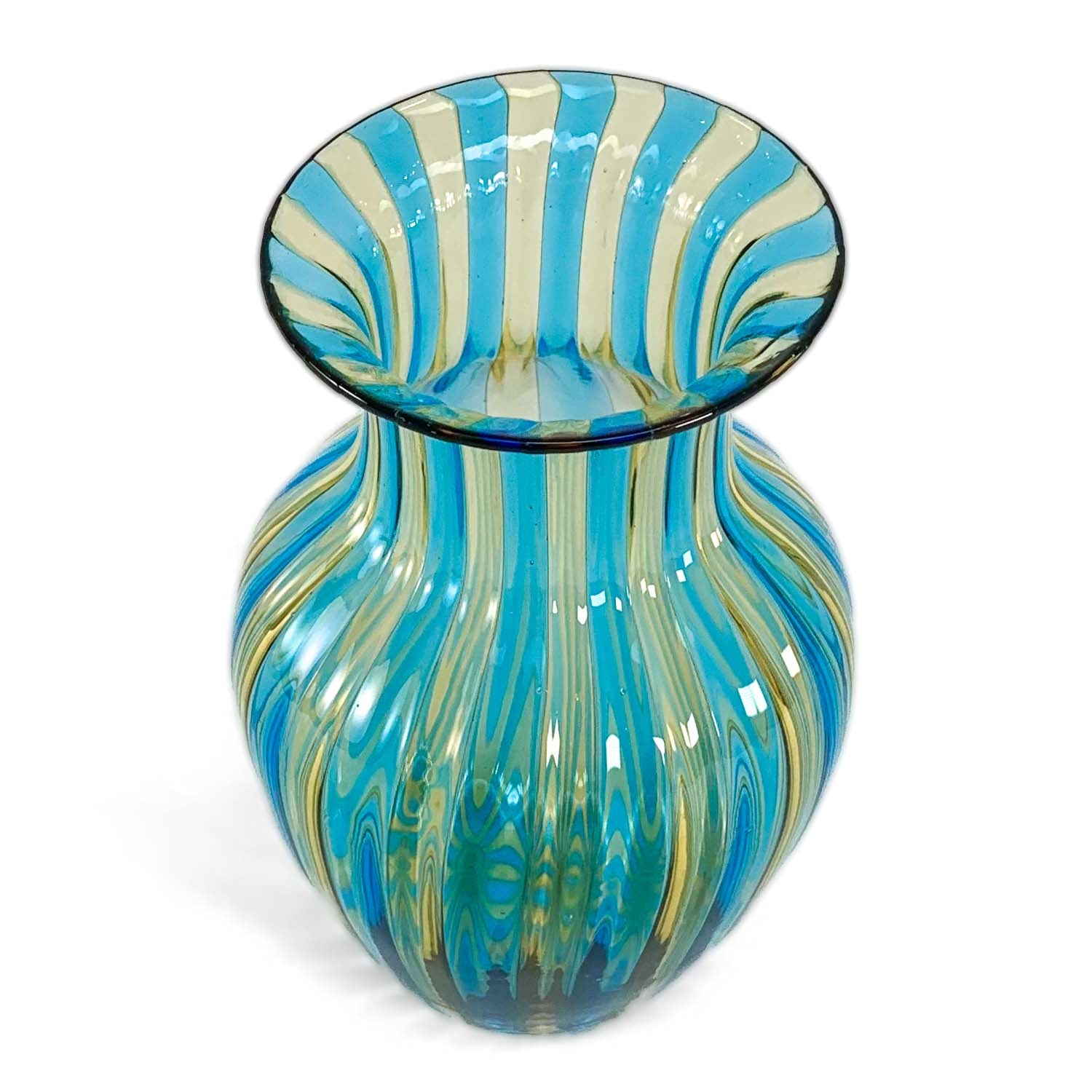 Hand-blown Murano glass vase , shades of blue and rainbow.