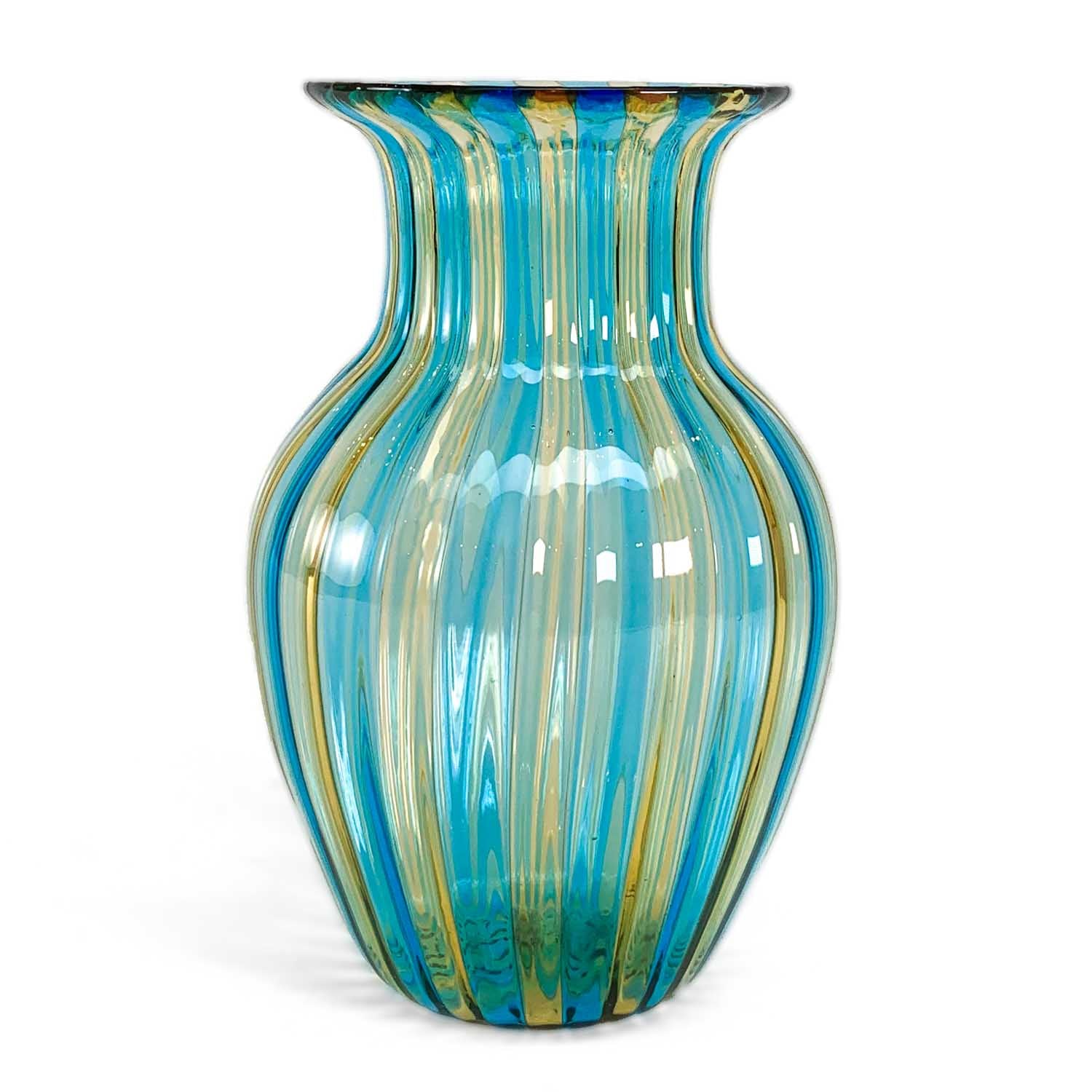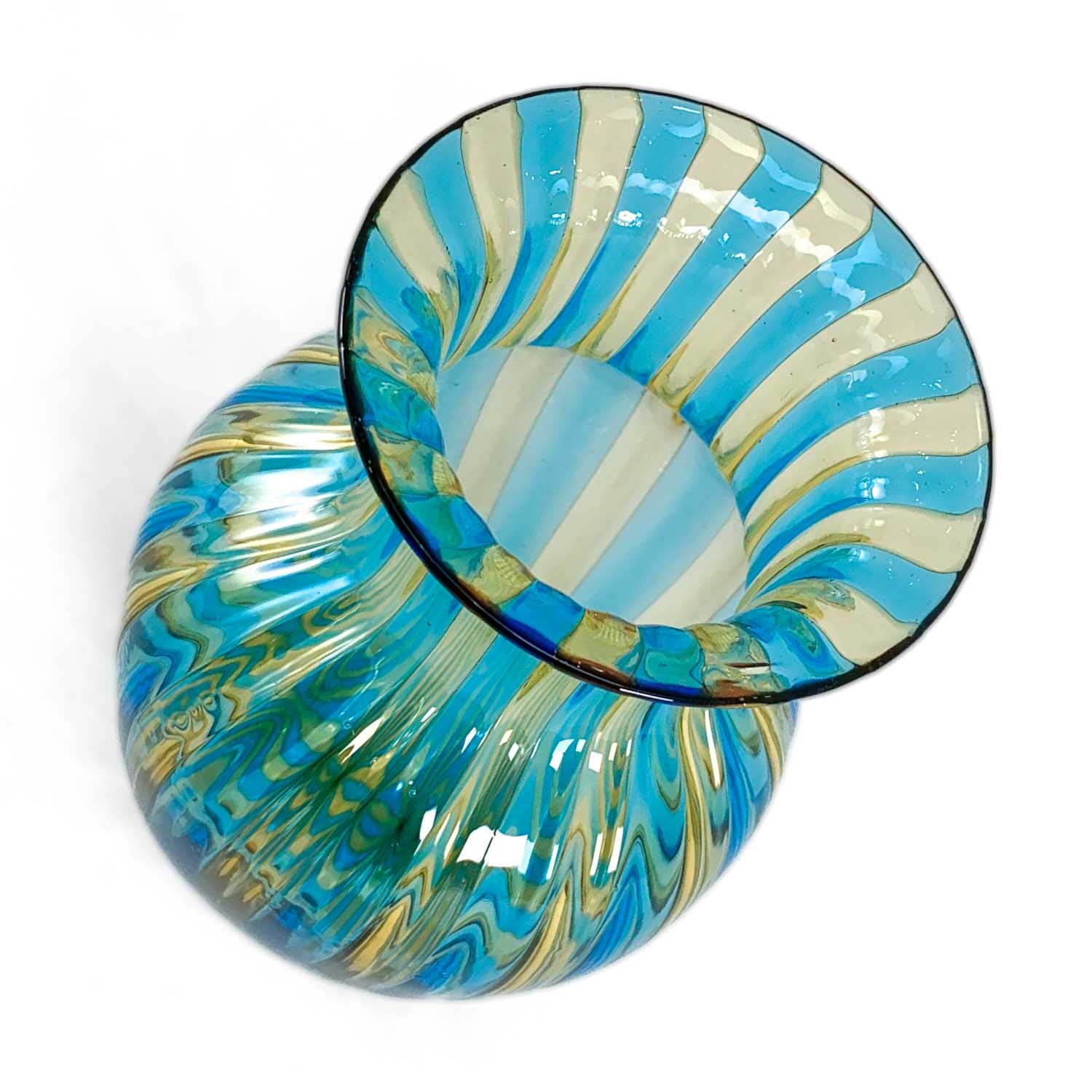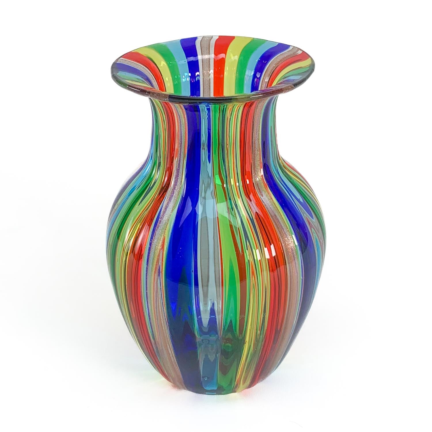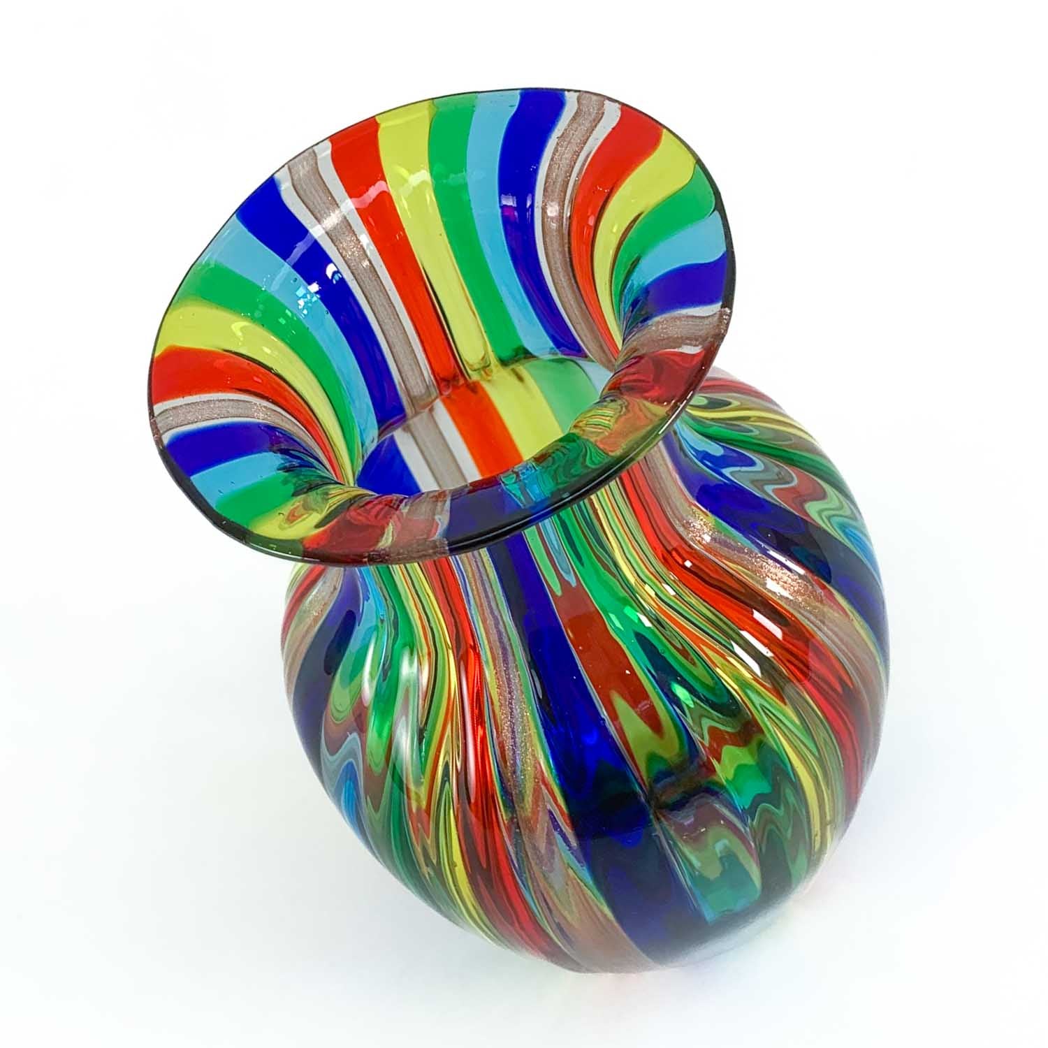Hand-blown Murano glass vase , shades of blue and rainbow.