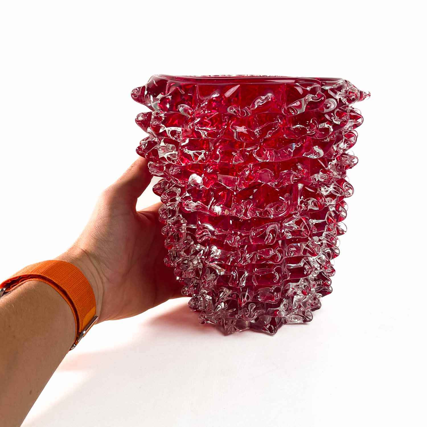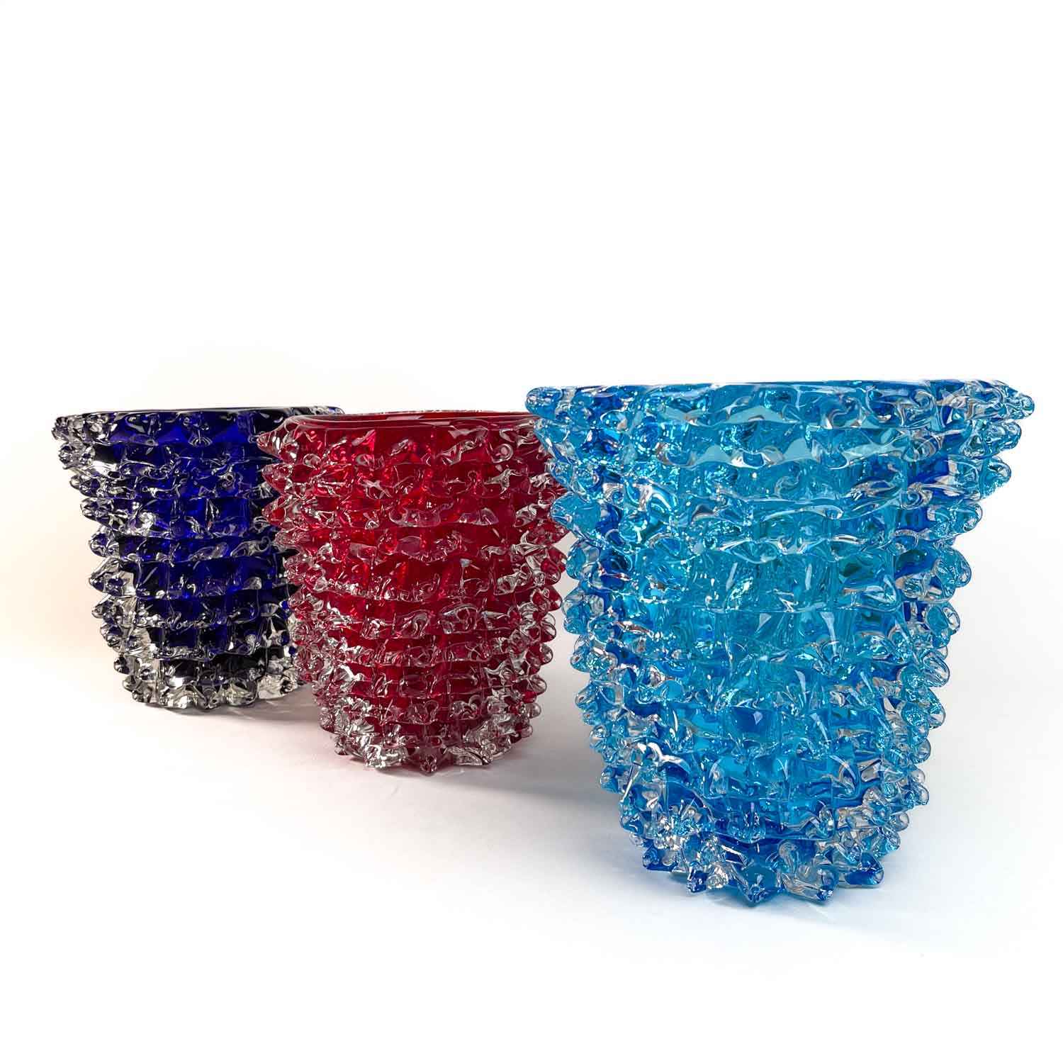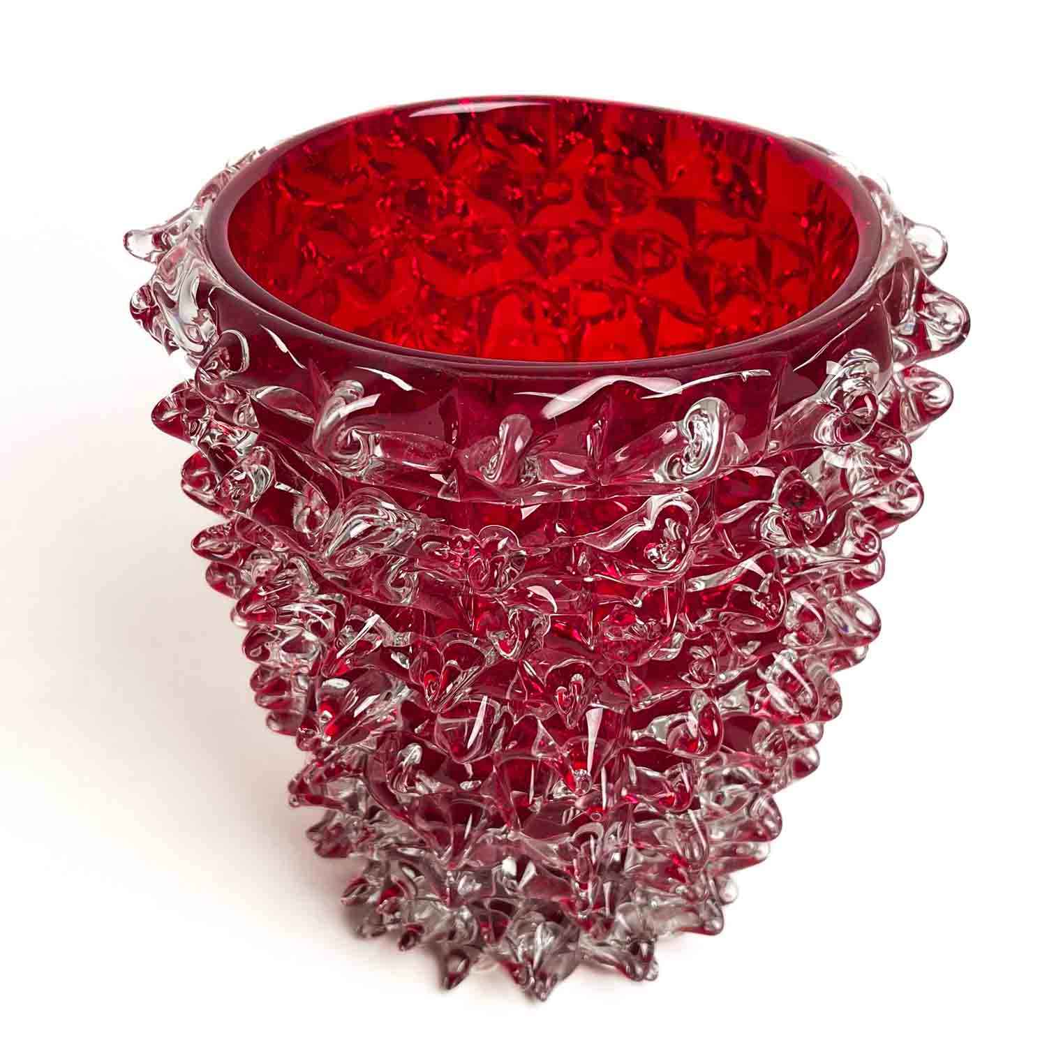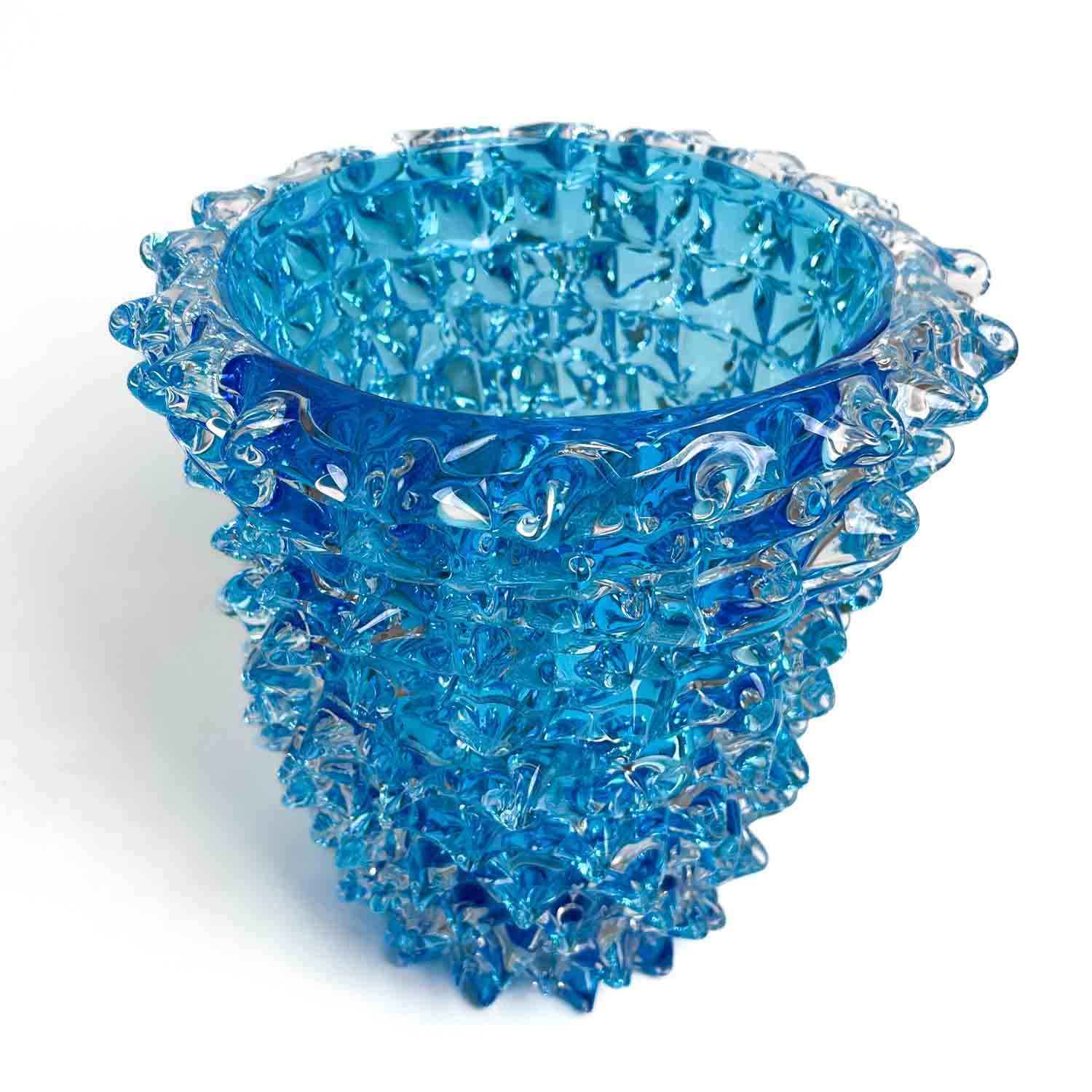 The Murano rostrato vase is a work of artistic blown glass that requires great skill and craftsmanship. During the production process, the master glassblower works with molten glass at extremely high temperatures. Subsequently, using special tools such as tongs or shears, the glass is shaped into small points or protrusions along the vase's surface, creating an effect resembling beaks or rostra.All our works are signed and are shipped with certificate of authenticity