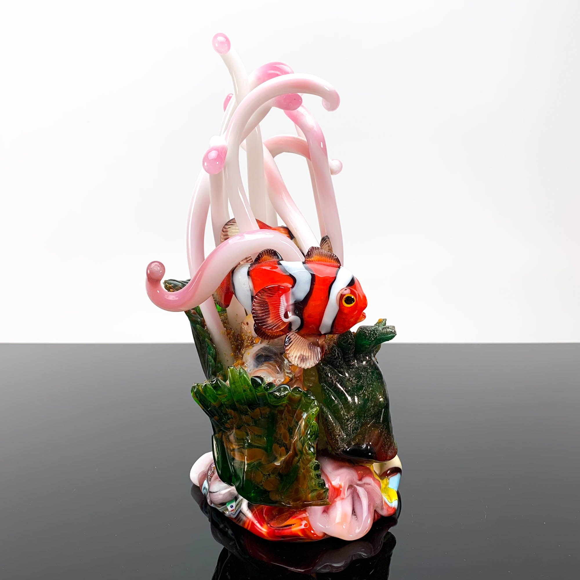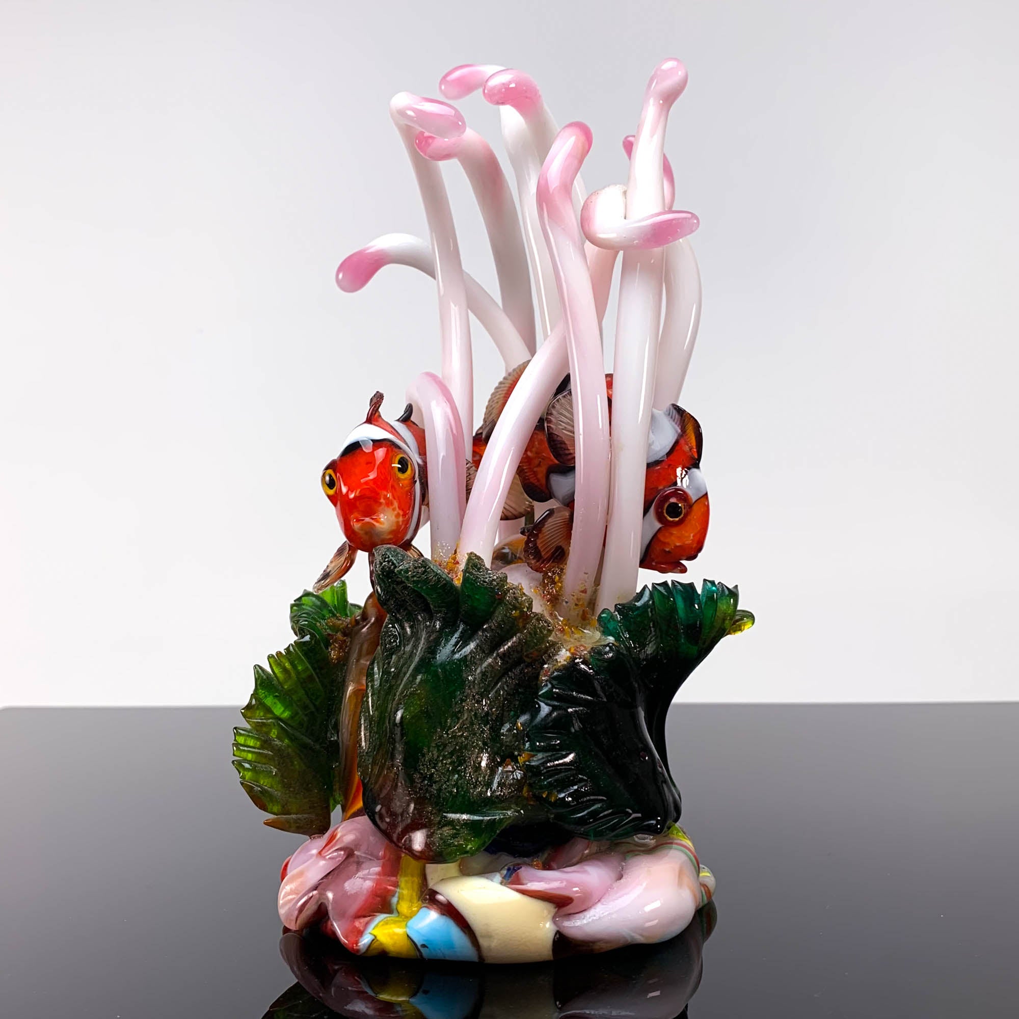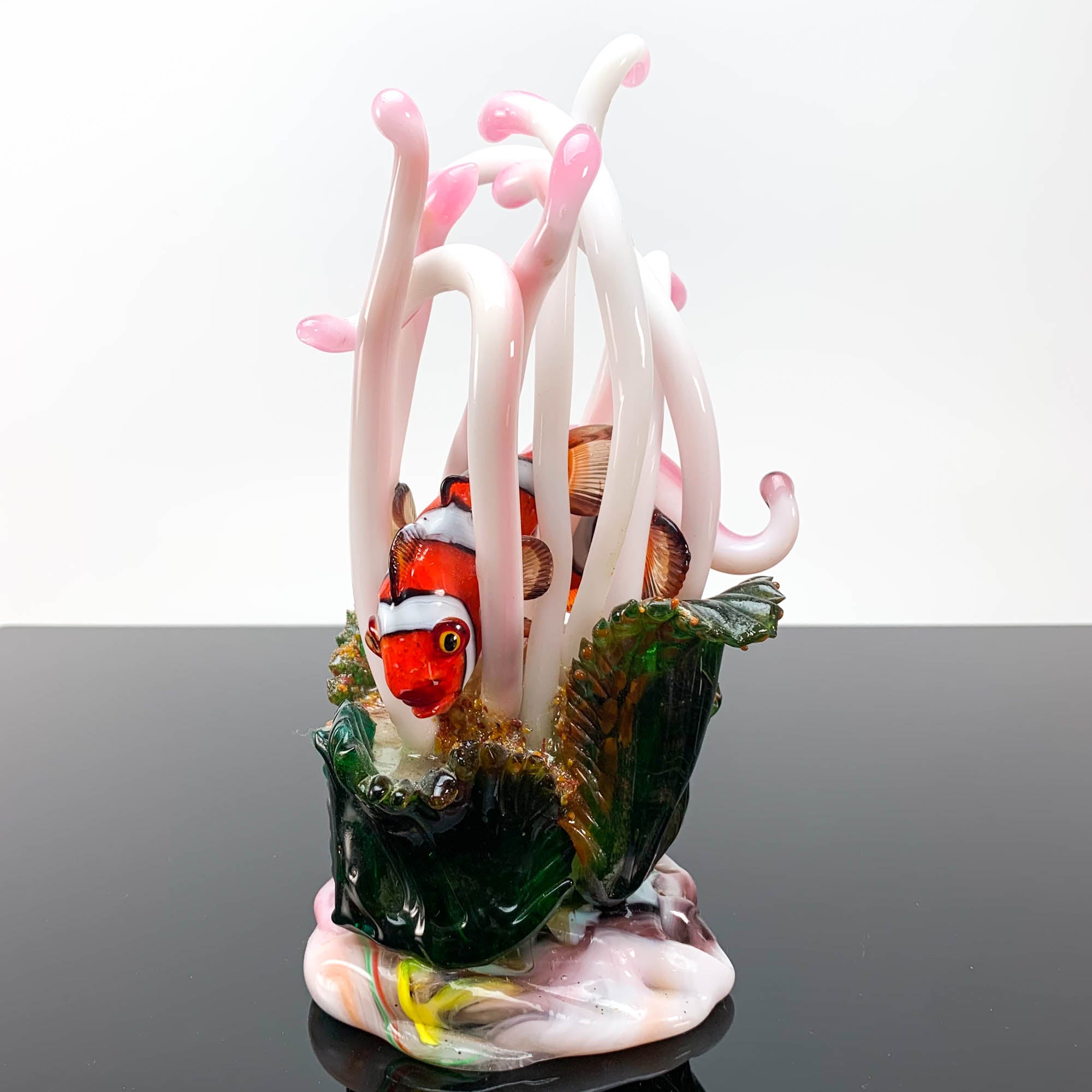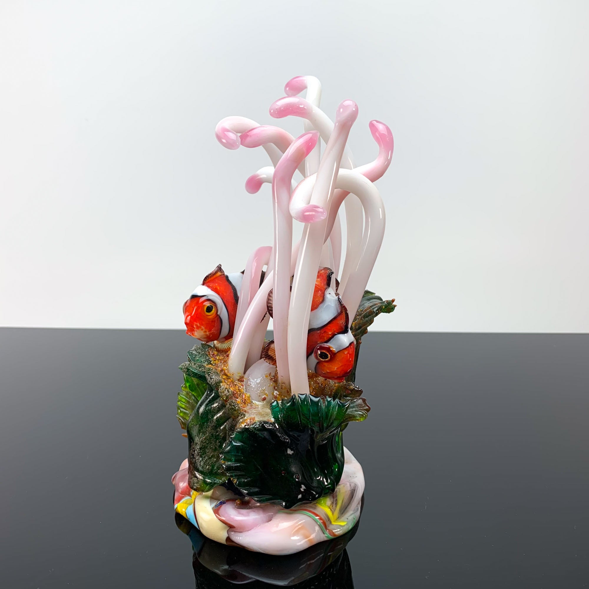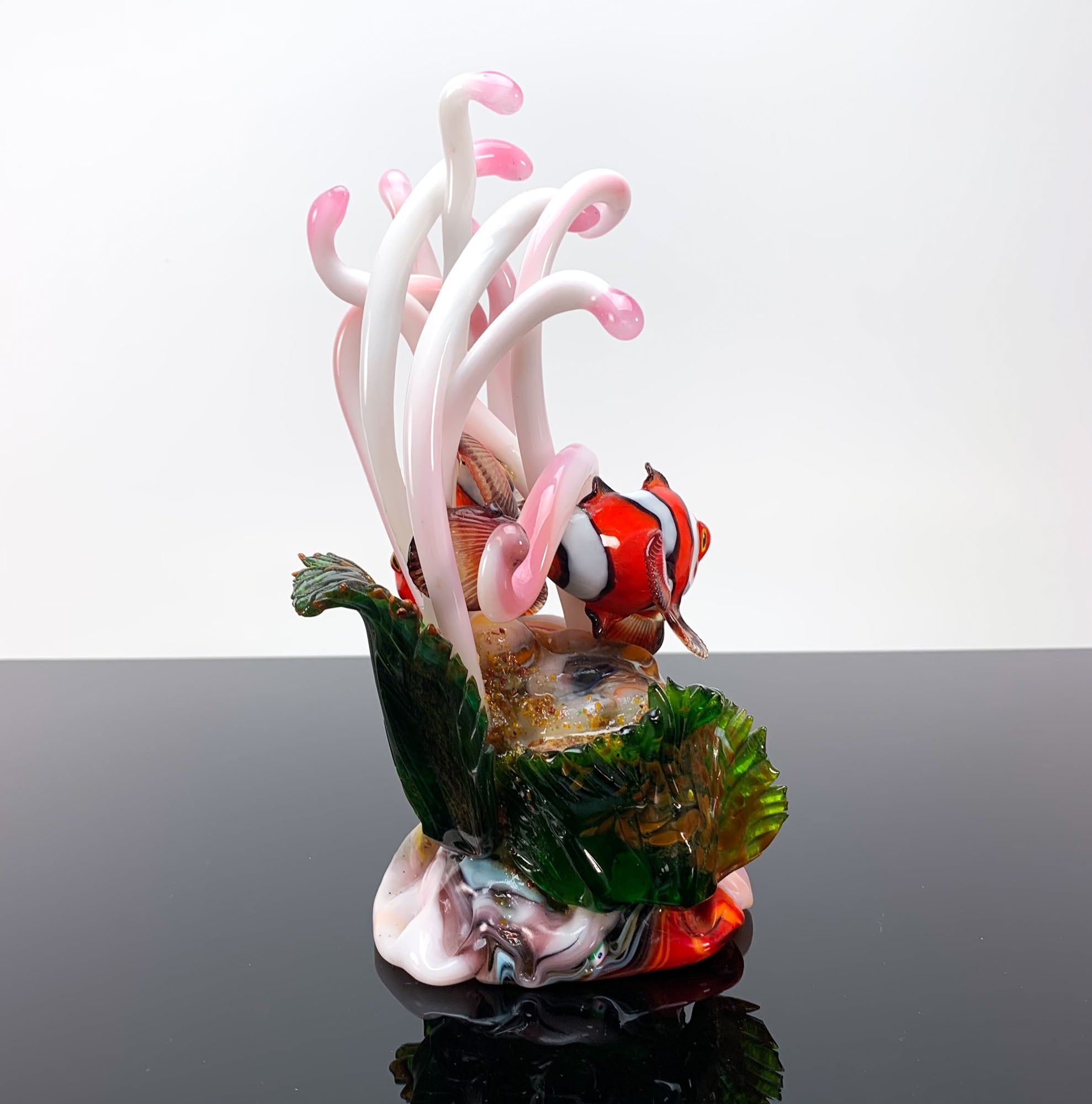 The technique is a lume that is a type of glasswork that uses a gas fueled torch to melt rods and tubes of clear and colored glass.
